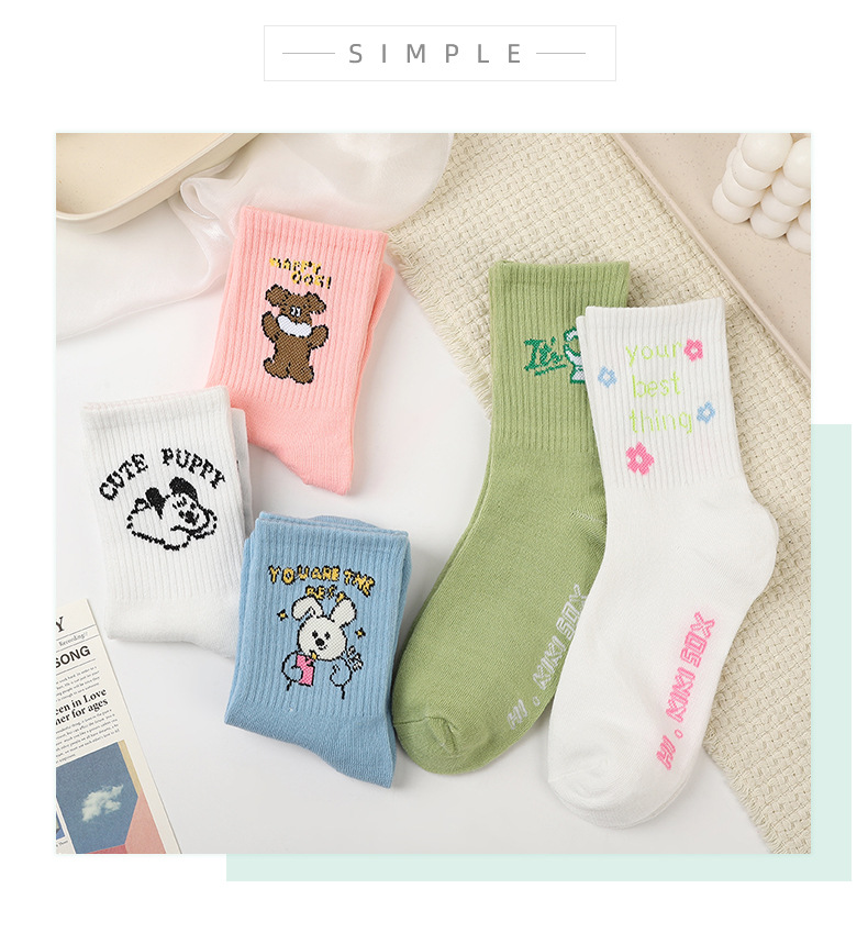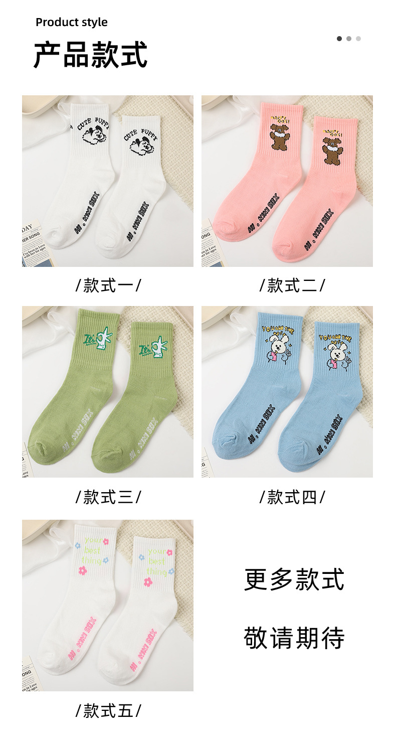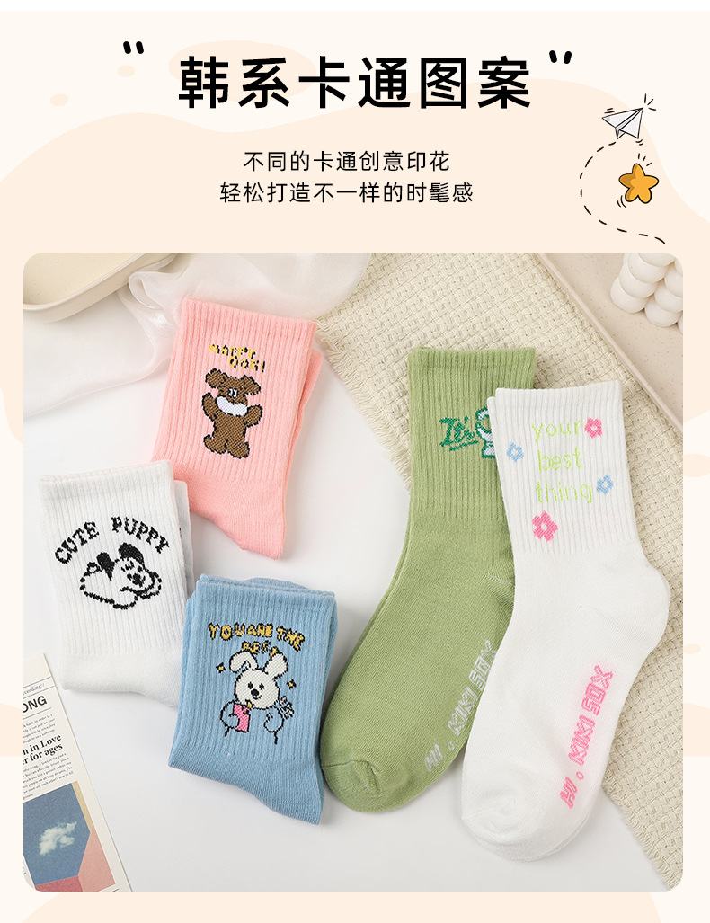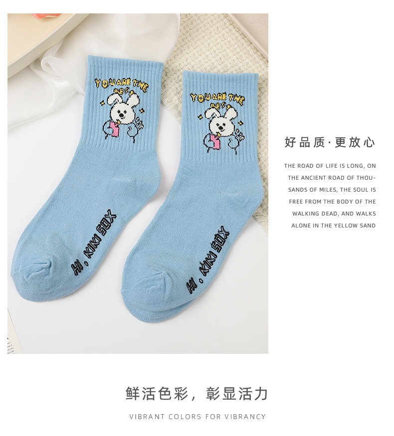 캔디 컬러 양말 여성의 가을과 겨울 새로운 일본 인터넷 인기있는 Ins 트렌디 한 귀여운 만화 올 매치 대학 스타일 스포츠 양말
