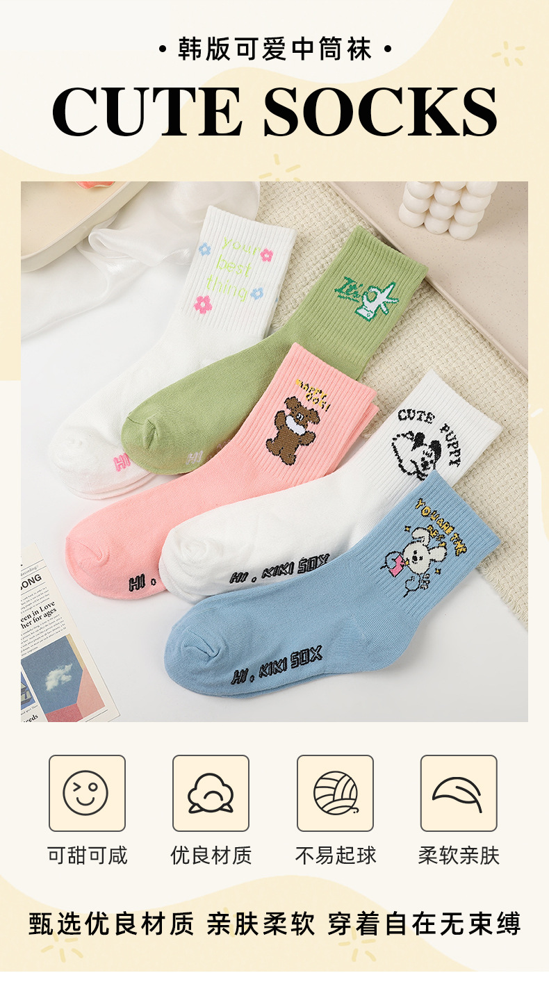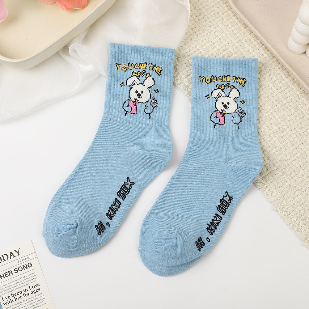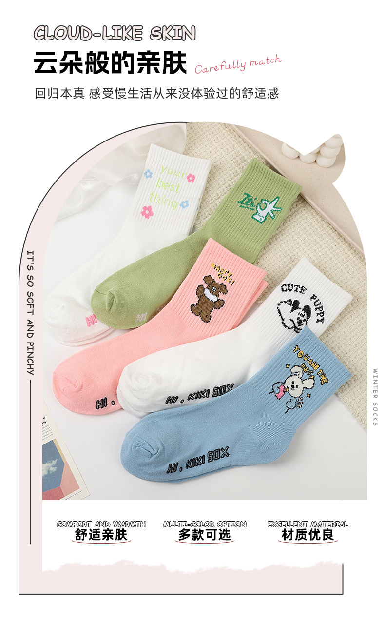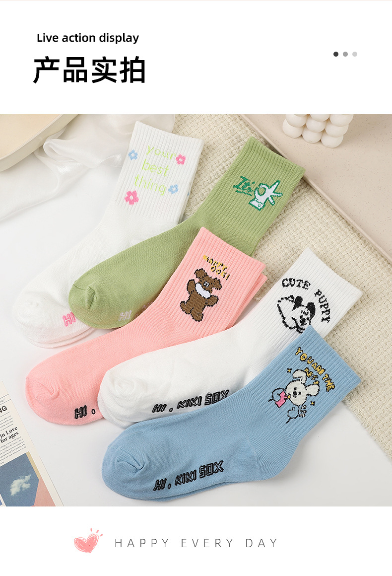 캔디 컬러 양말 여성의 가을과 겨울 새로운 일본 인터넷 인기있는 Ins 트렌디 한 귀여운 만화 올 매치 대학 스타일 스포츠 양말