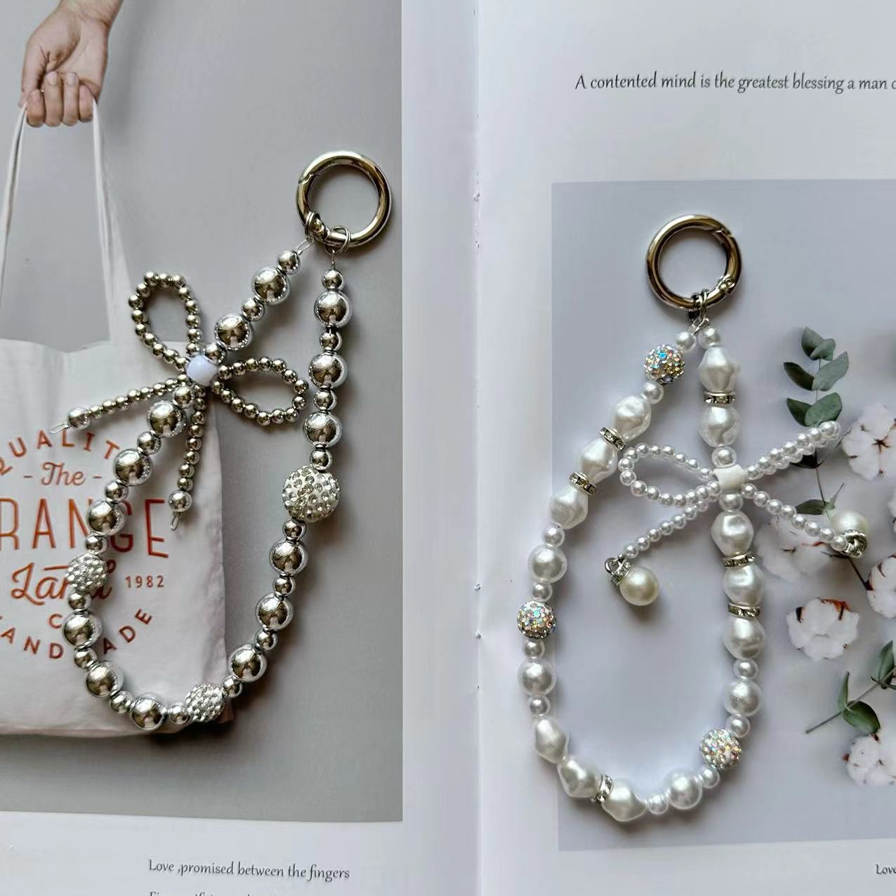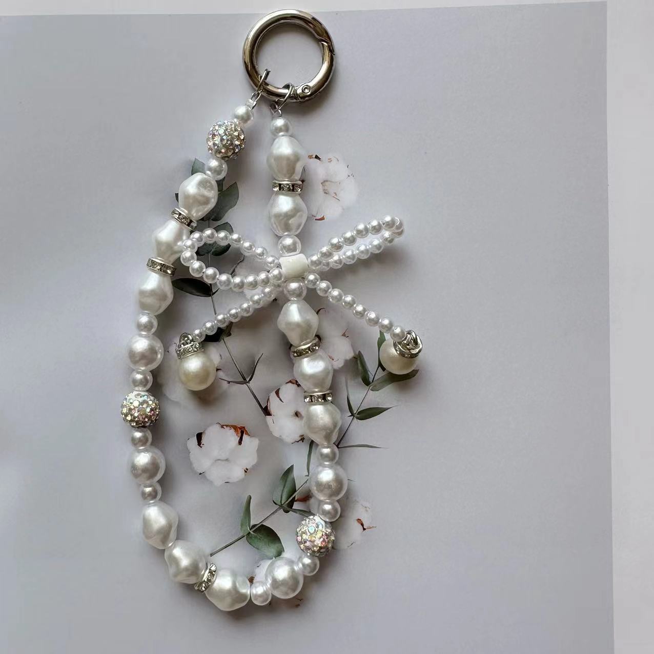 ins珍珠串珠蝴蝶结链条挂绳手机钥匙扣ccd相机包包包挂件