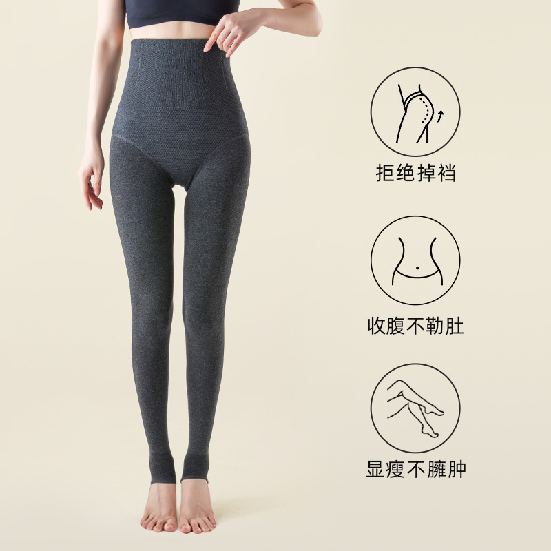 키가 큰 스모키 그레이 레깅스 여성의 가을과 겨울 기모 높은 허리 벨리 타이트 바깥 쪽 코튼 바지를 입지 않고 코튼 팬츠 착용스토어 가기