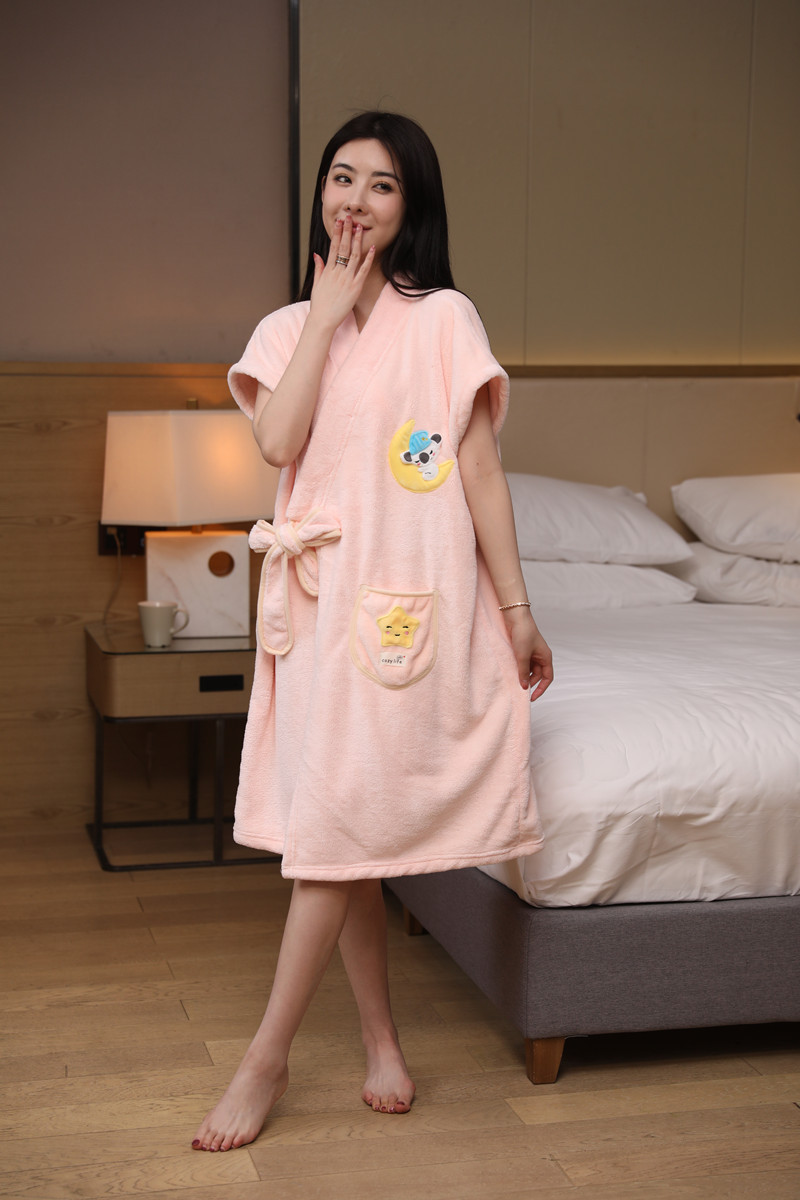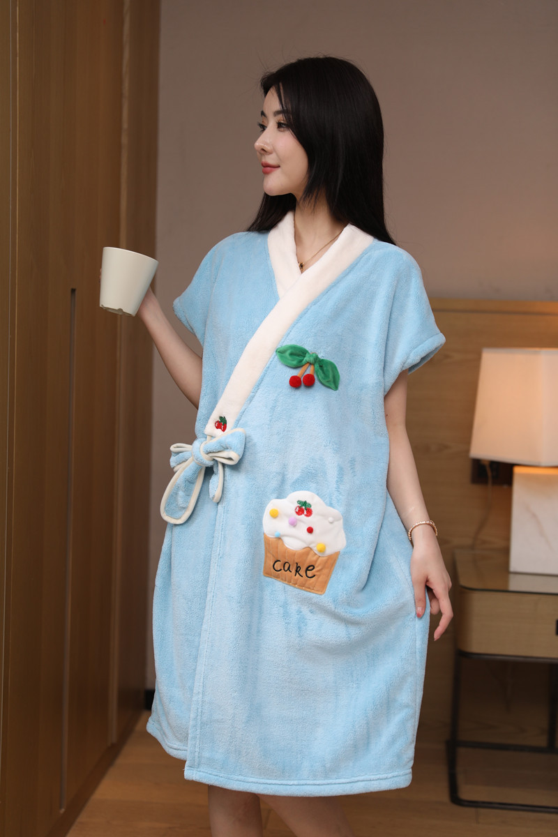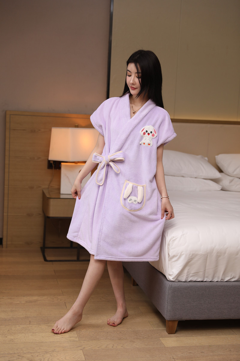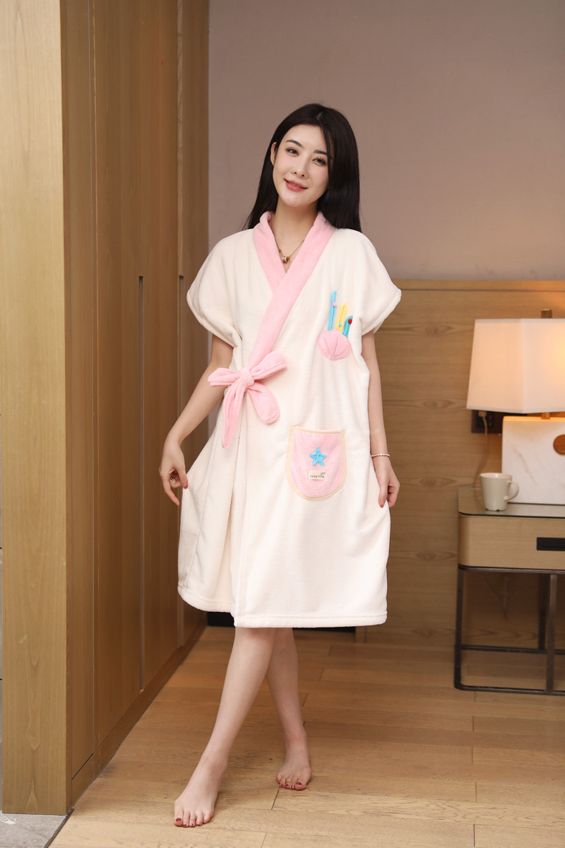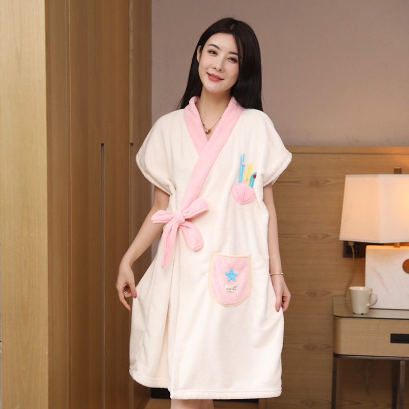 여성용 사계절 수영용 가운, 사선형 카라, 산호벨벳, 가정용 속건 목욕타월, 성인용 목욕 가운, 따뜻한 잠옷 가운스토어 가기