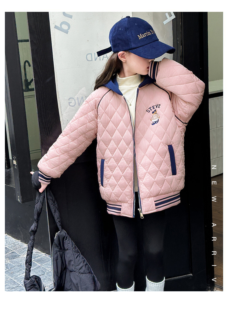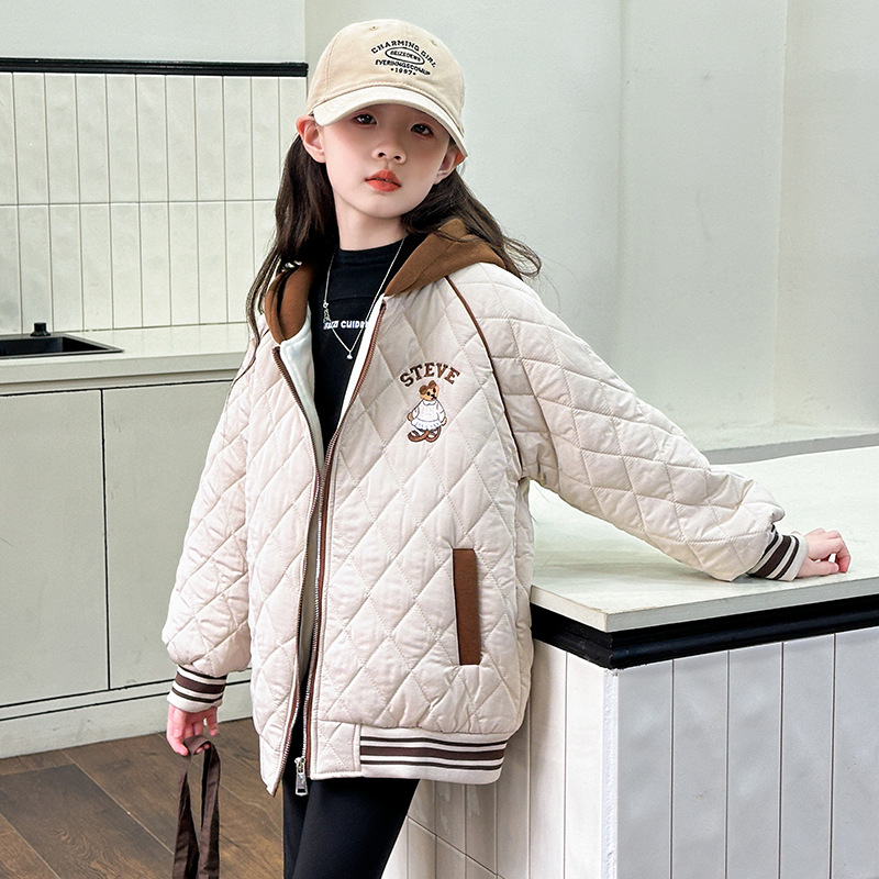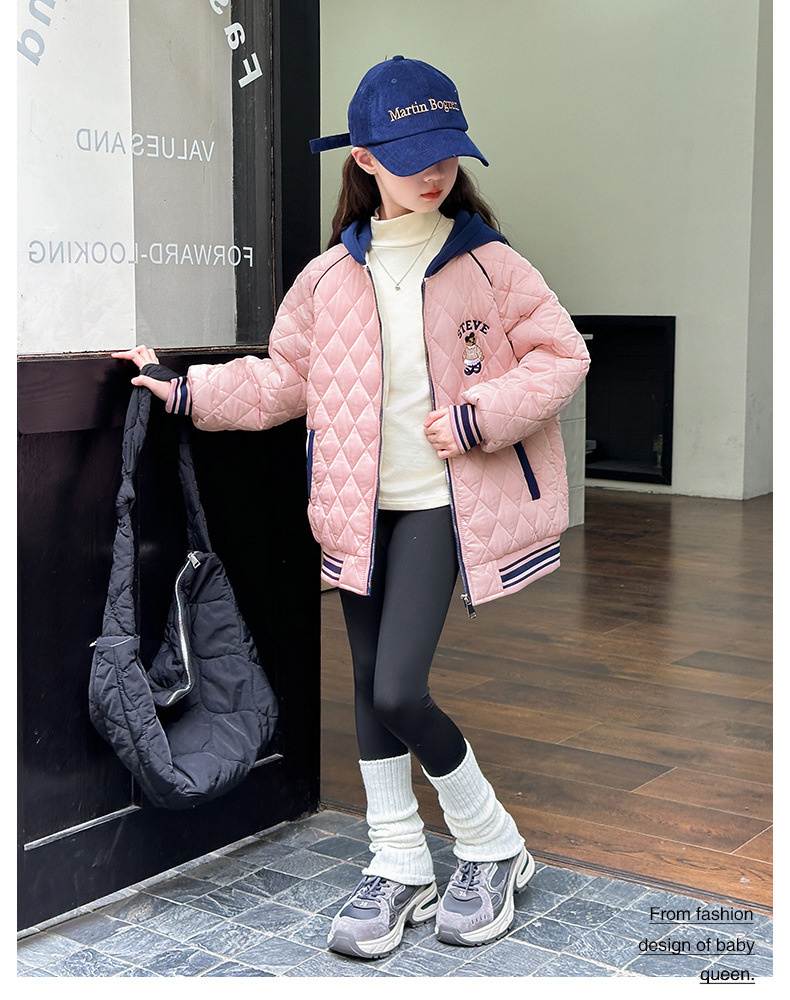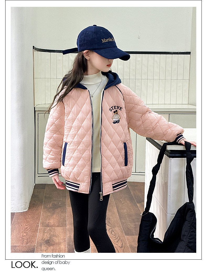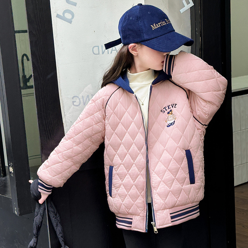 여아용 면 패딩 재킷 2026년 신상 가을 겨울 의류, 중대형 아동용, 기모 및 두꺼운 패딩, 패셔너블하고 스타일리쉬한 여아용 따뜻한 상의