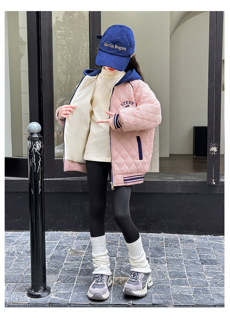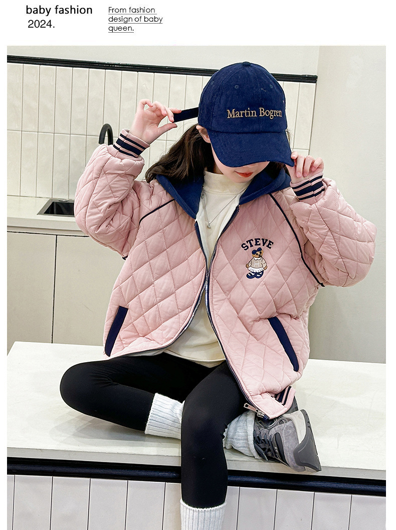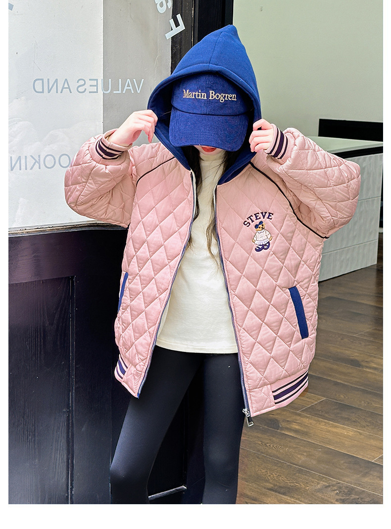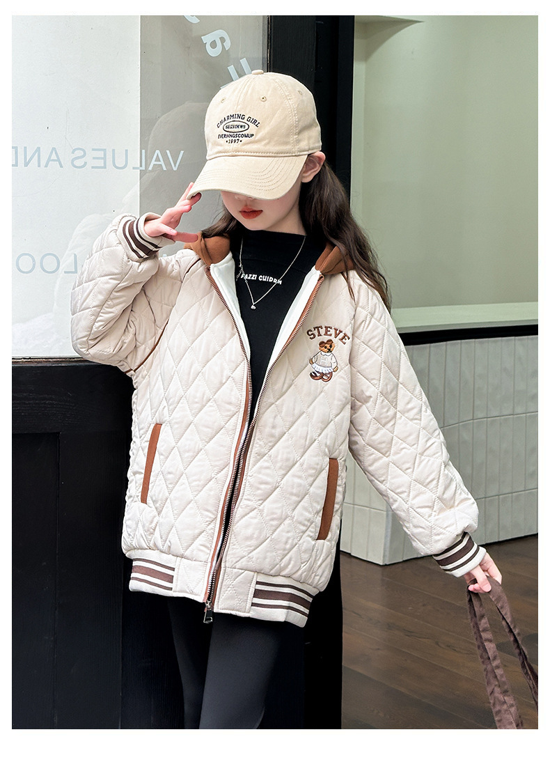 여아용 면 패딩 재킷 2026년 신상 가을 겨울 의류, 중대형 아동용, 기모 및 두꺼운 패딩, 패셔너블하고 스타일리쉬한 여아용 따뜻한 상의
