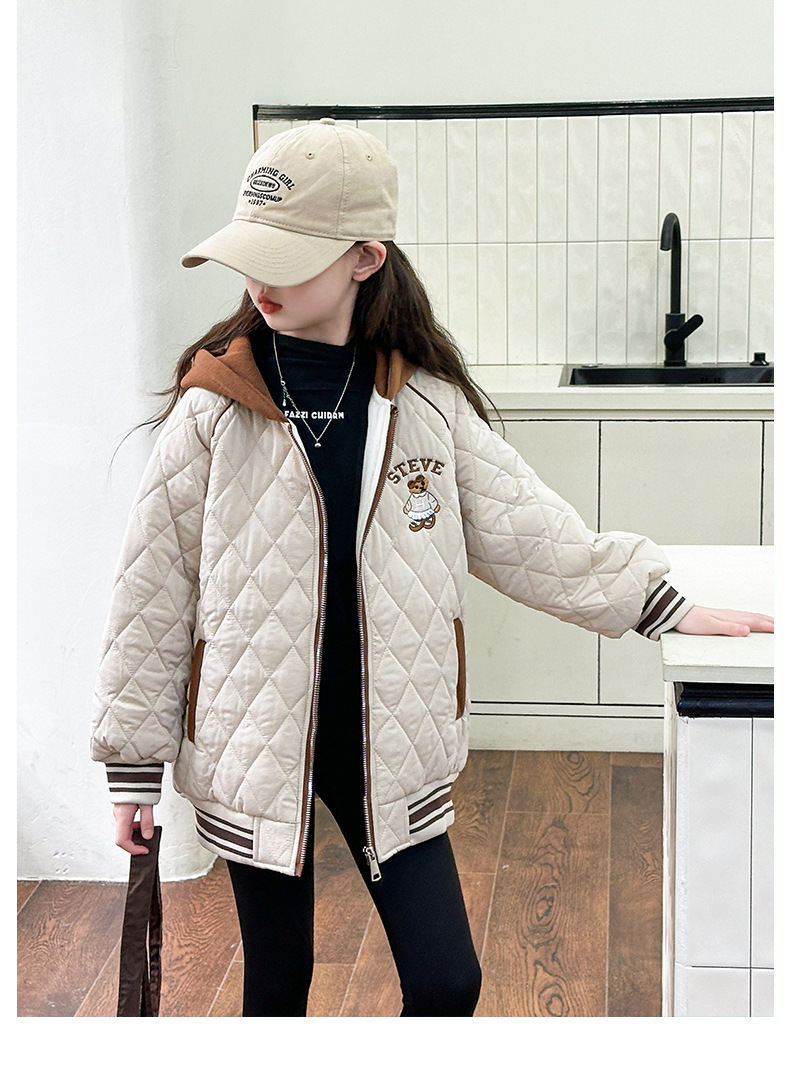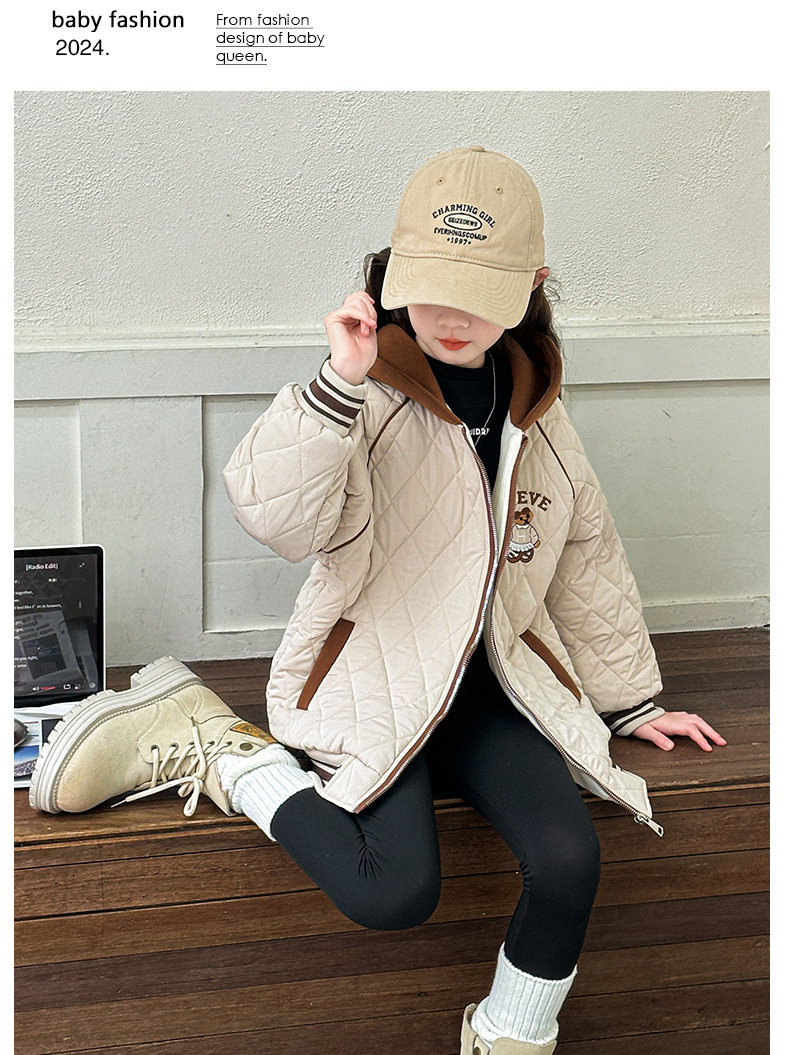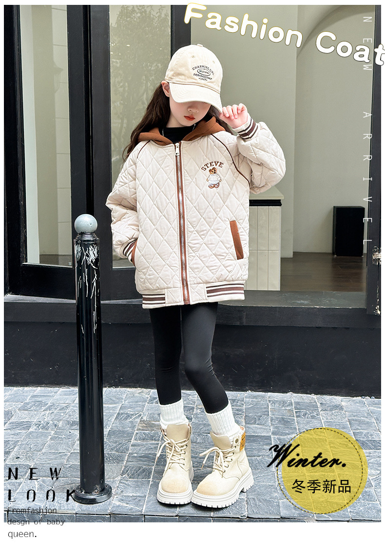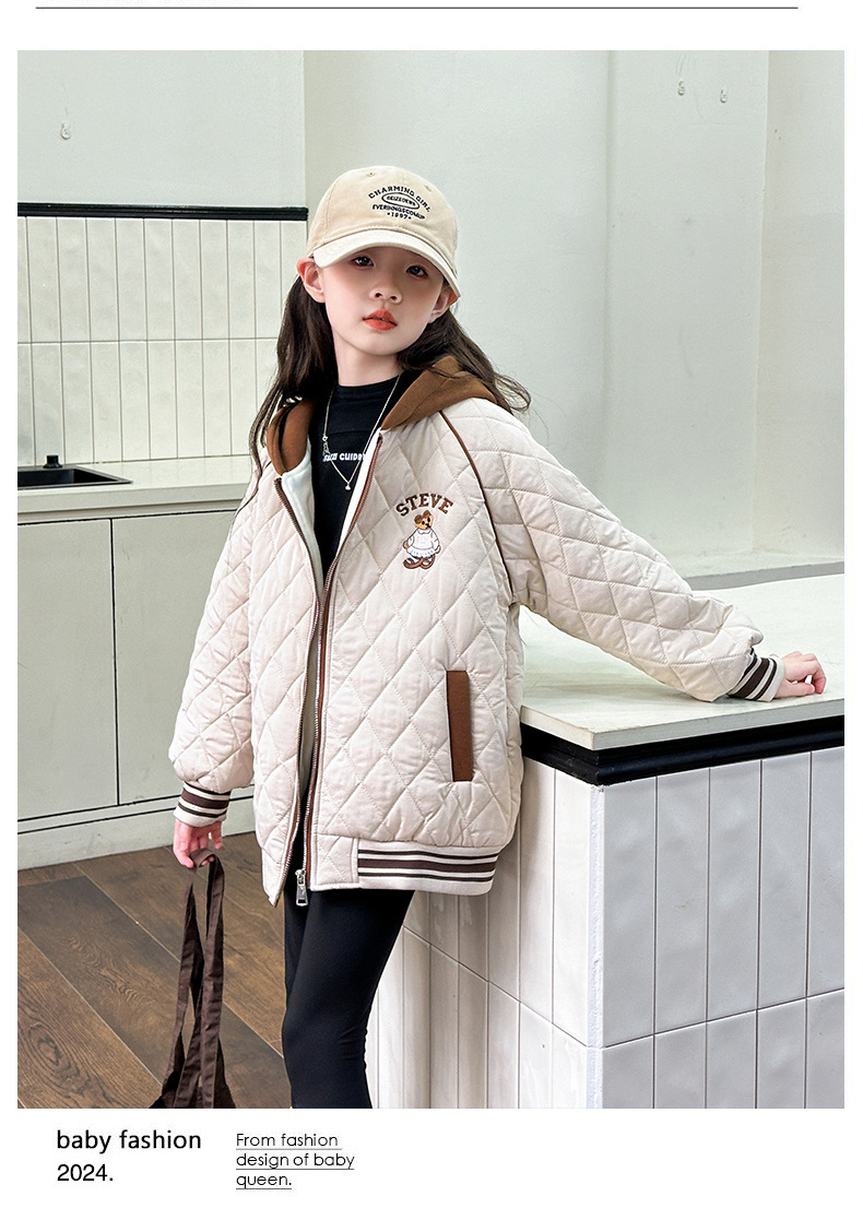 여아용 면 패딩 재킷 2026년 신상 가을 겨울 의류, 중대형 아동용, 기모 및 두꺼운 패딩, 패셔너블하고 스타일리쉬한 여아용 따뜻한 상의스토어 가기