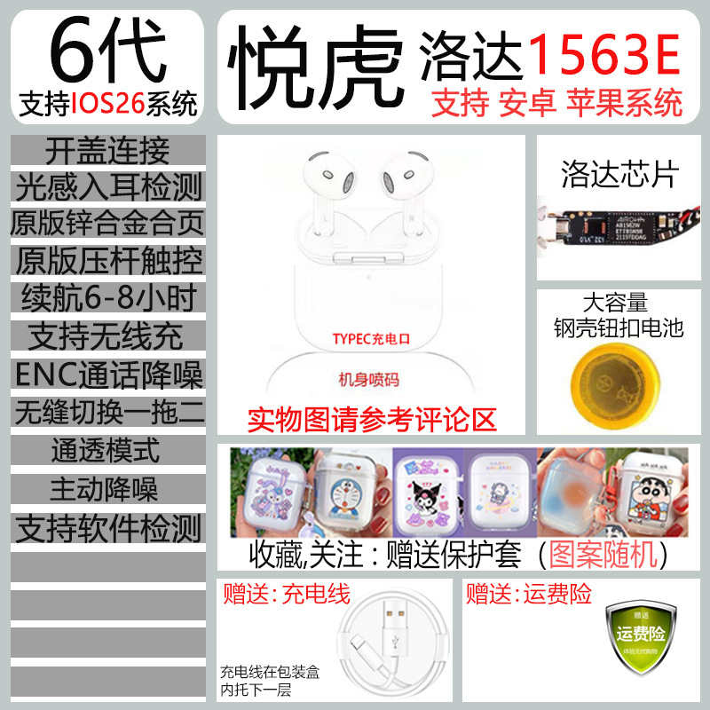 • 6세대 최고급 업그레이드 버전 [Yuehu 버튼 배터리] 1563E + 능동형 소음 감소 + 공간 오디오 인터페이스 + 두 장치 간 원활한 전환(전체 기능)