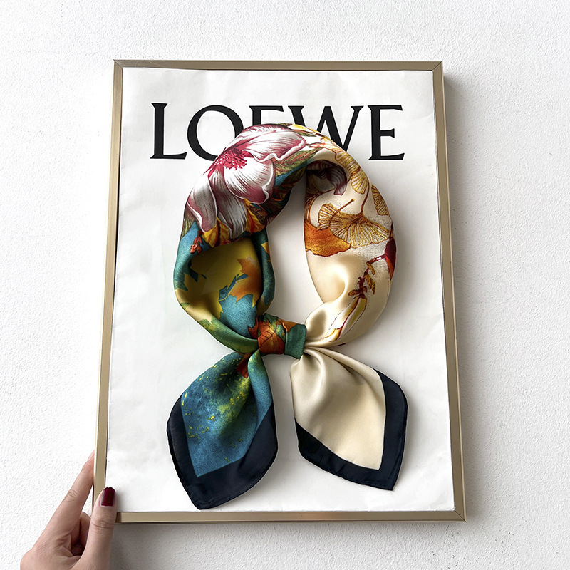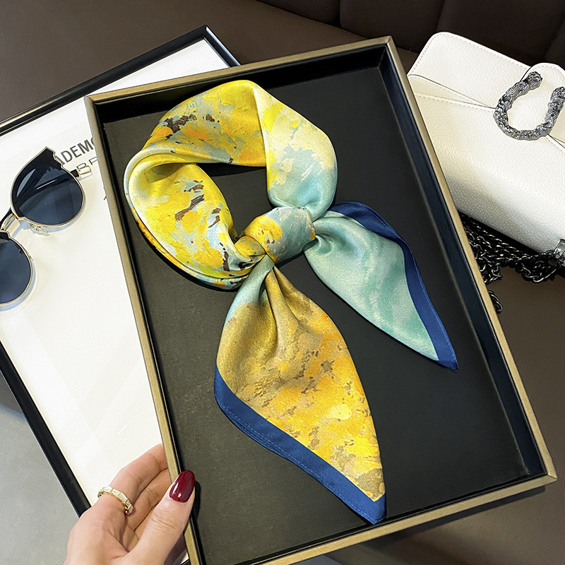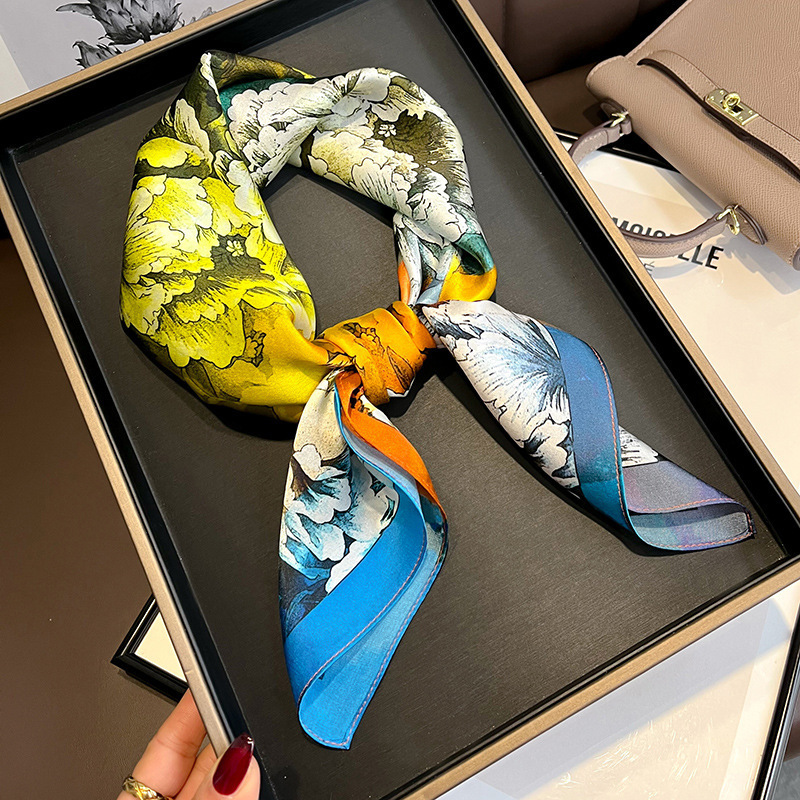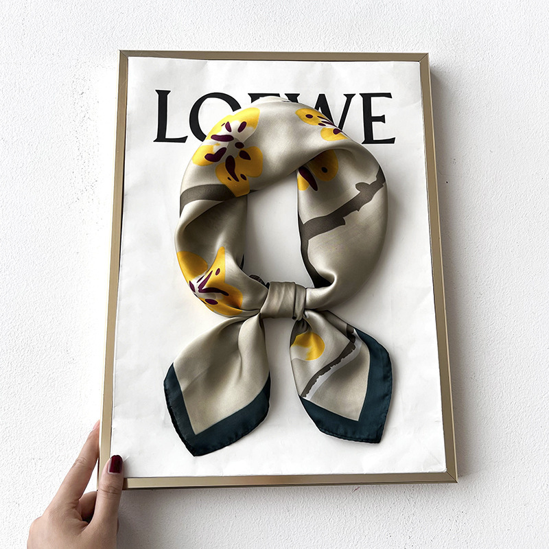 [카키 깃털] 봄 · 가을 새 70 스퀘어 스카프 패션 서양식 실크 스카프 모조 실크 스퀘어 스카프 올매치 얇은 스카프
