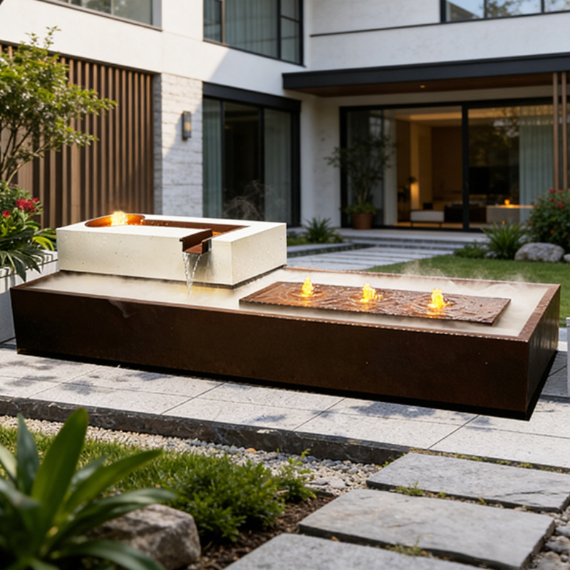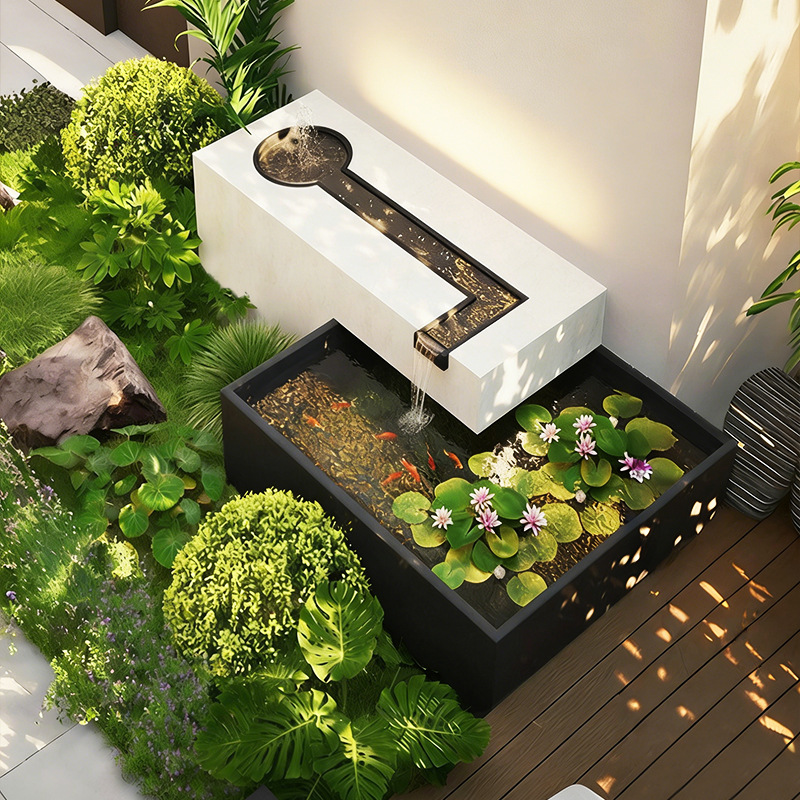 맞춤형 야외 스테인리스 물조경 수영장, 빌라 마당 순환식 분수 장식품, 야외 금속 조경 연못스토어 가기