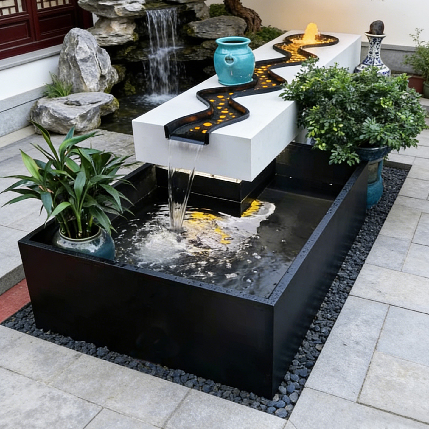 맞춤형 야외 스테인리스 물조경 수영장, 빌라 마당 순환식 분수 장식품, 야외 금속 조경 연못
