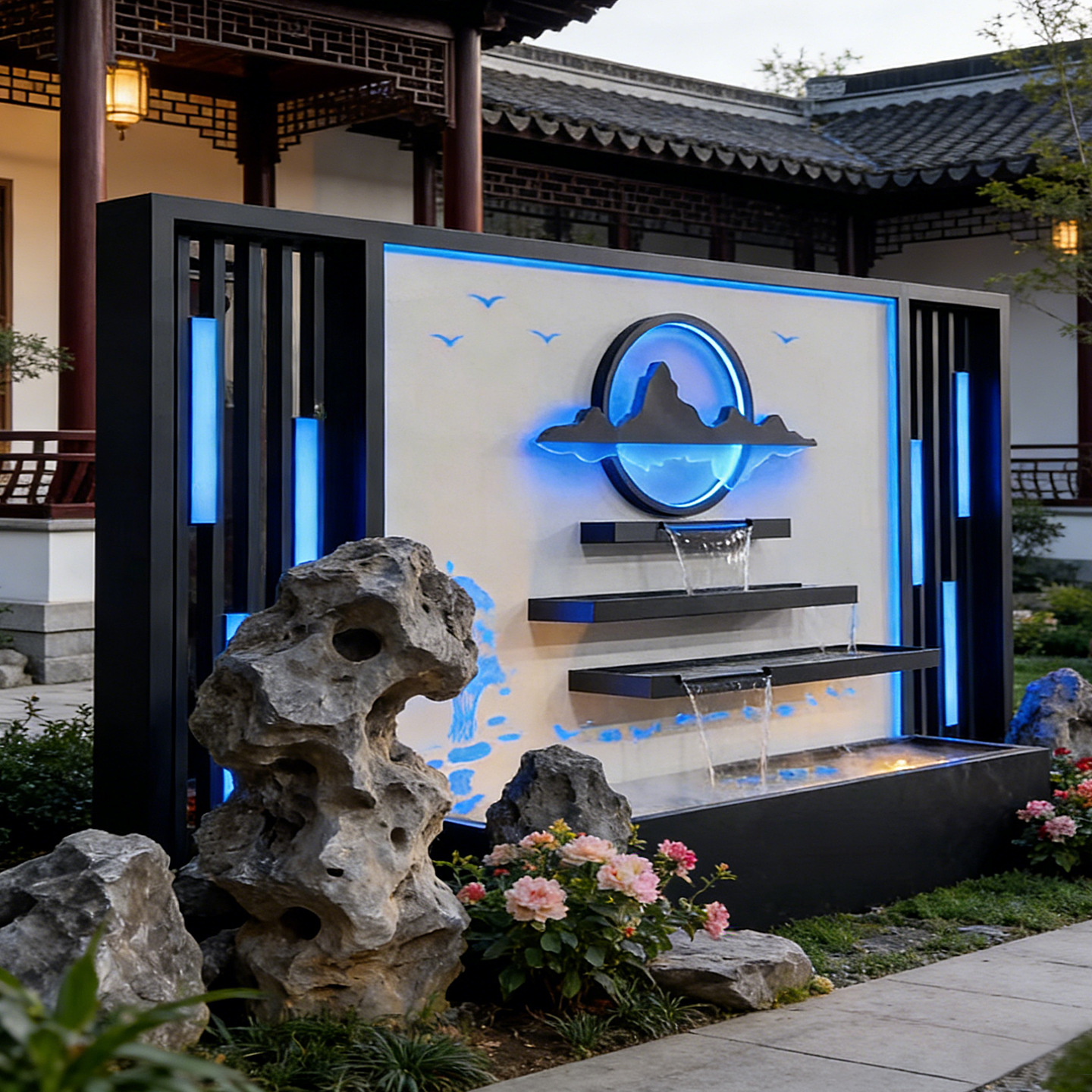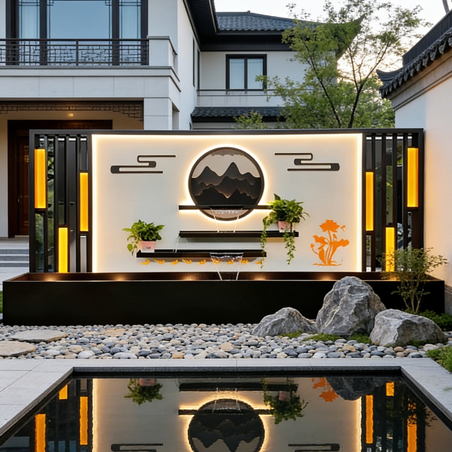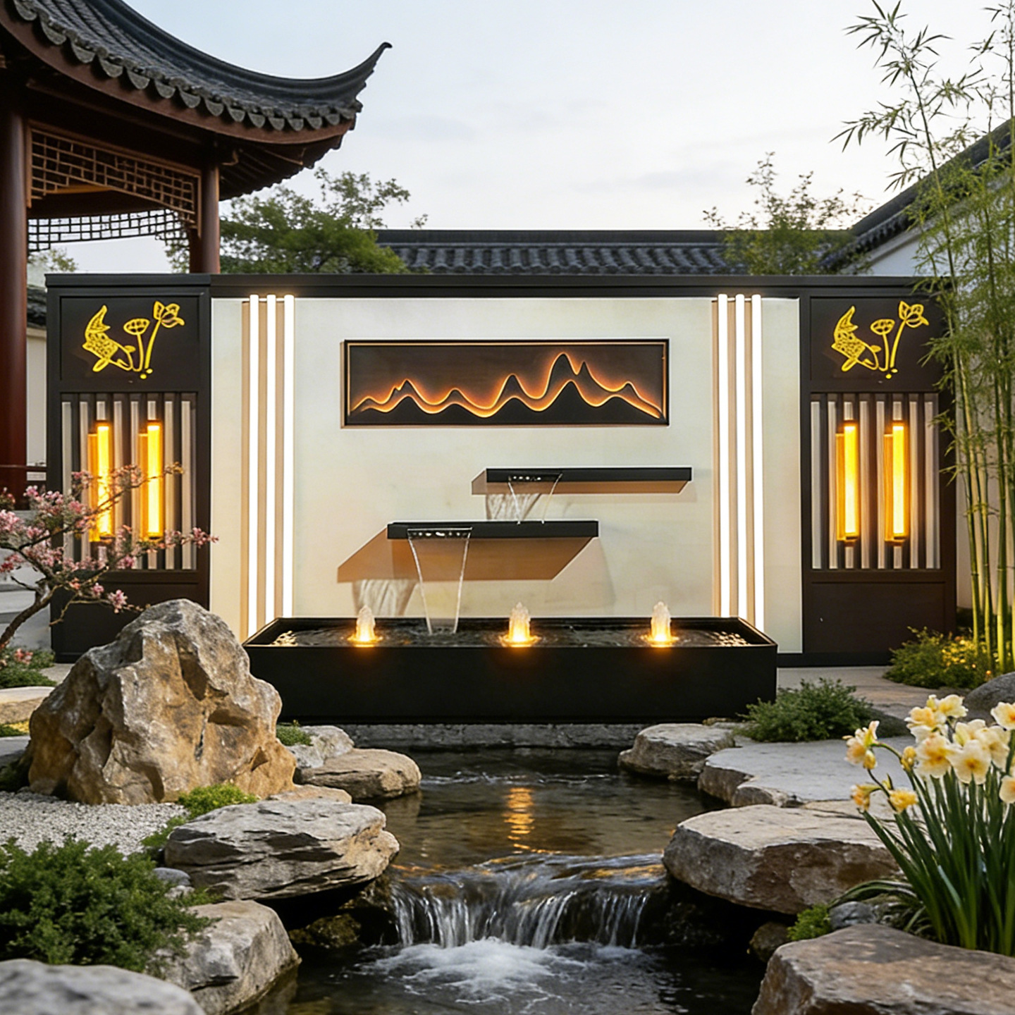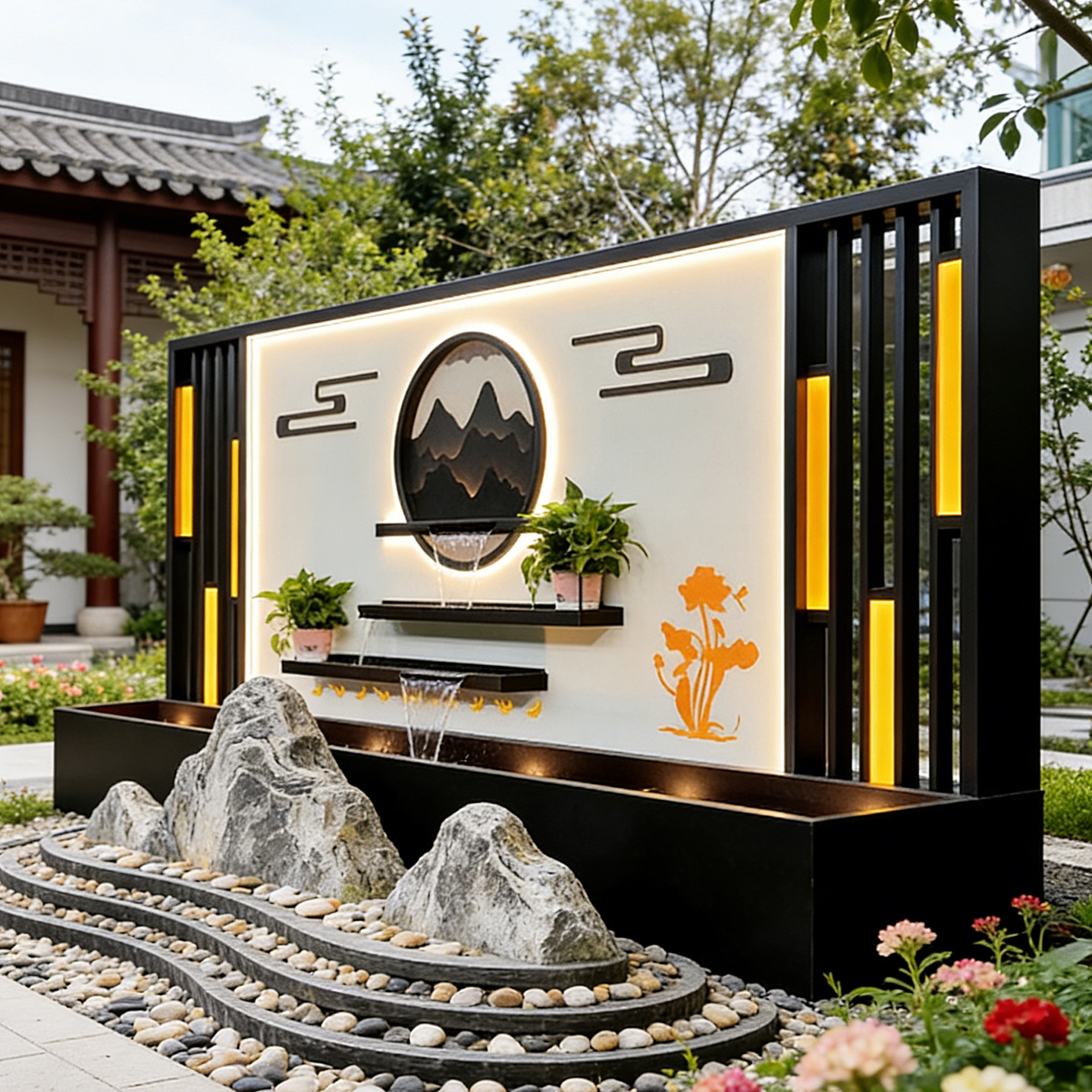 맞춤형 스테인리스 스틸 워터 스크린 벽, 새로운 중국식 정원 금속 그림자벽, 워터 커튼 월, 야외 정원 워터 스크린 벽