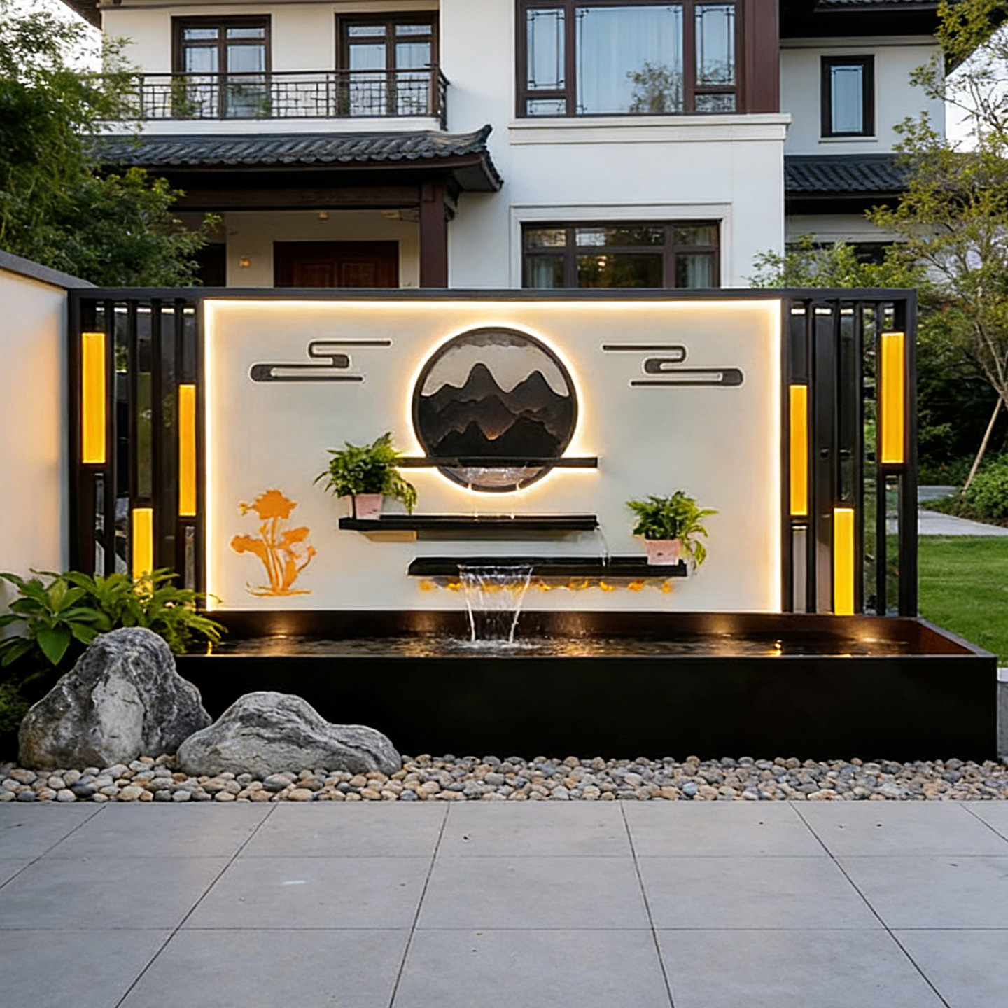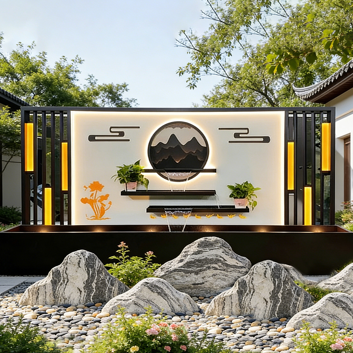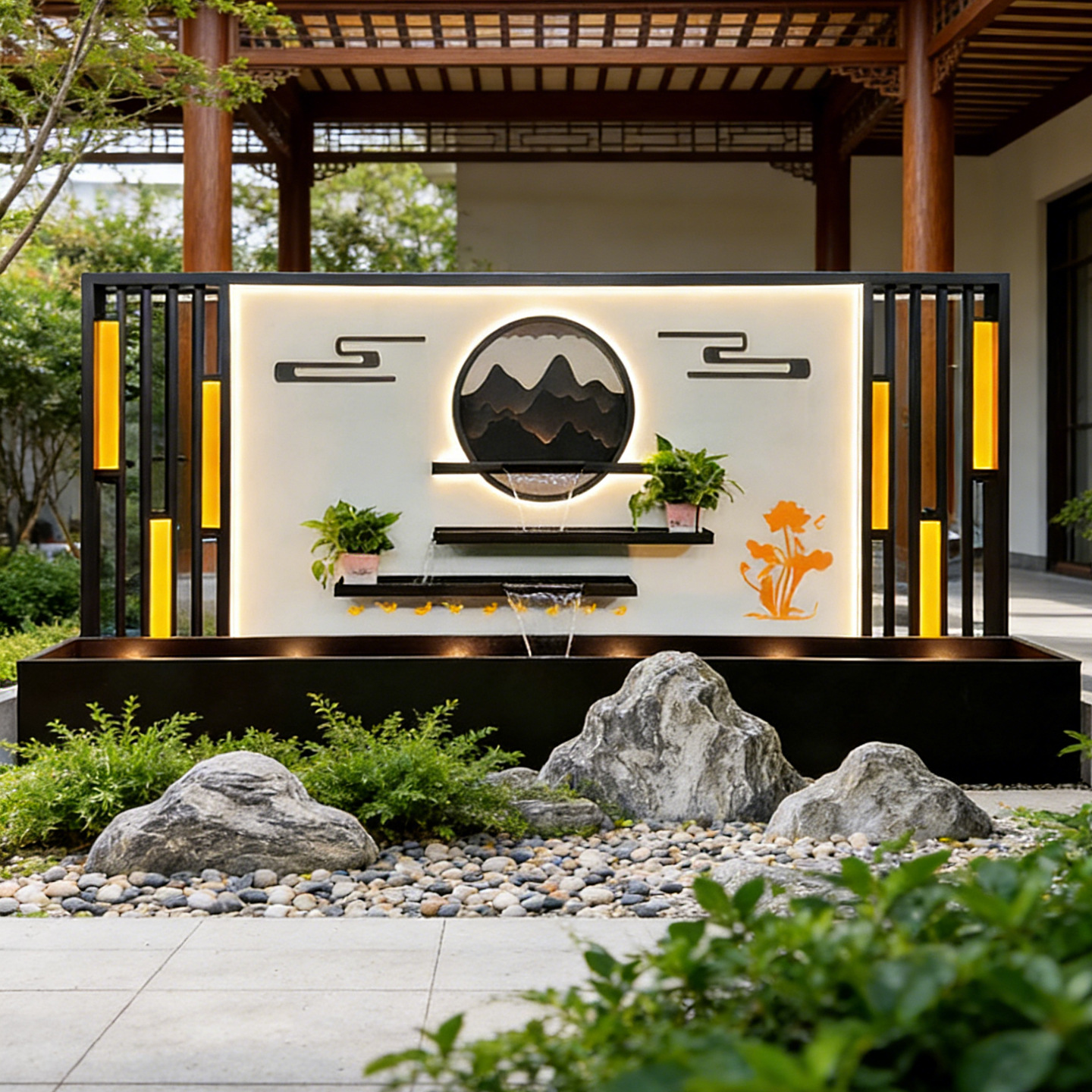 맞춤형 스테인리스 스틸 워터 스크린 벽, 새로운 중국식 정원 금속 그림자벽, 워터 커튼 월, 야외 정원 워터 스크린 벽