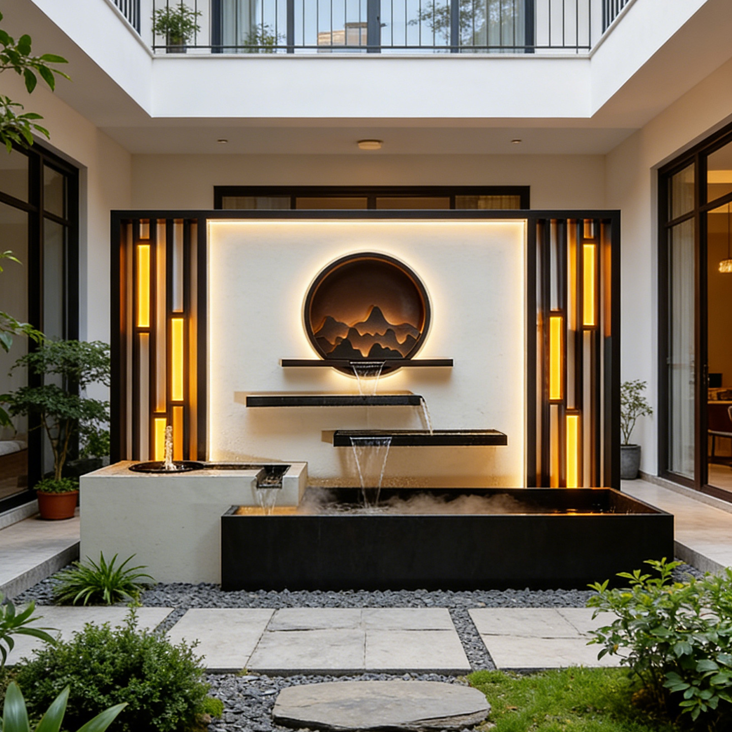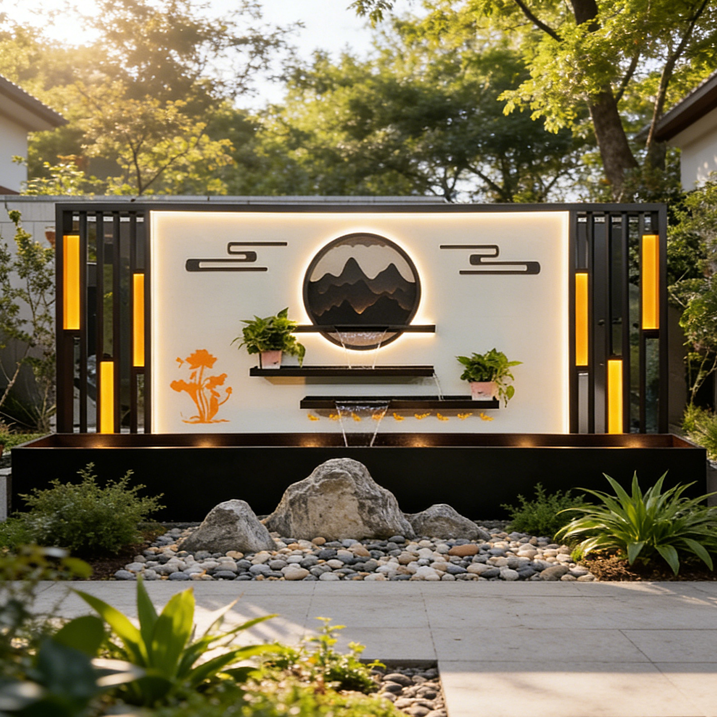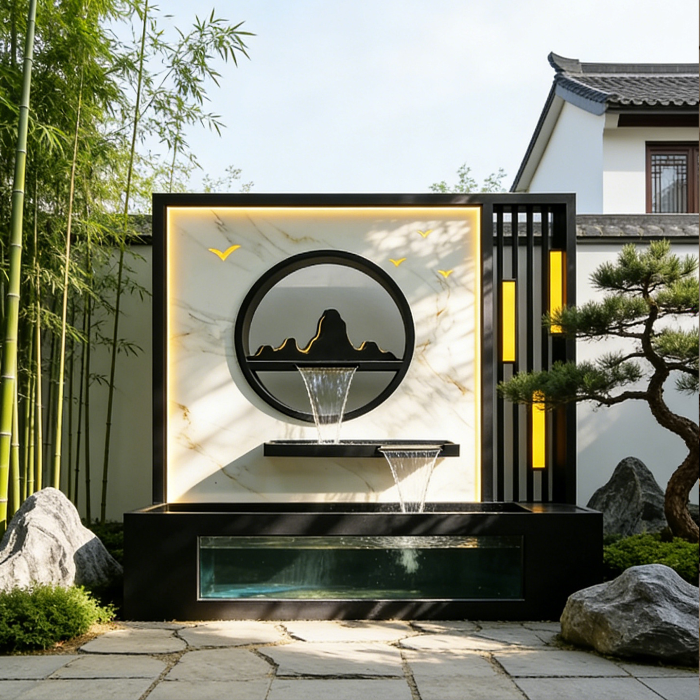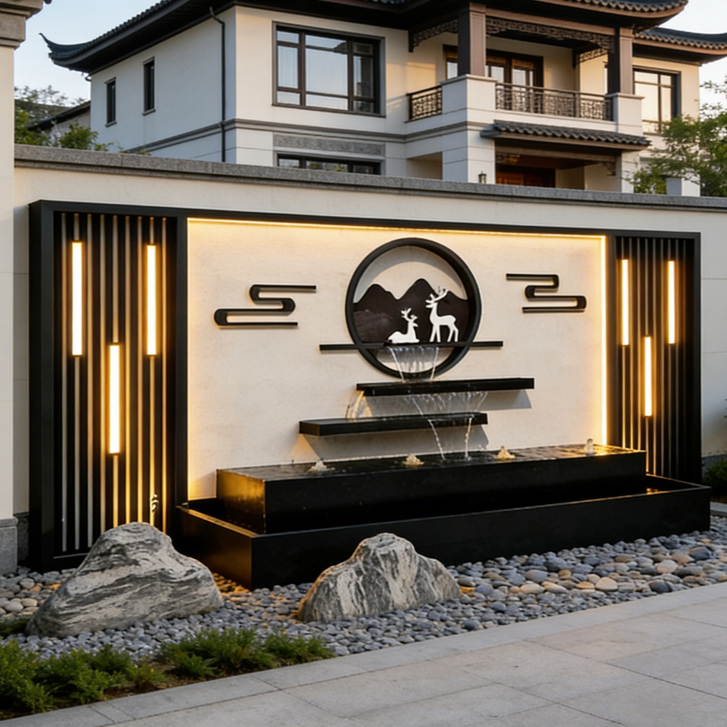 맞춤형 스테인리스 스틸 워터 스크린 벽, 새로운 중국식 정원 금속 그림자벽, 워터 커튼 월, 야외 정원 워터 스크린 벽