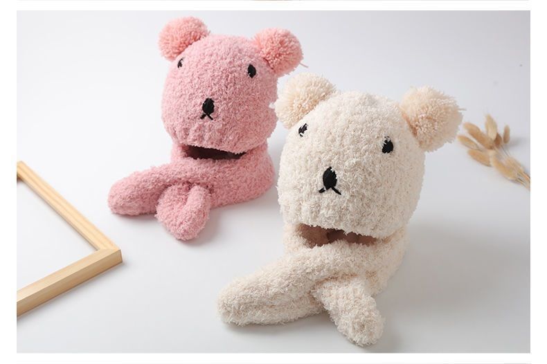 아기 모자 한국 가을과 겨울 귀여운 슈퍼 귀여운 소년과 소녀 아기 귀 보호 모자 스카프 세트 봉제 모자