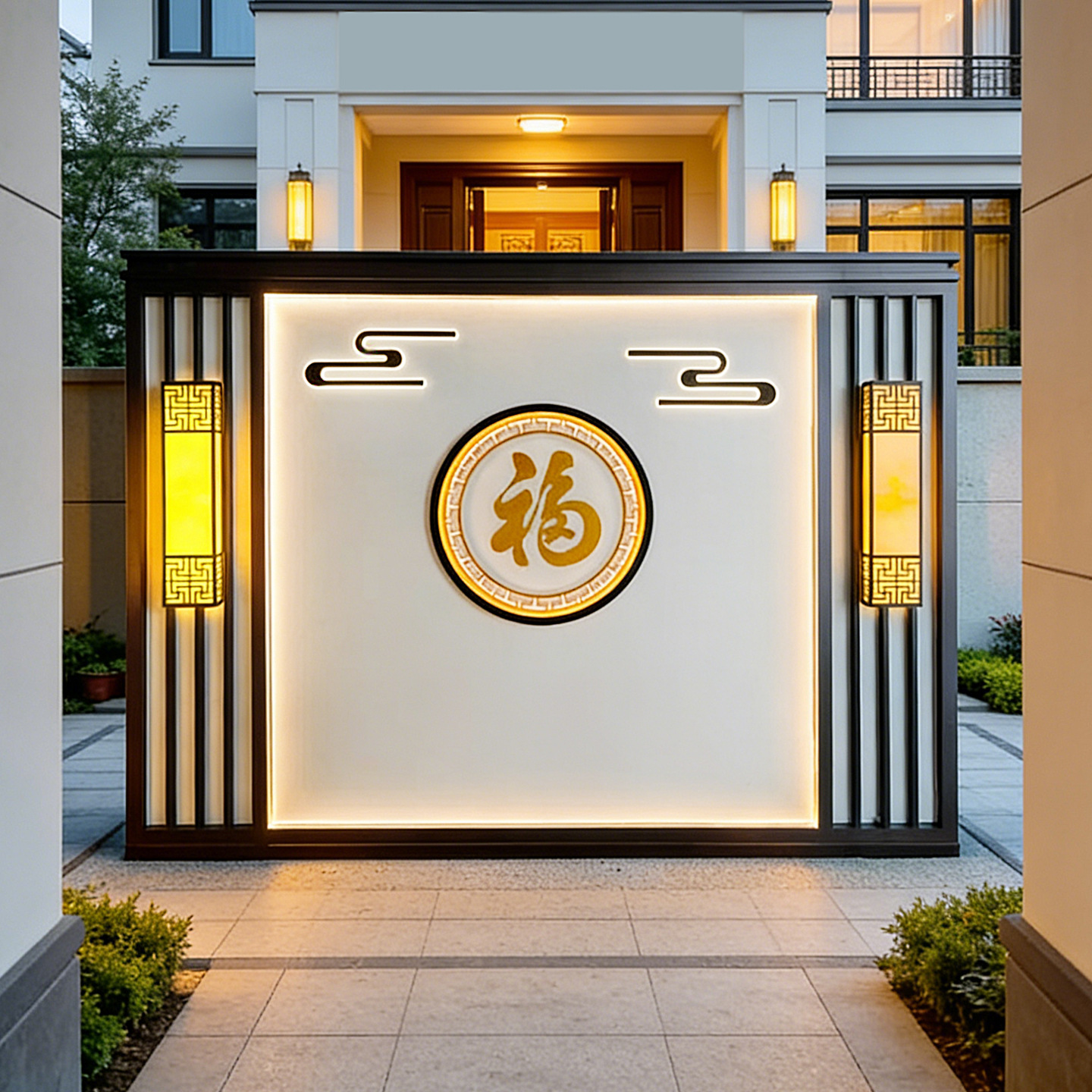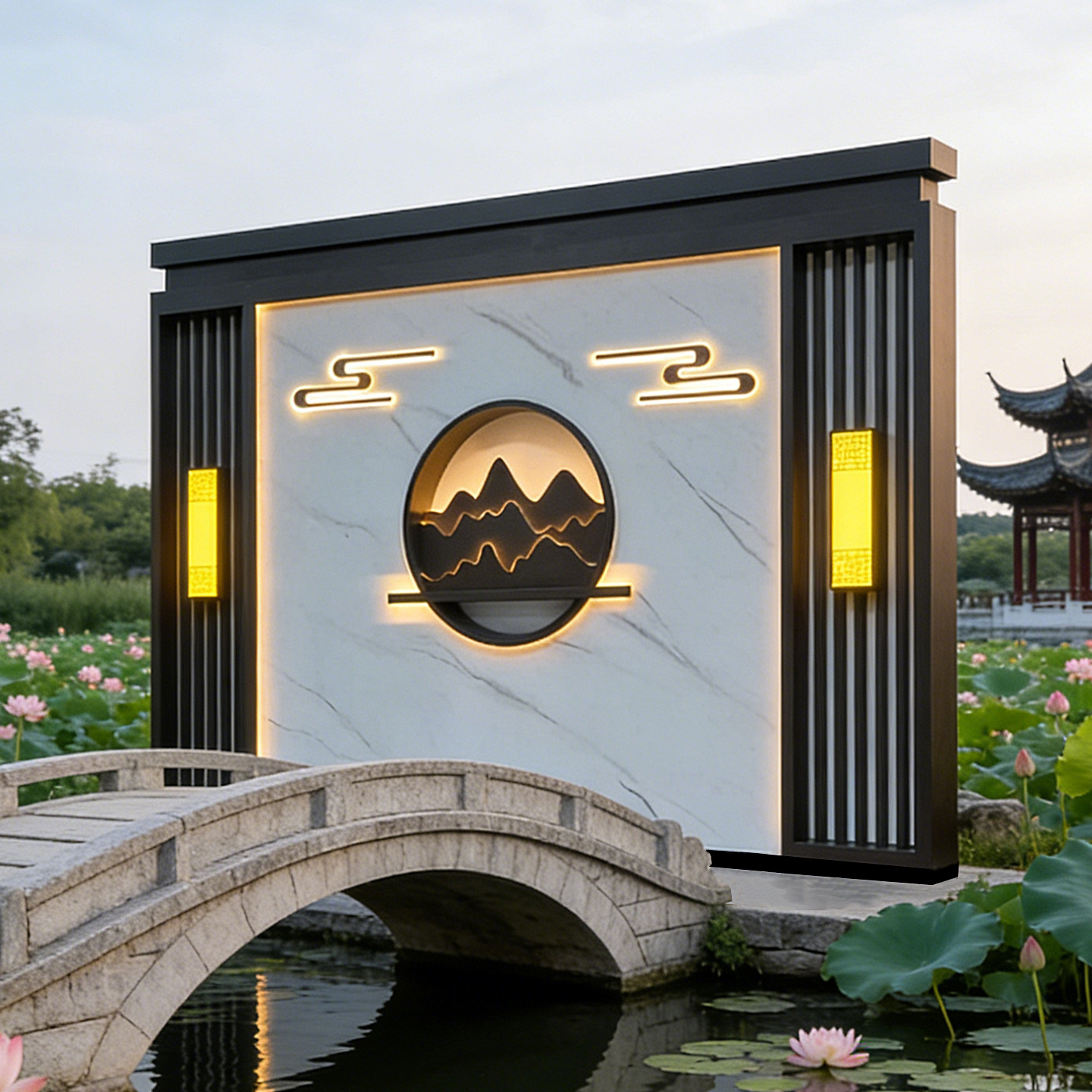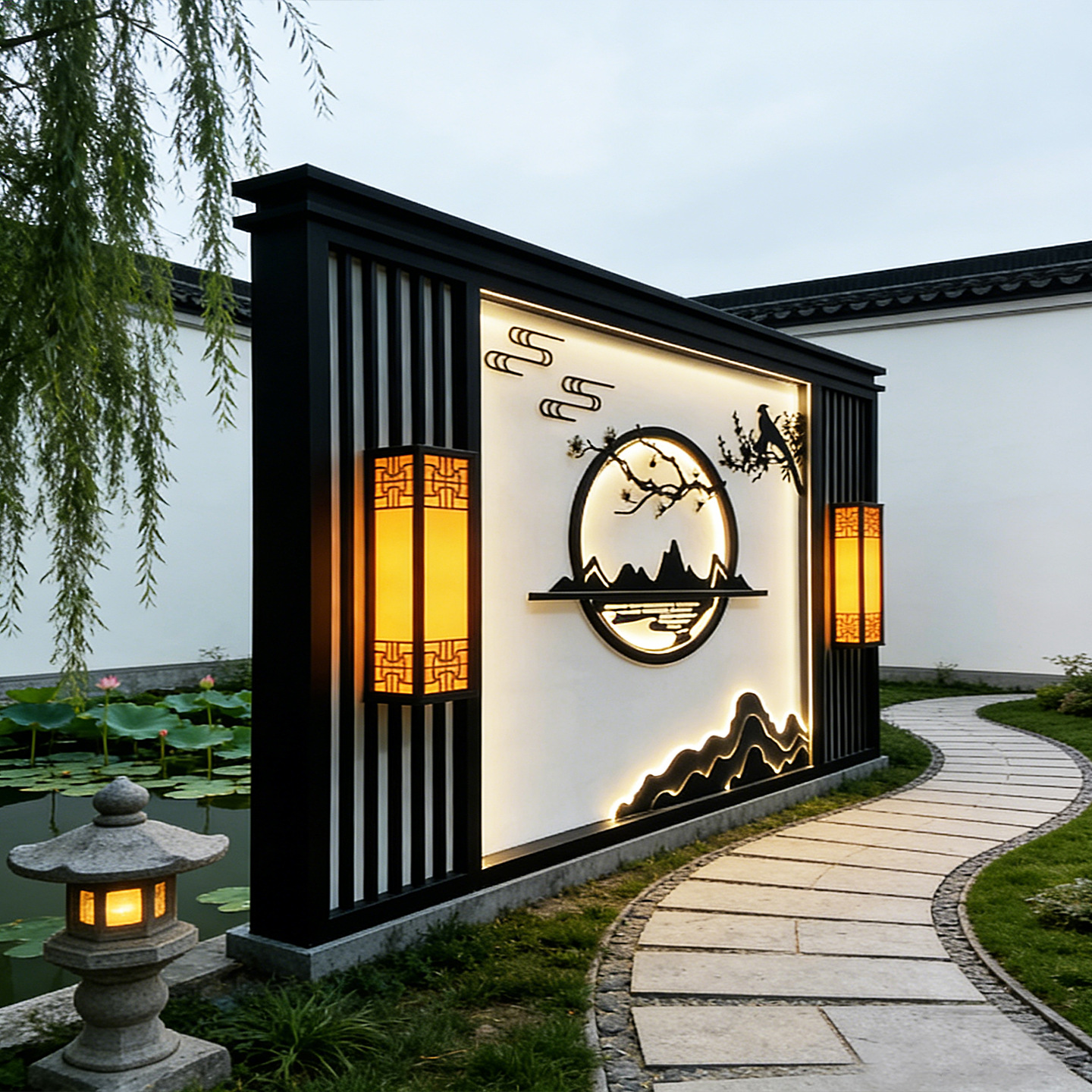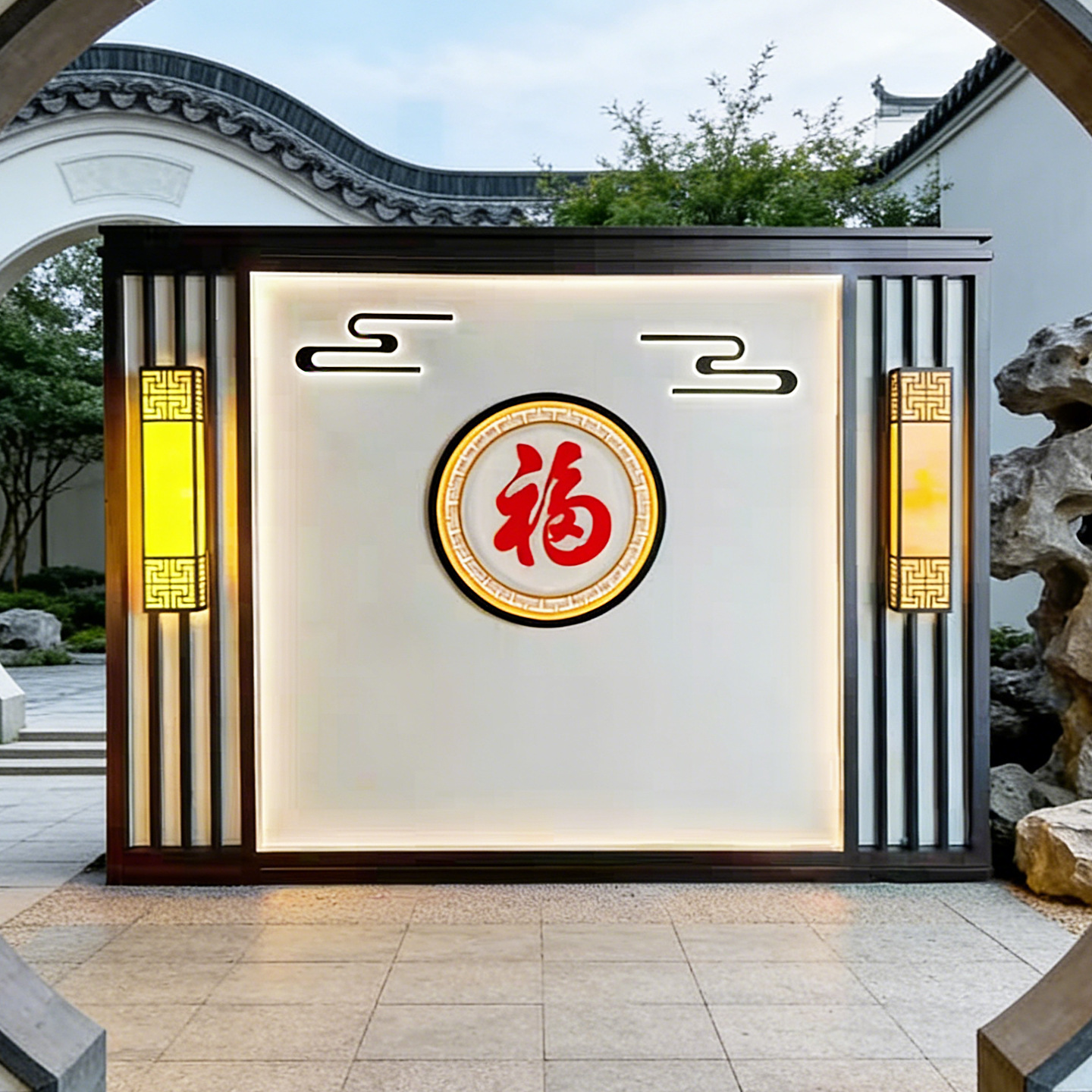 맞춤형 스테인리스 입구 장식벽, 신중국풍 빌라 정원 금속 조경벽, 커뮤니티 마당 칸막이 스크린스토어 가기