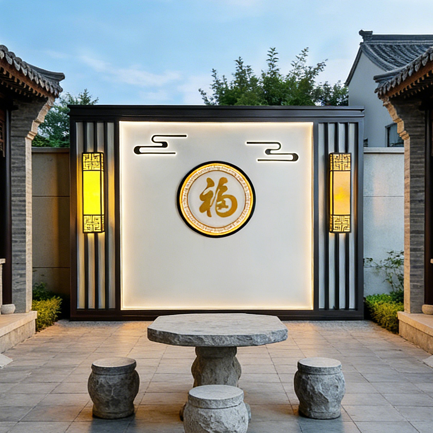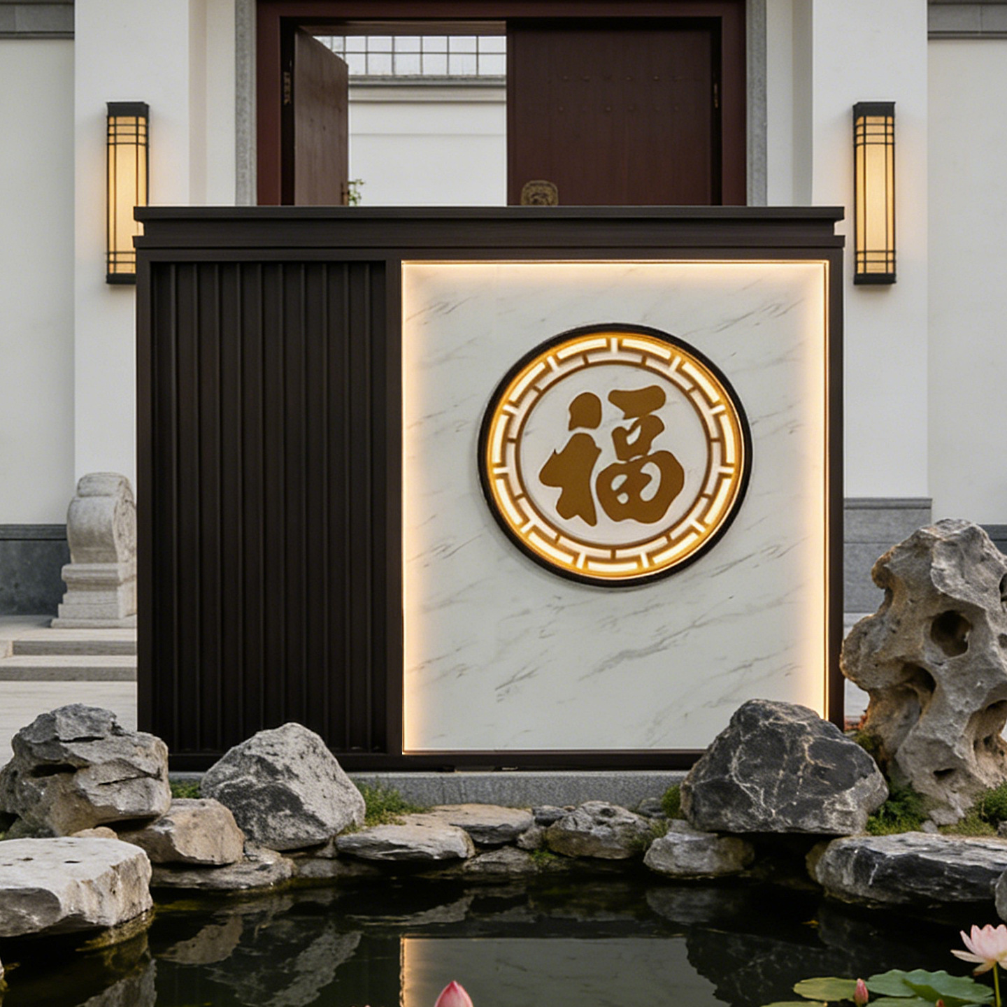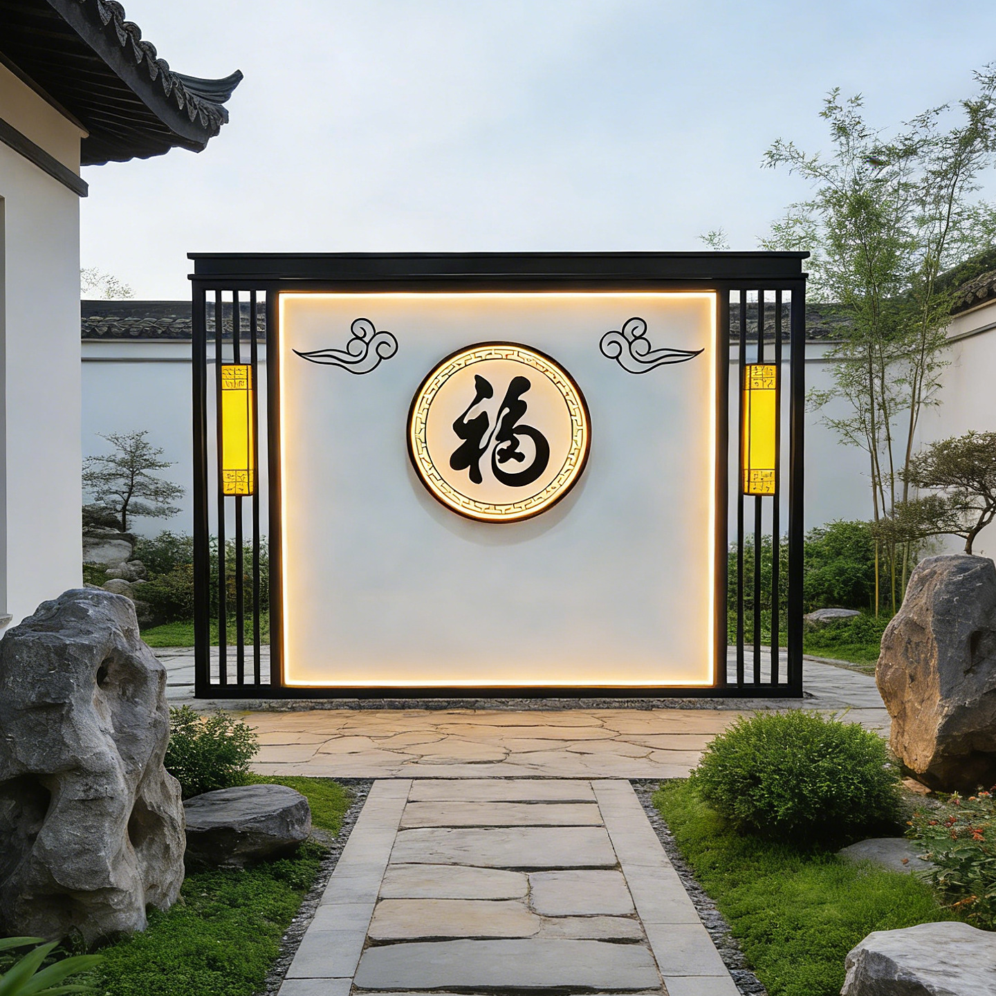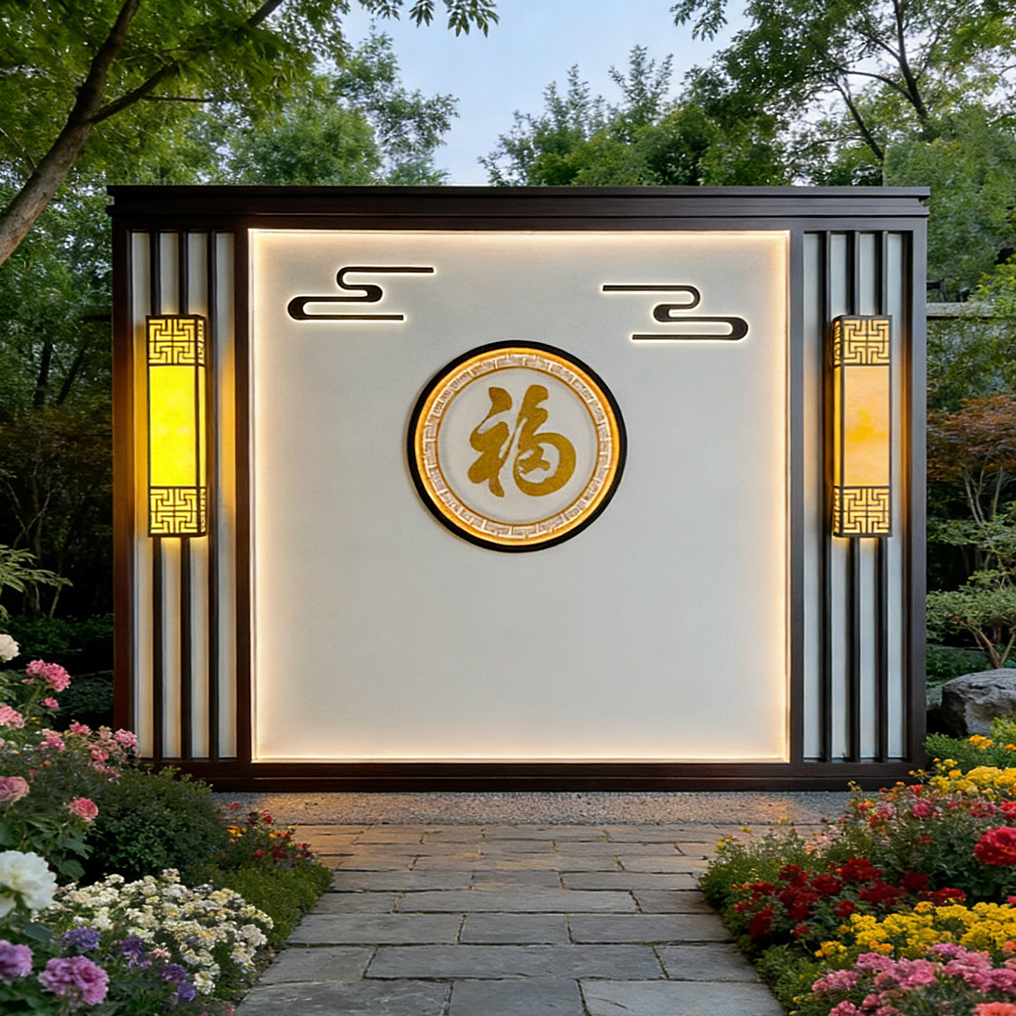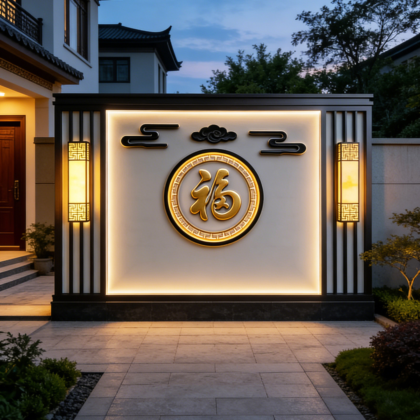 맞춤형 스테인리스 입구 장식벽, 신중국풍 빌라 정원 금속 조경벽, 커뮤니티 마당 칸막이 스크린스토어 가기