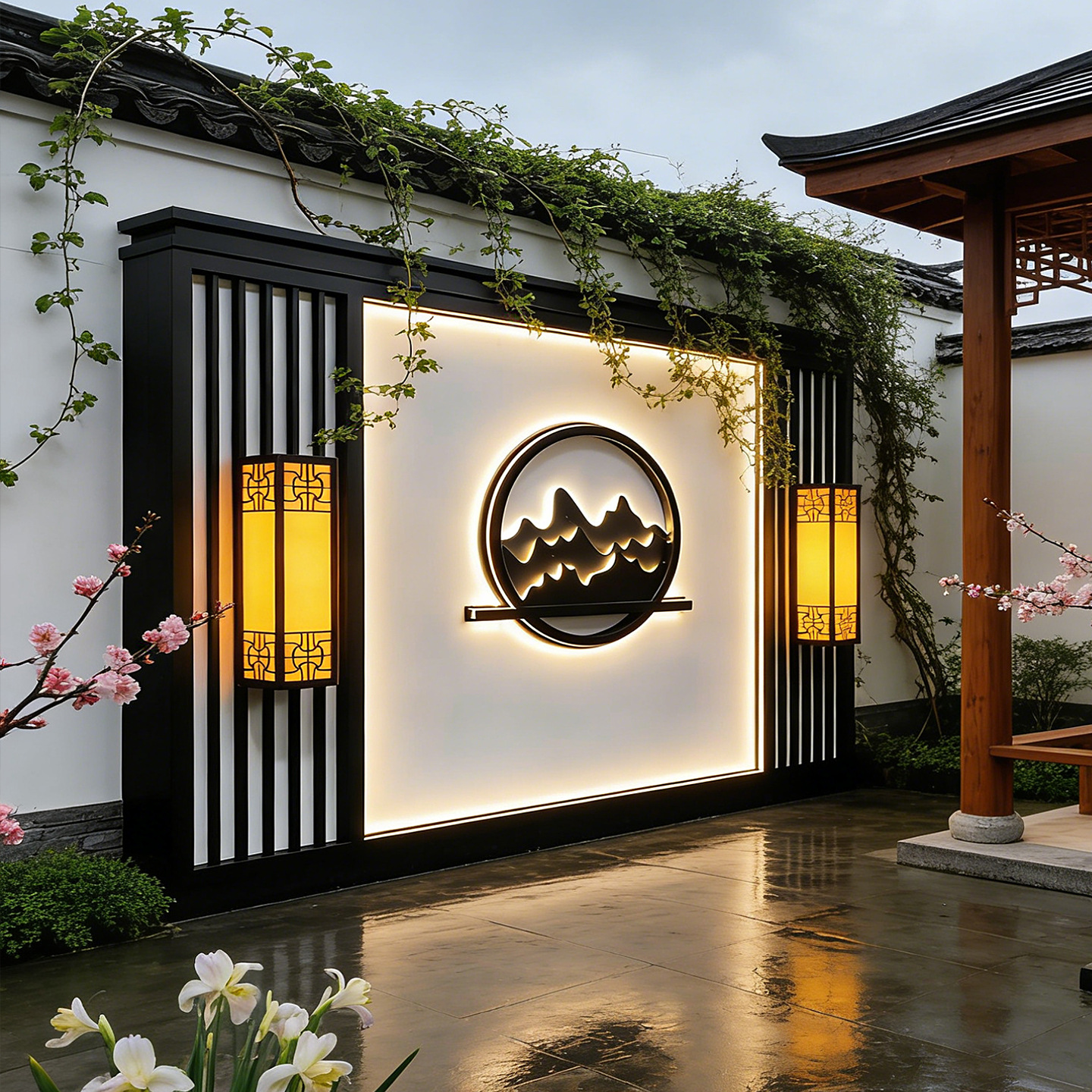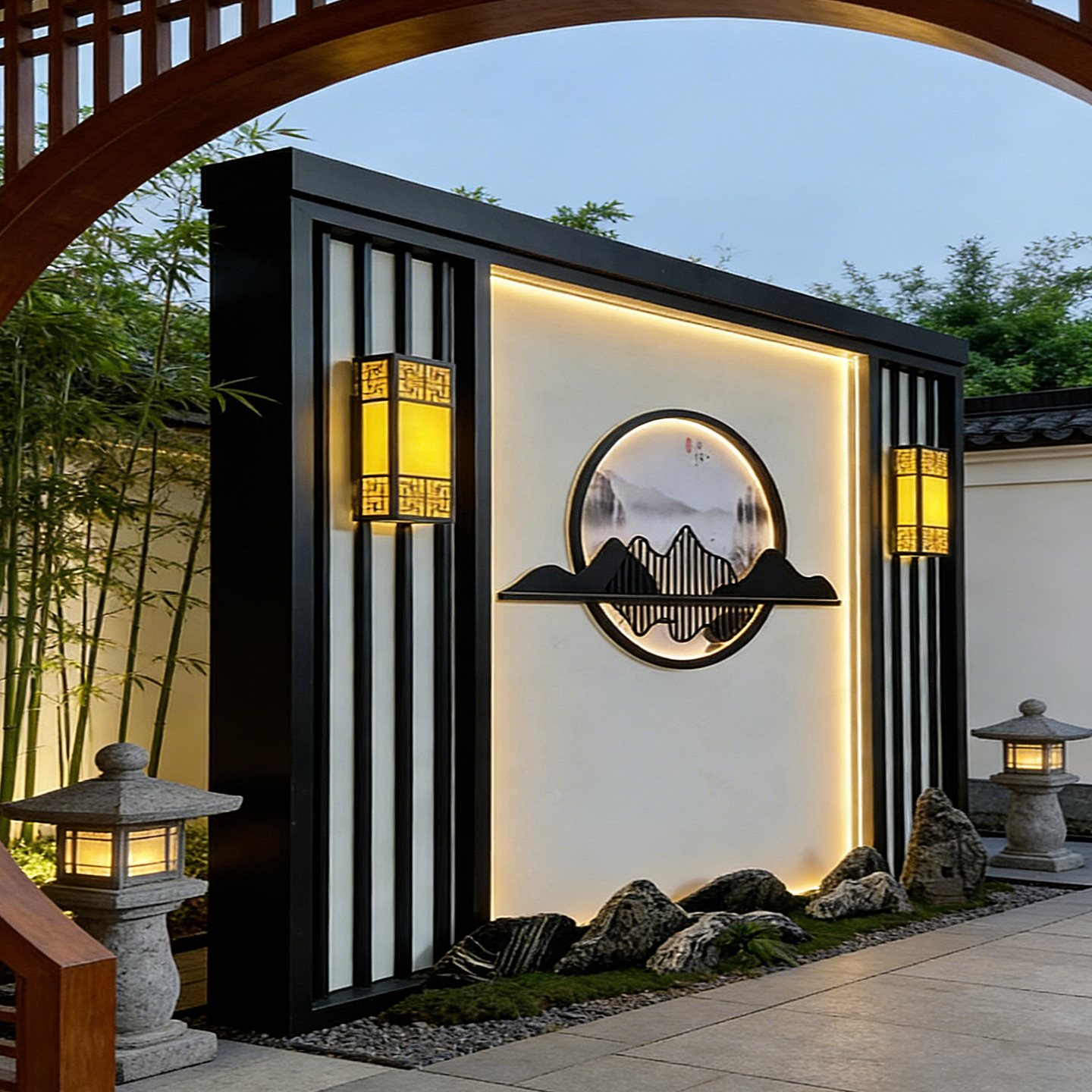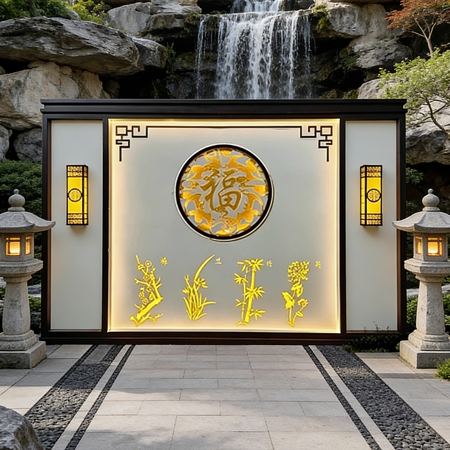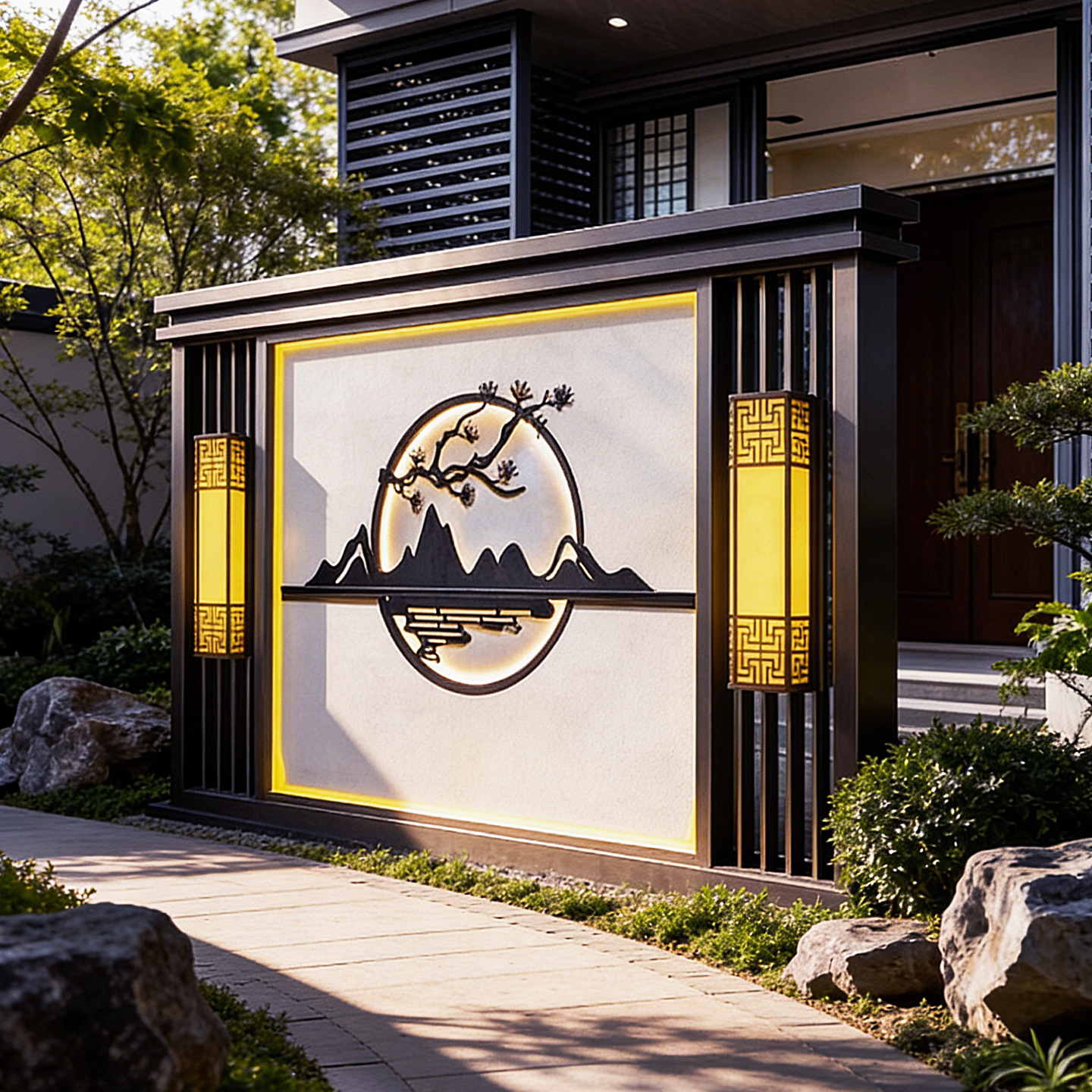 맞춤형 스테인리스 입구 장식벽, 신중국풍 빌라 정원 금속 조경벽, 커뮤니티 마당 칸막이 스크린