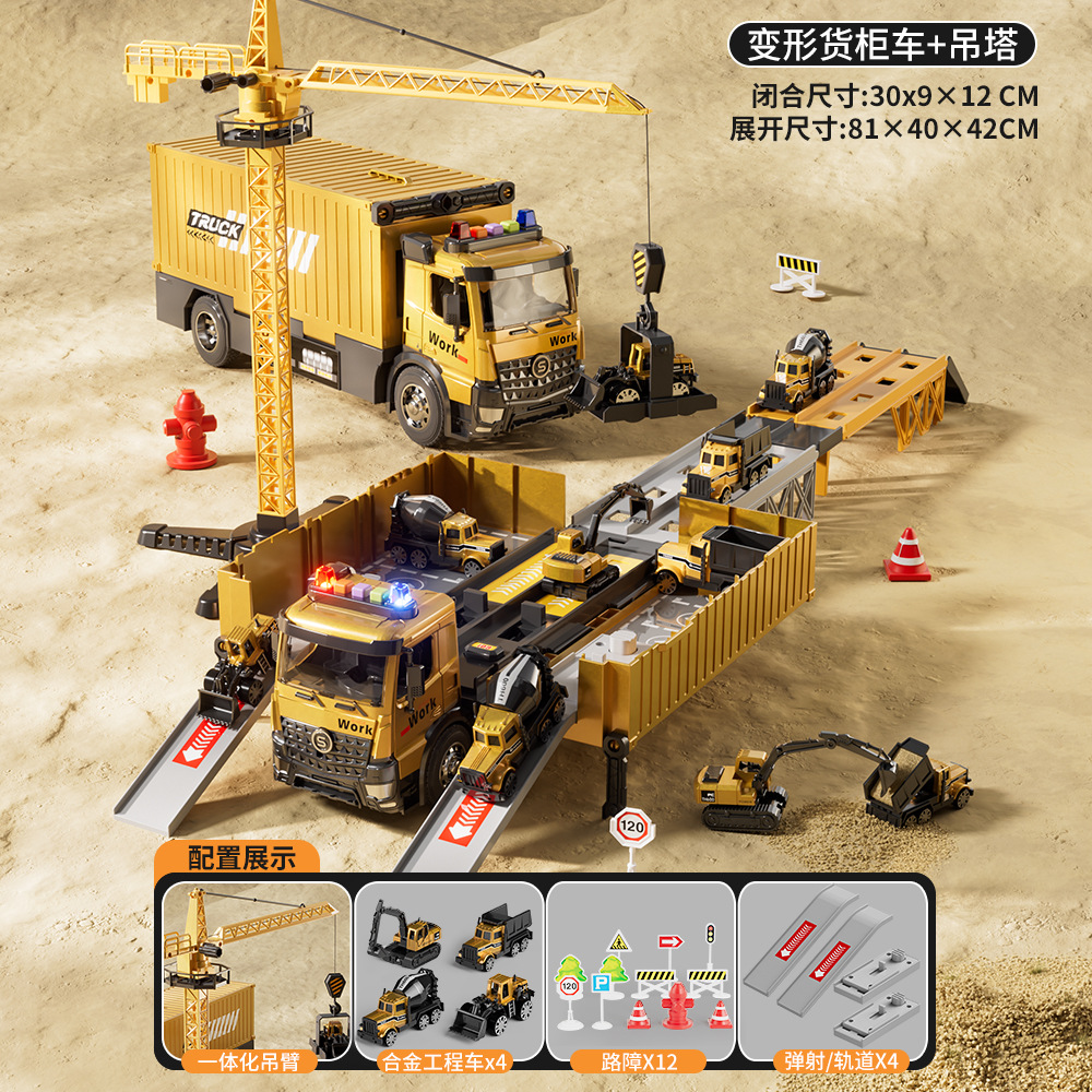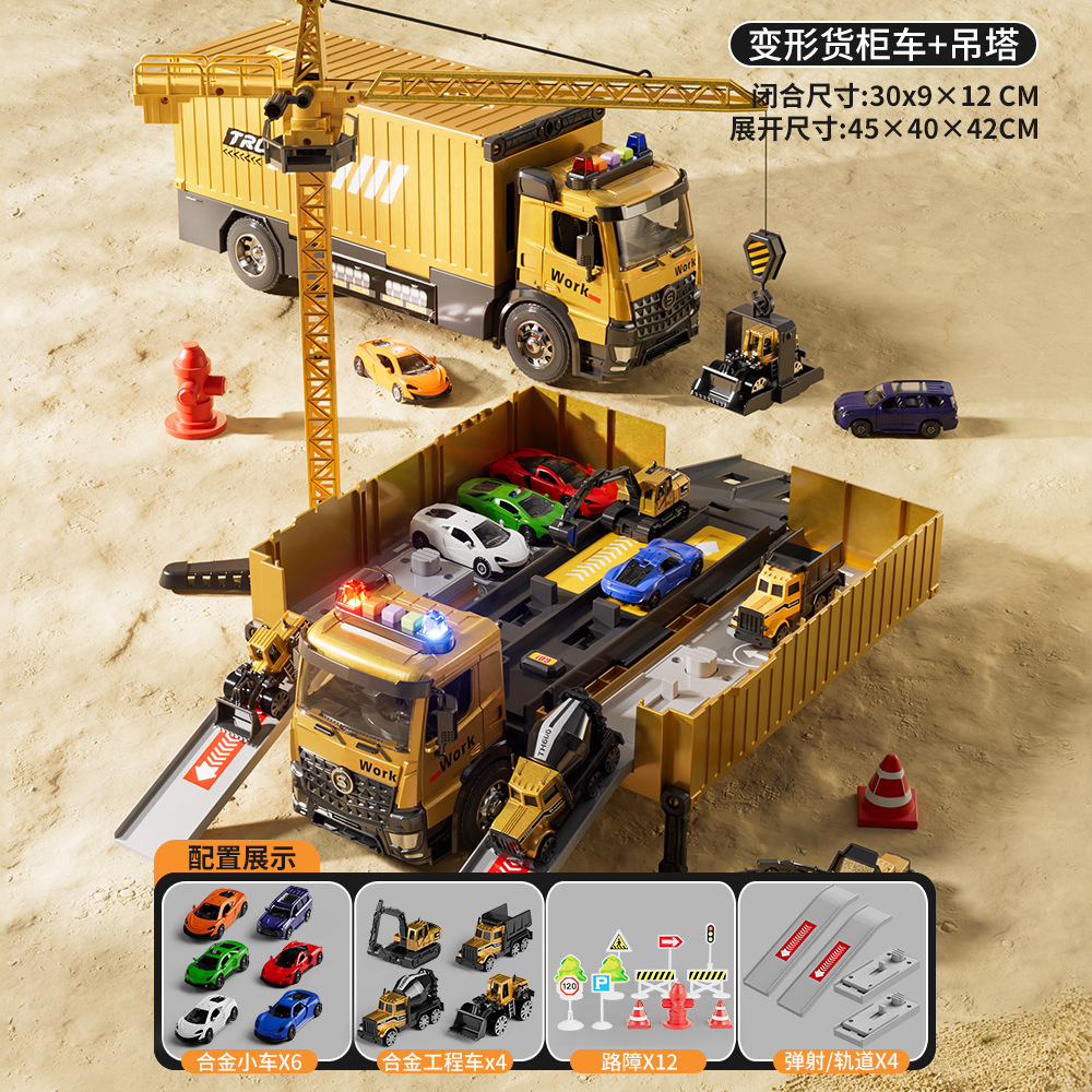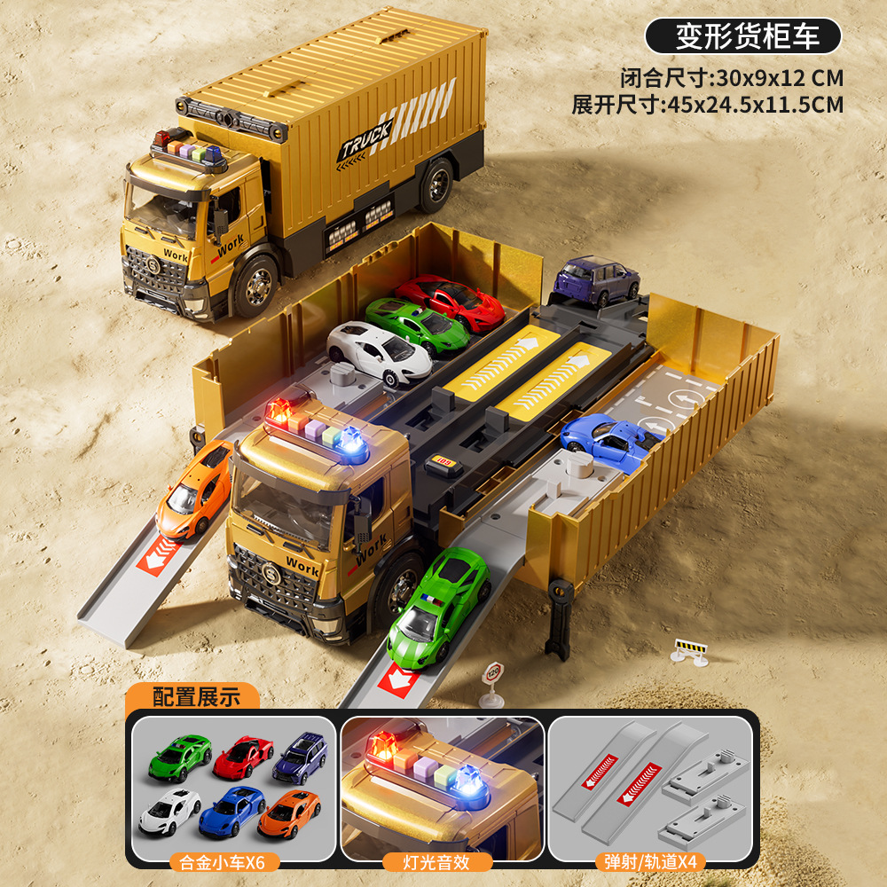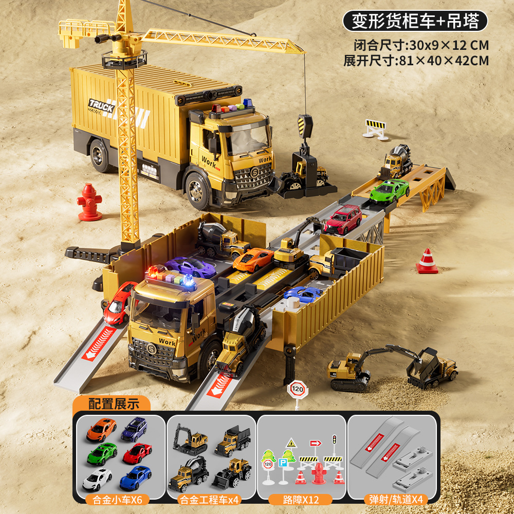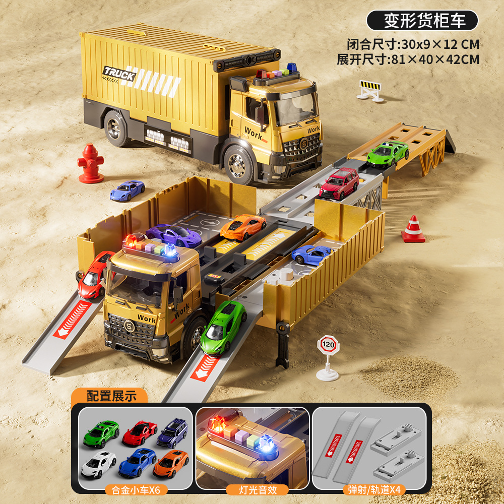 전기 변형 투석기 트랙 레이싱 어린이 트럭 슬라이딩 주차 합금 자동차 소년 장난감스토어 가기