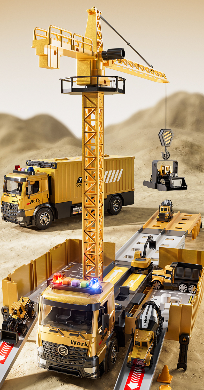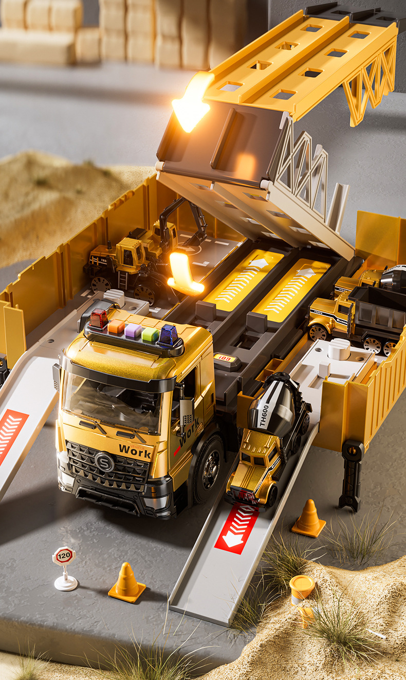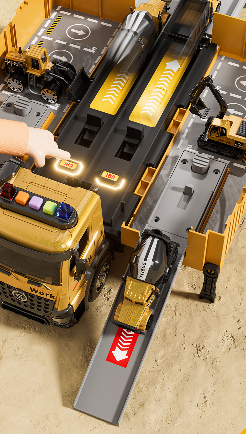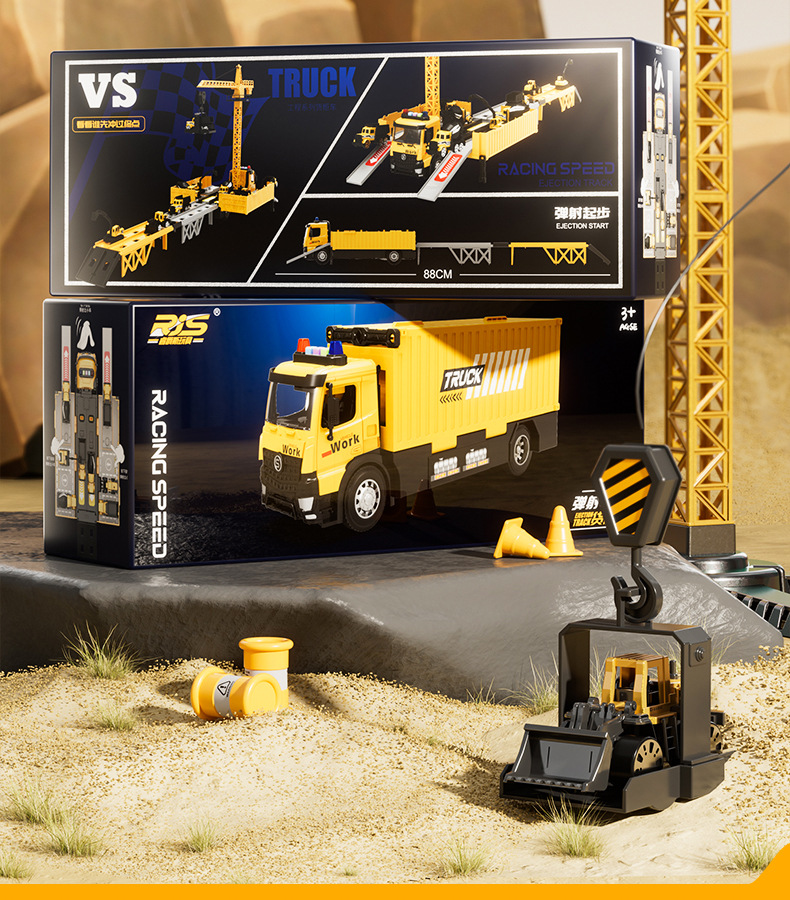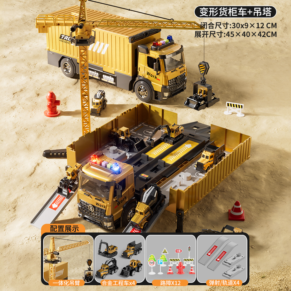 전기 변형 투석기 트랙 레이싱 어린이 트럭 슬라이딩 주차 합금 자동차 소년 장난감스토어 가기