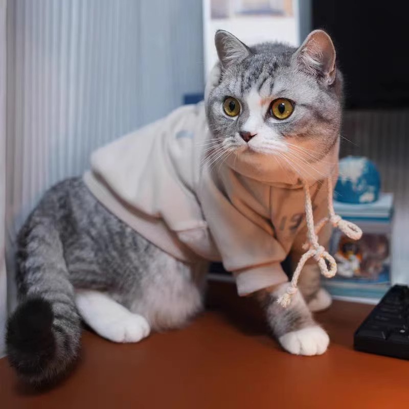 애완 동물 옷 가을과 겨울 옷 고양이 외국 스타일의 따뜻한 기모 후드 스웨터 인형 고양이 고양이 고양이 고양이 옷스토어 가기