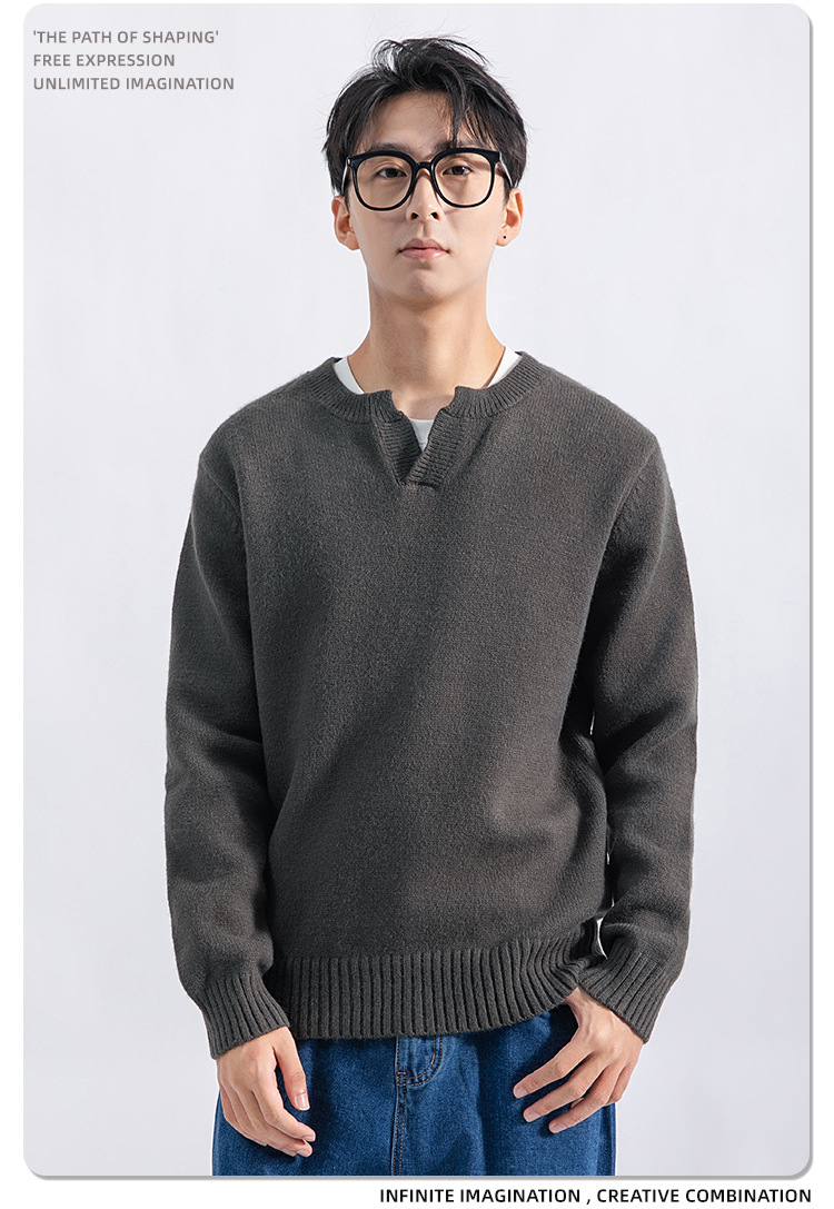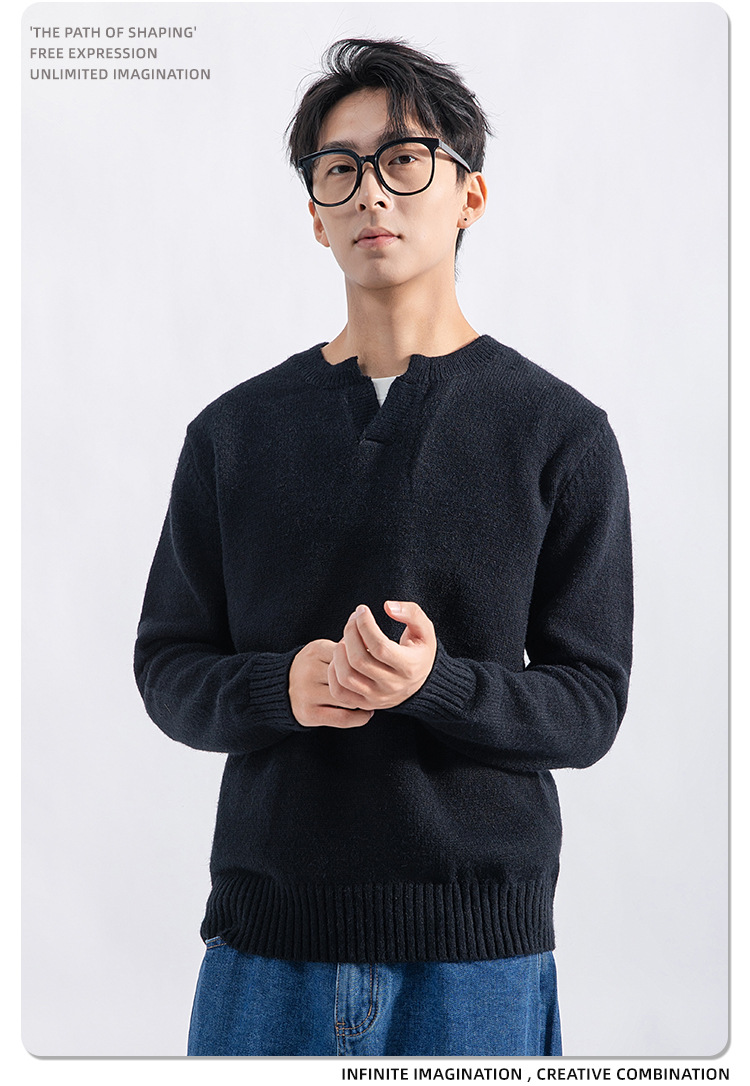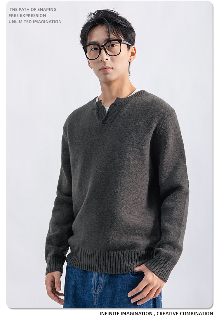 남성용 겨울 니트 스웨터, 고급스러운 느낌의 브이넥 캐주얼 긴팔 니트웨어스토어 가기
