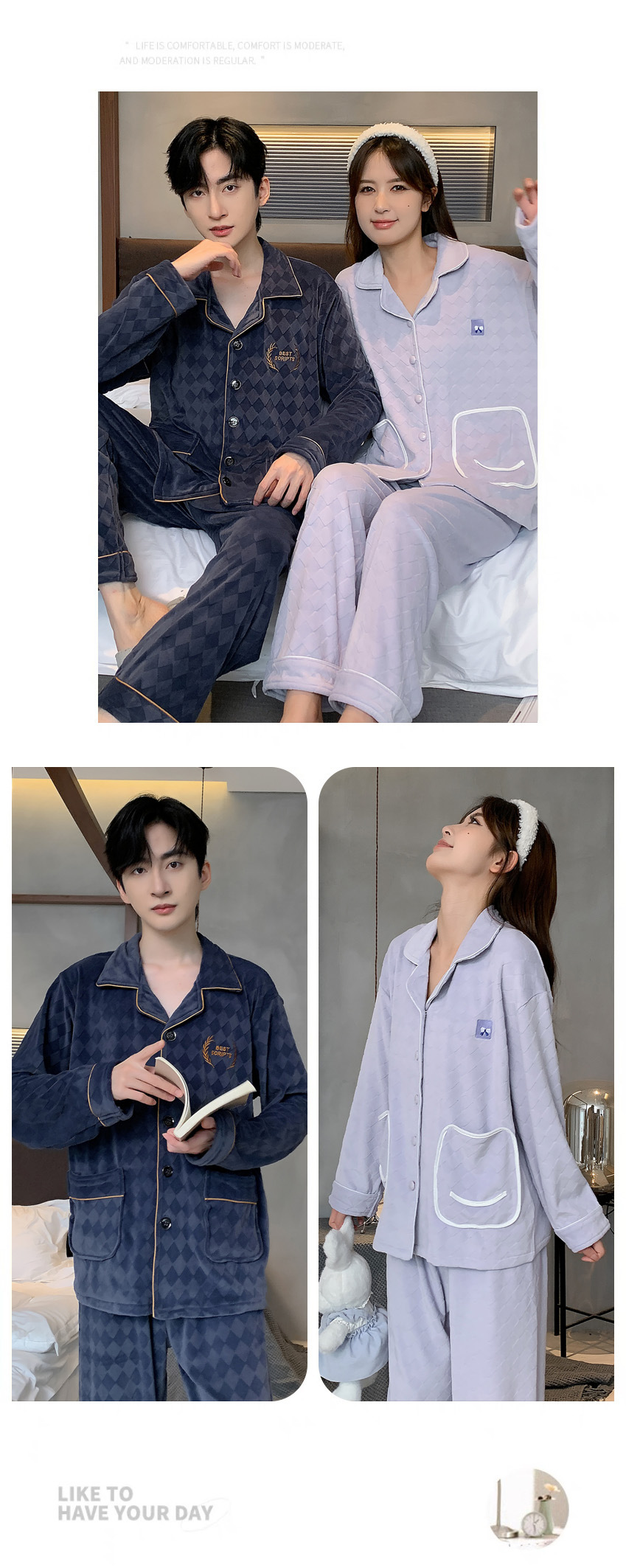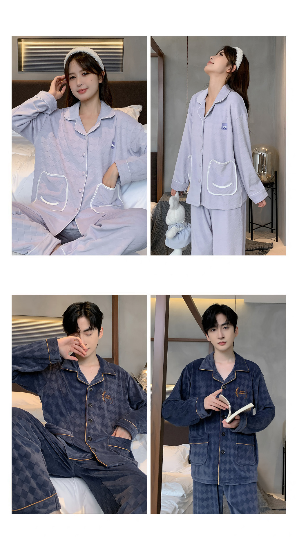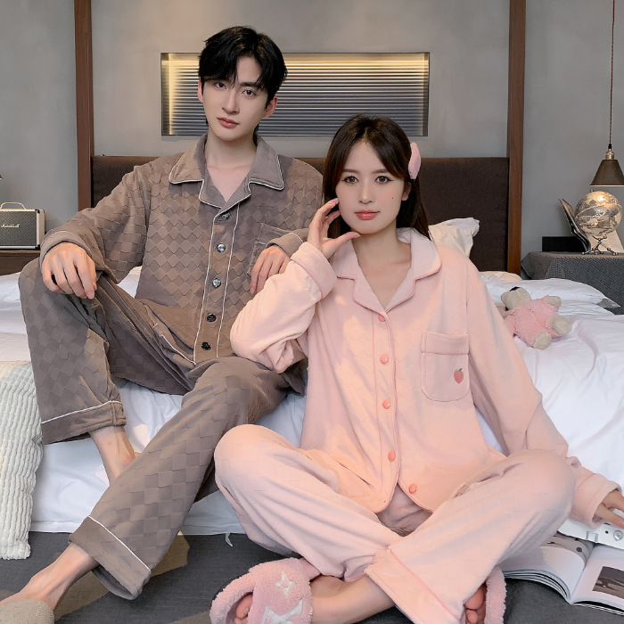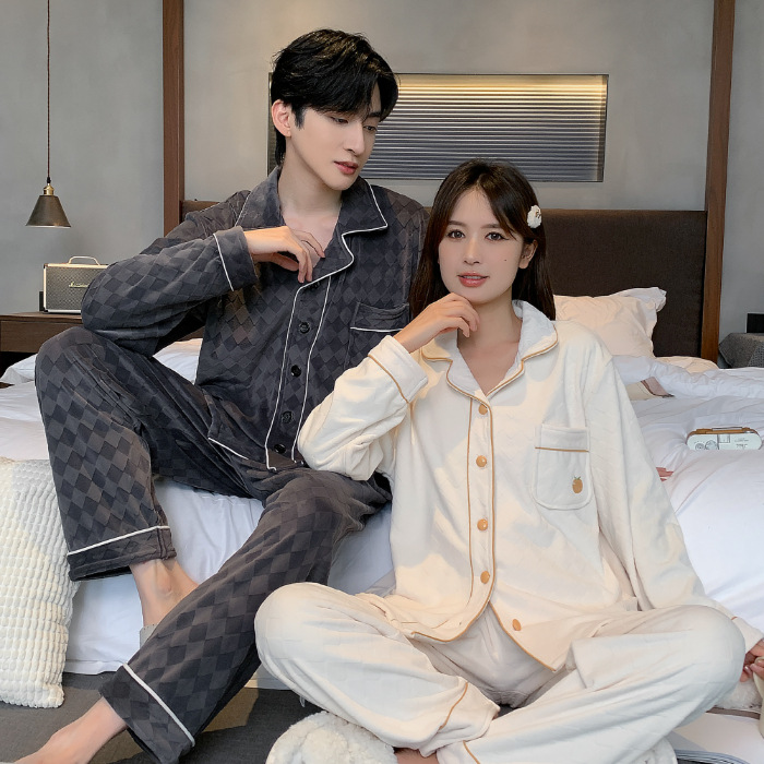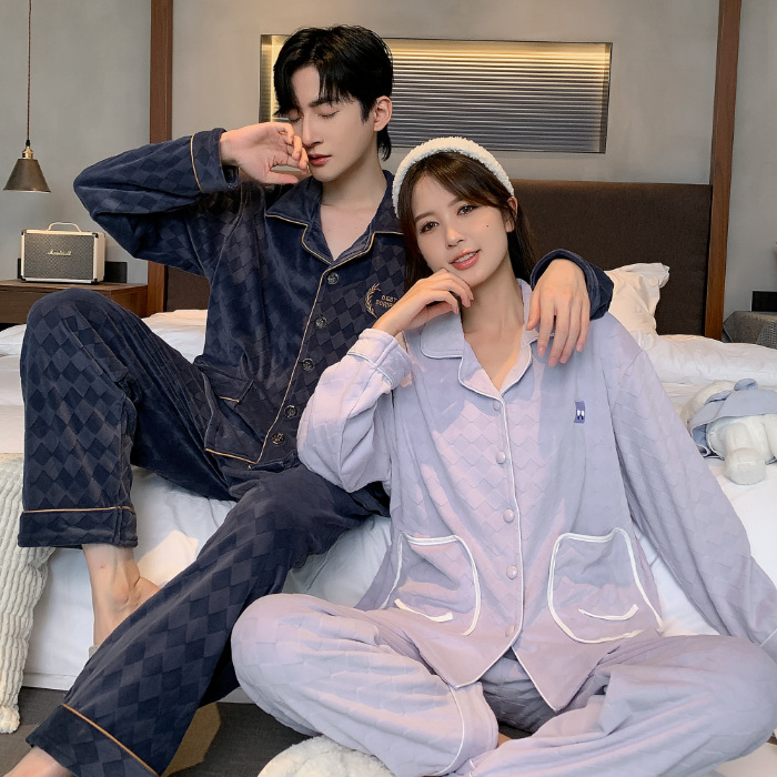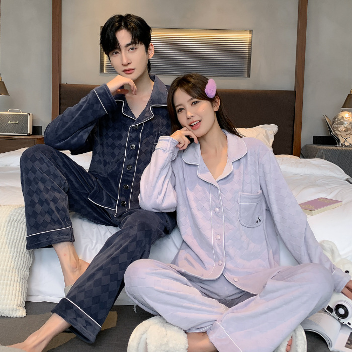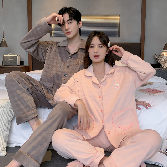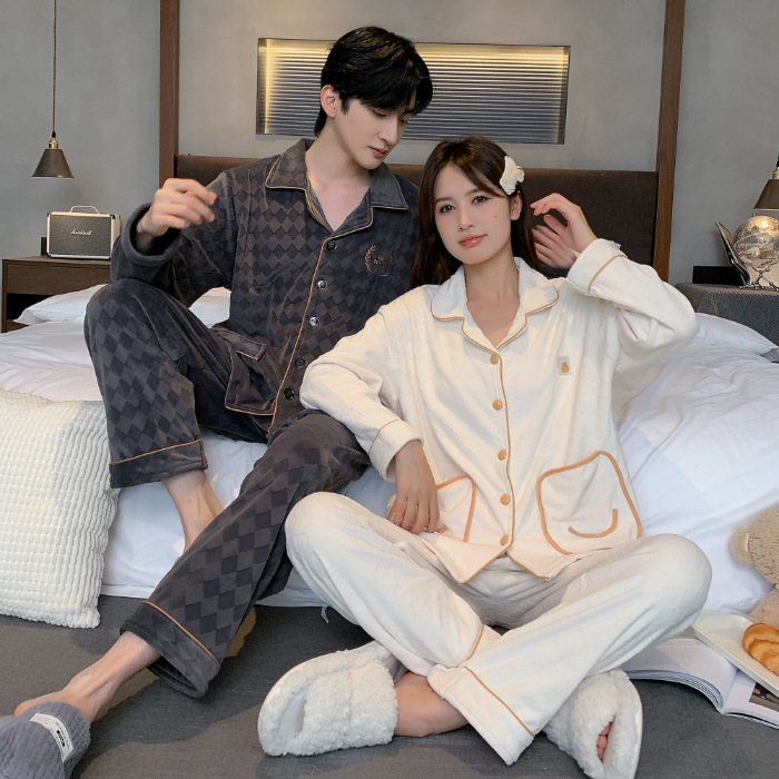 커플 잠옷 여성의 가을과 겨울 섬 벨벳 두꺼운 따뜻한 산호 벨벳 그물 레드 스타일 간단한 카디건 홈 의류 세트스토어 가기