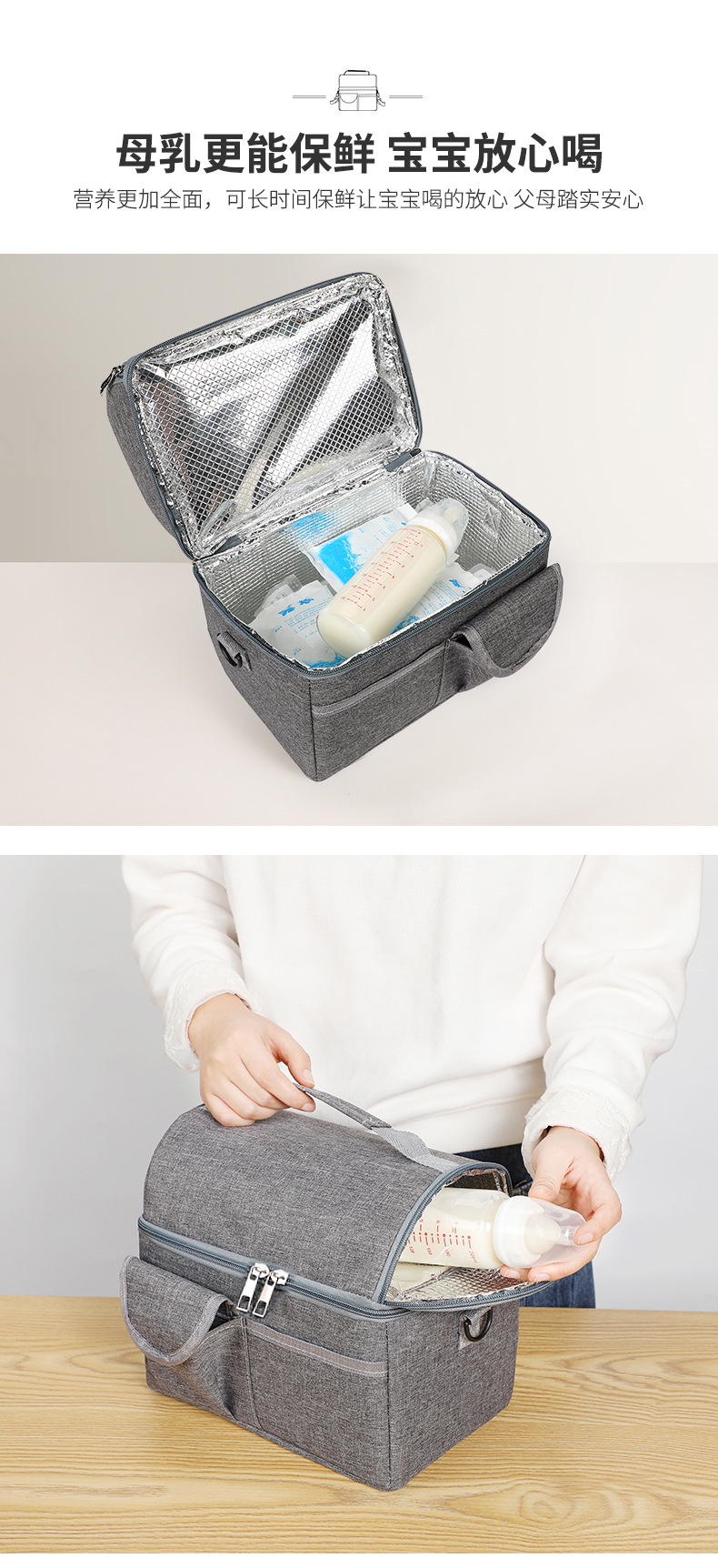 방수 옥스포드 천 유방 보존 가방 대형 더블 레이어 알루미늄 호일 백 우유 가방 휴대용 절연 도시락 가방