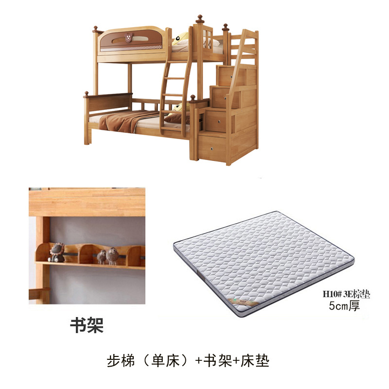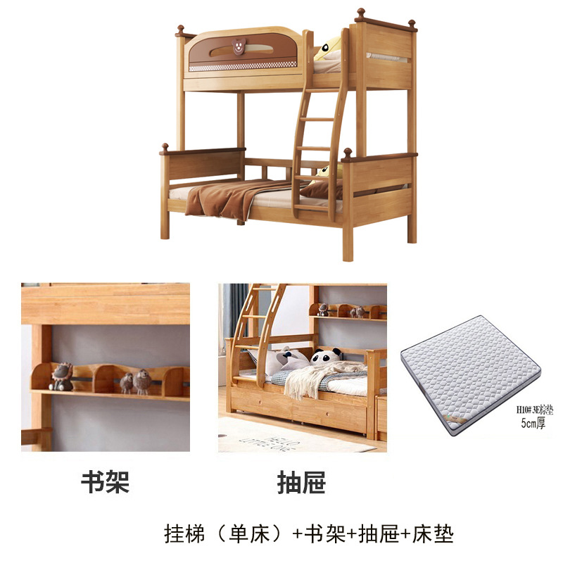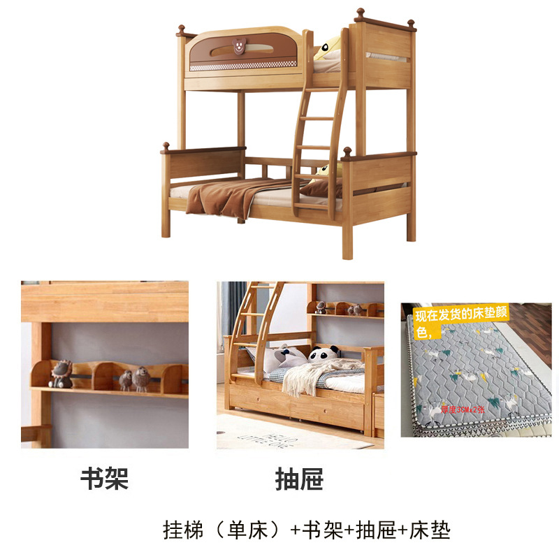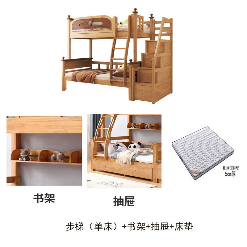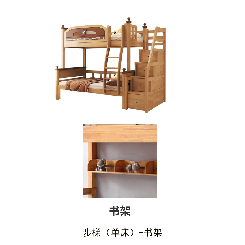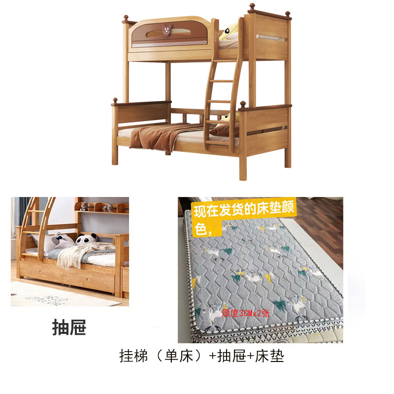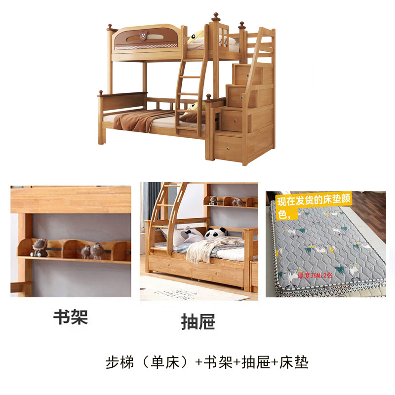 풀 솔리드 우드 벙크 침대 높고 낮은 침대 어린이 침대 로그 어린이 침대 더블 데크 십대 다기능 작은 아파트 오크스토어 가기