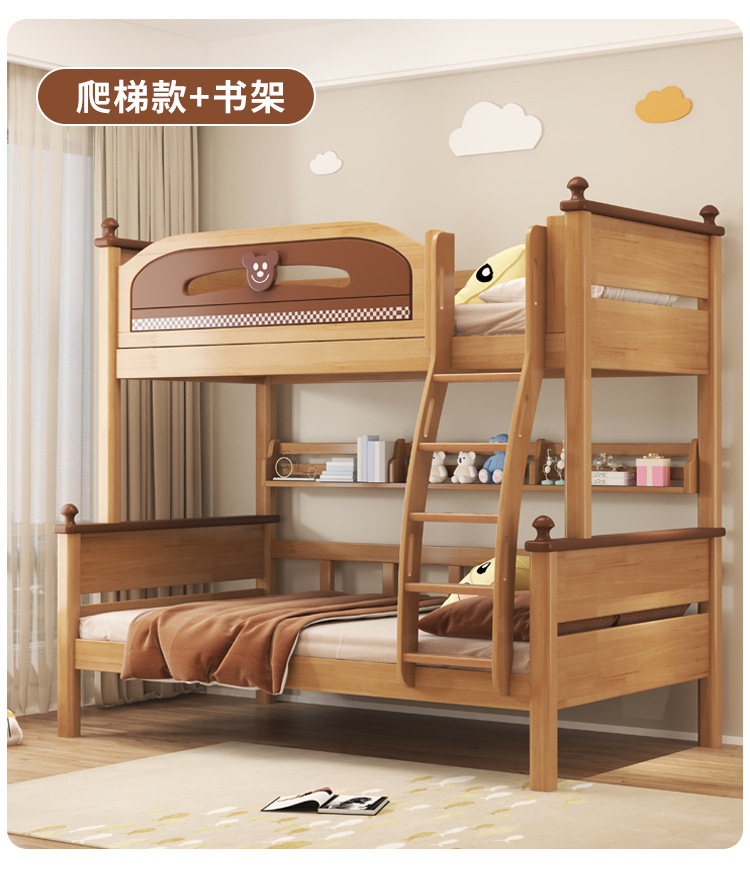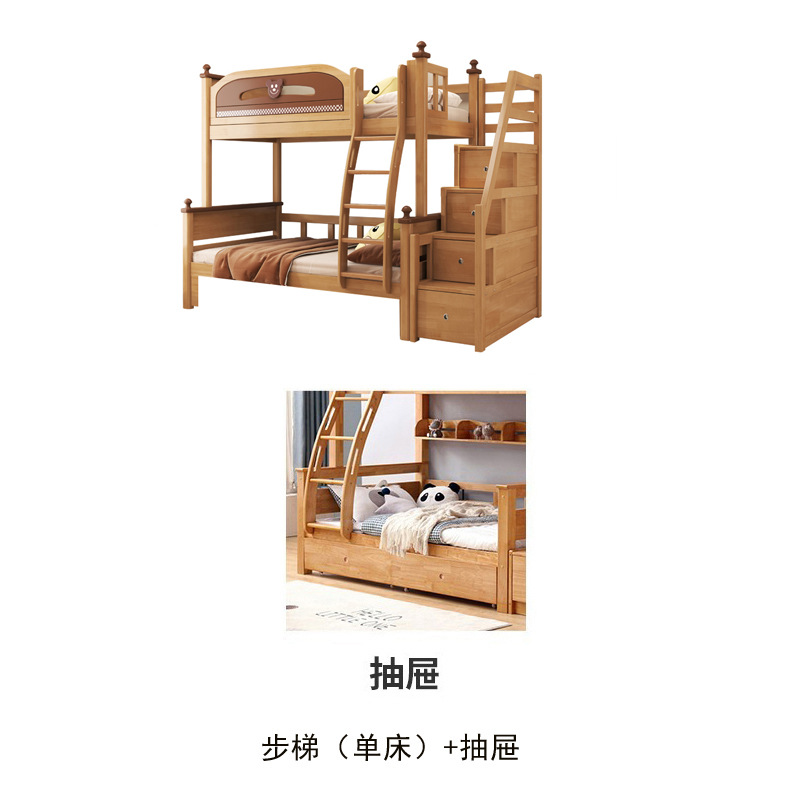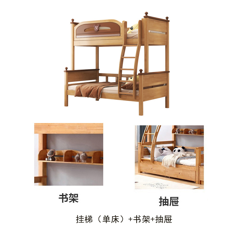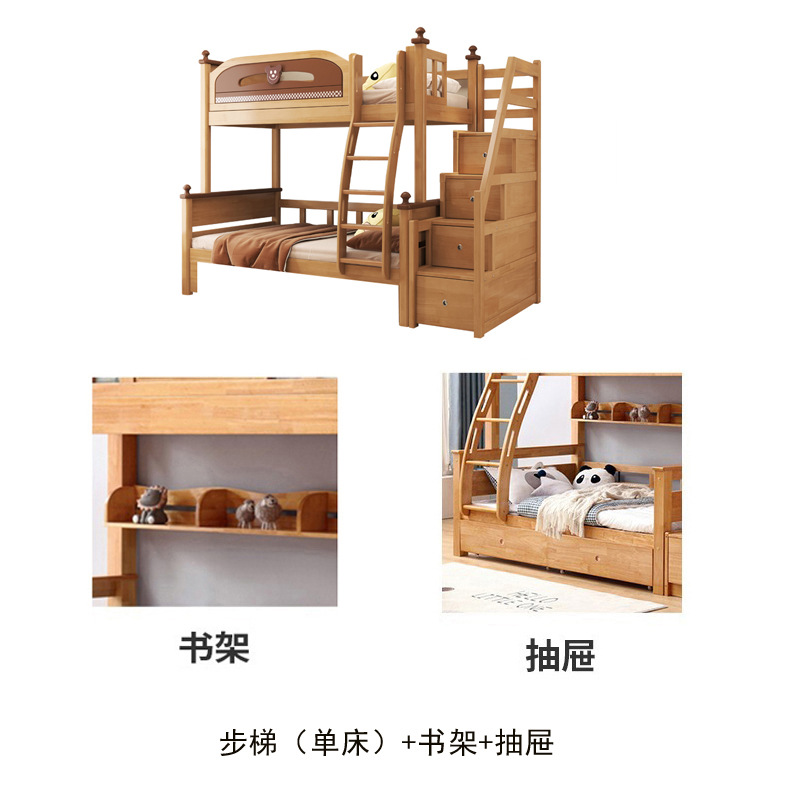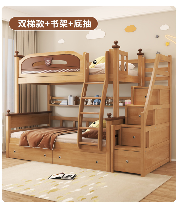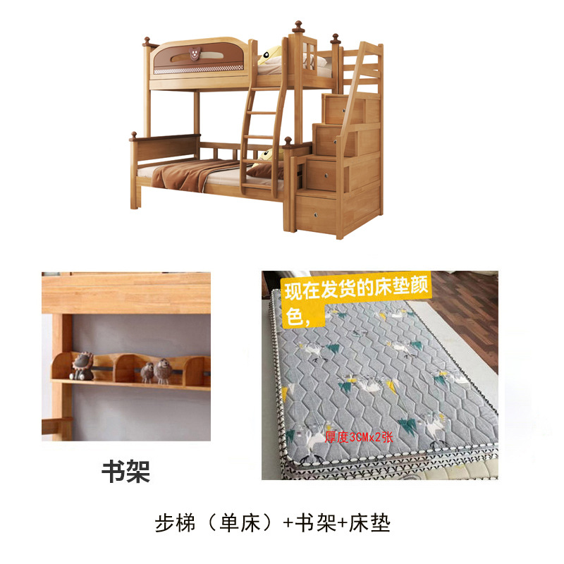 풀 솔리드 우드 벙크 침대 높고 낮은 침대 어린이 침대 로그 어린이 침대 더블 데크 십대 다기능 작은 아파트 오크스토어 가기
