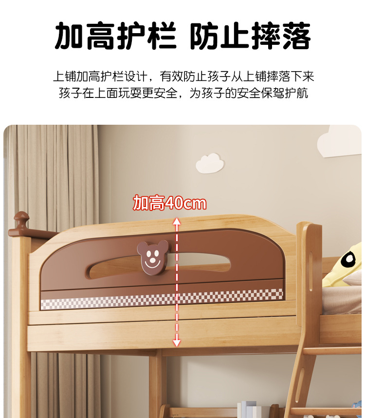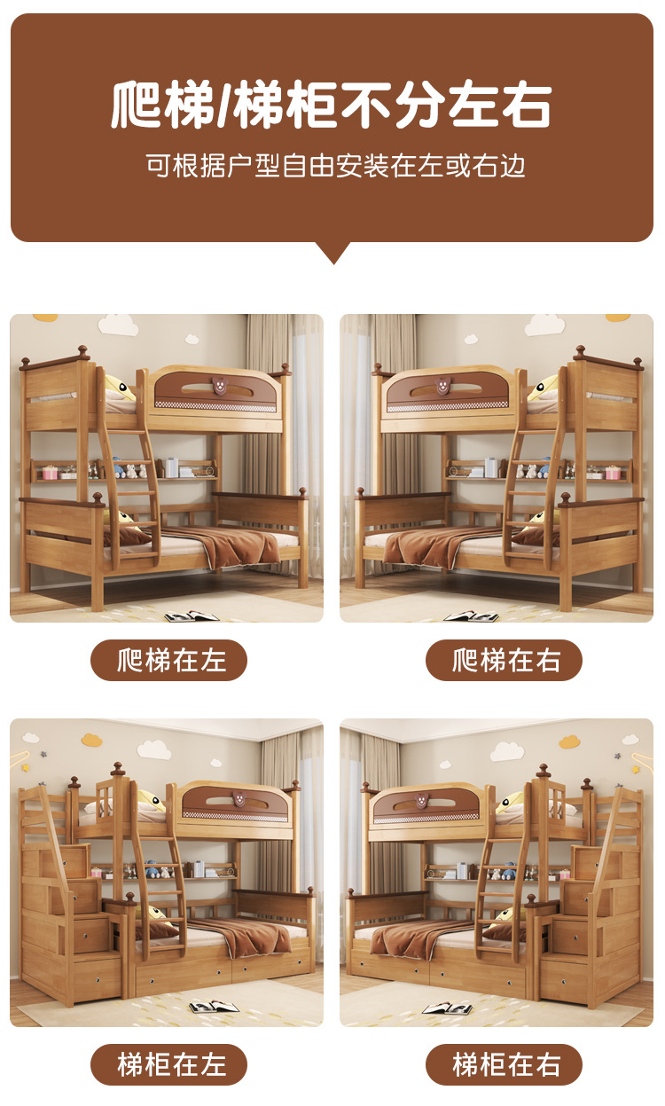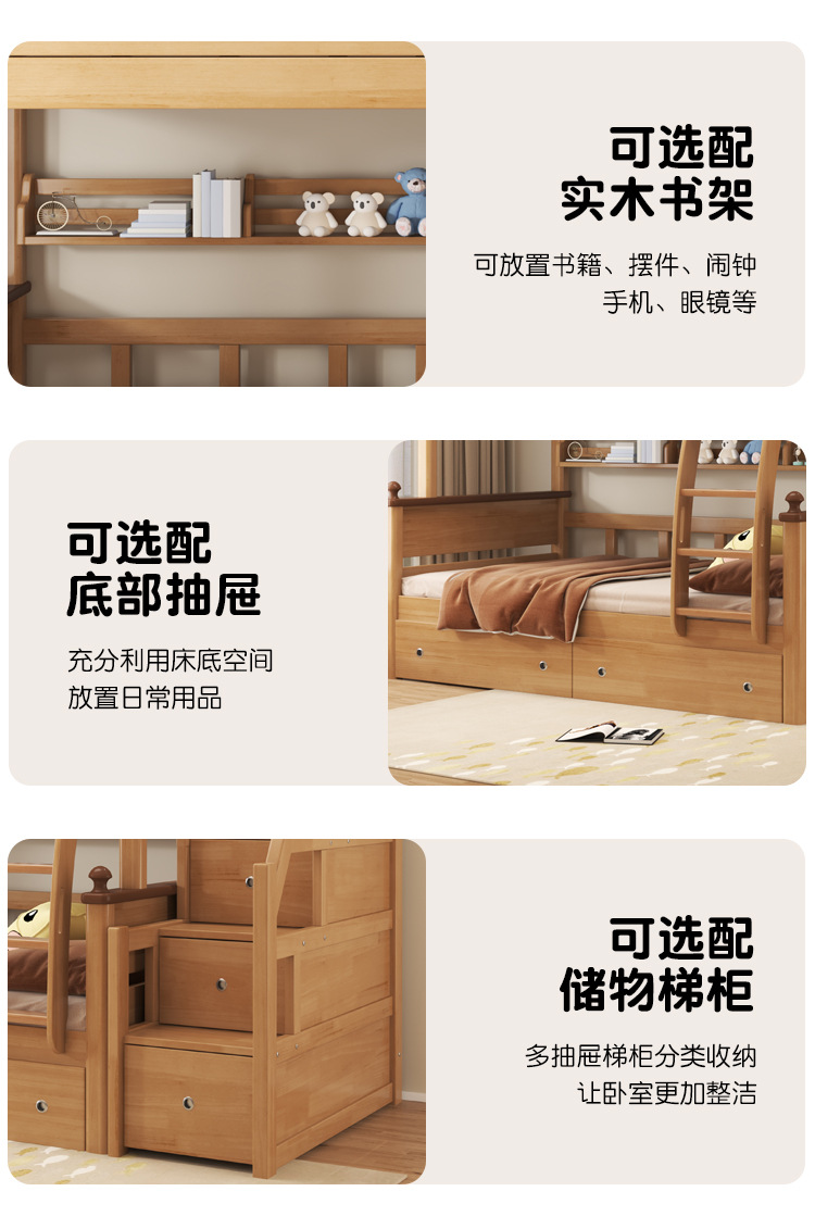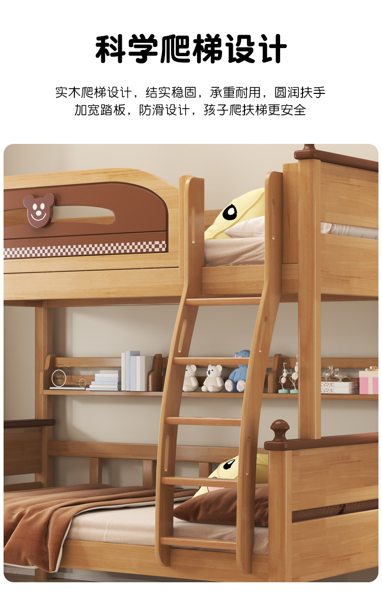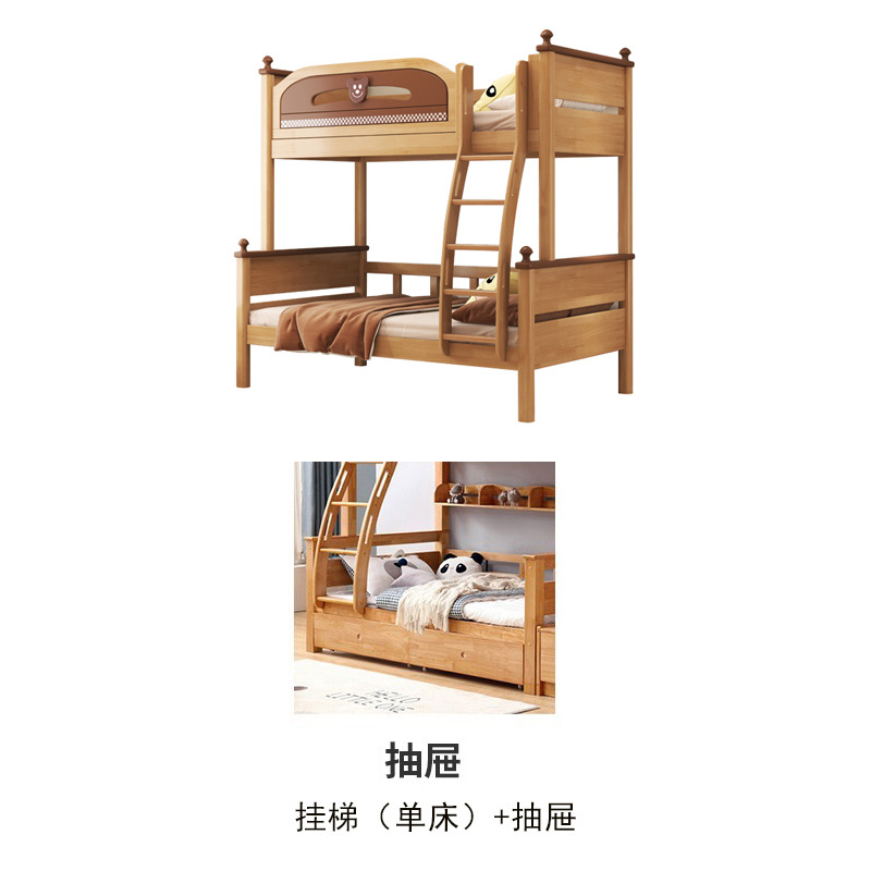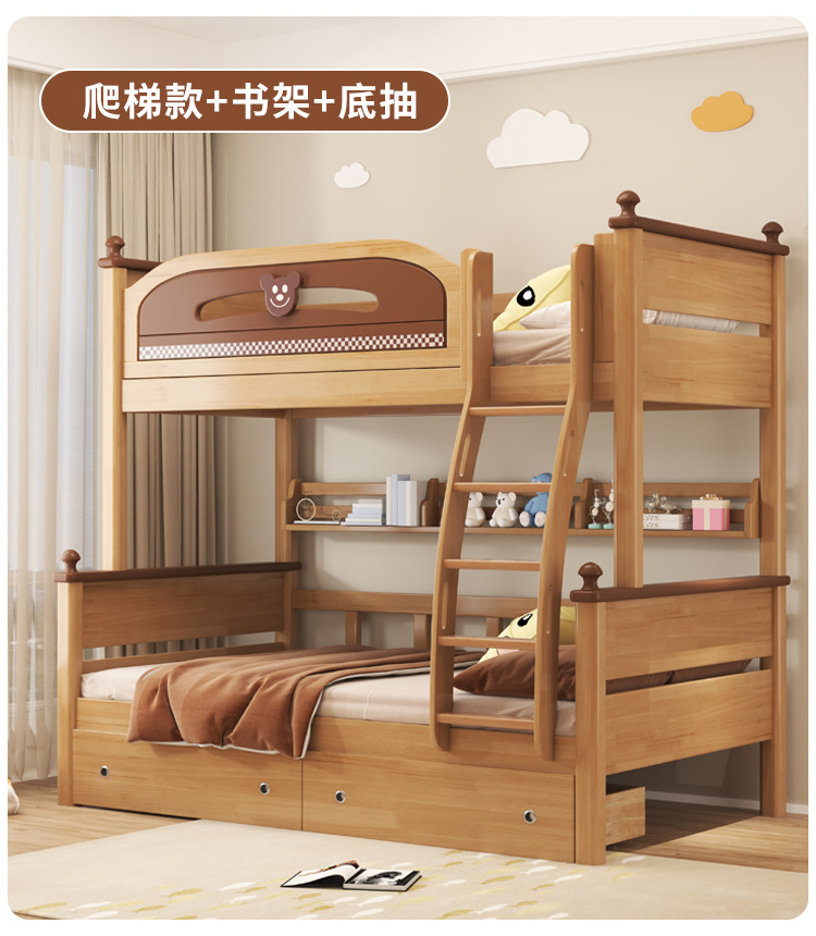 풀 솔리드 우드 벙크 침대 높고 낮은 침대 어린이 침대 로그 어린이 침대 더블 데크 십대 다기능 작은 아파트 오크스토어 가기