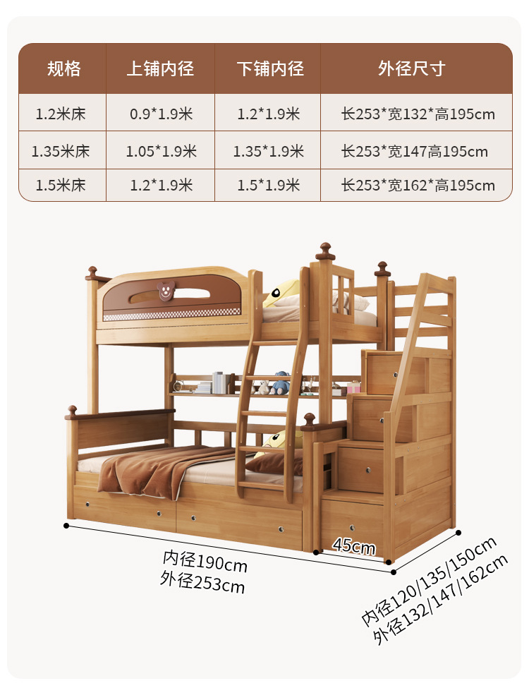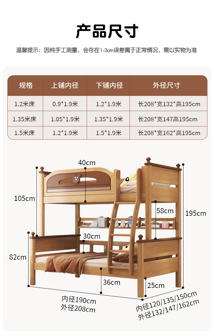 • 하부 침대 1.35m 상부 침대 1.05m X 1.9m