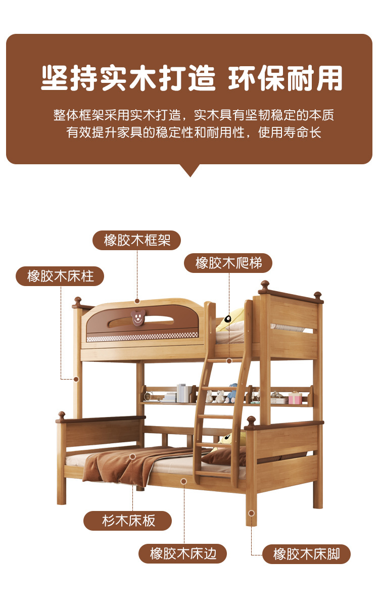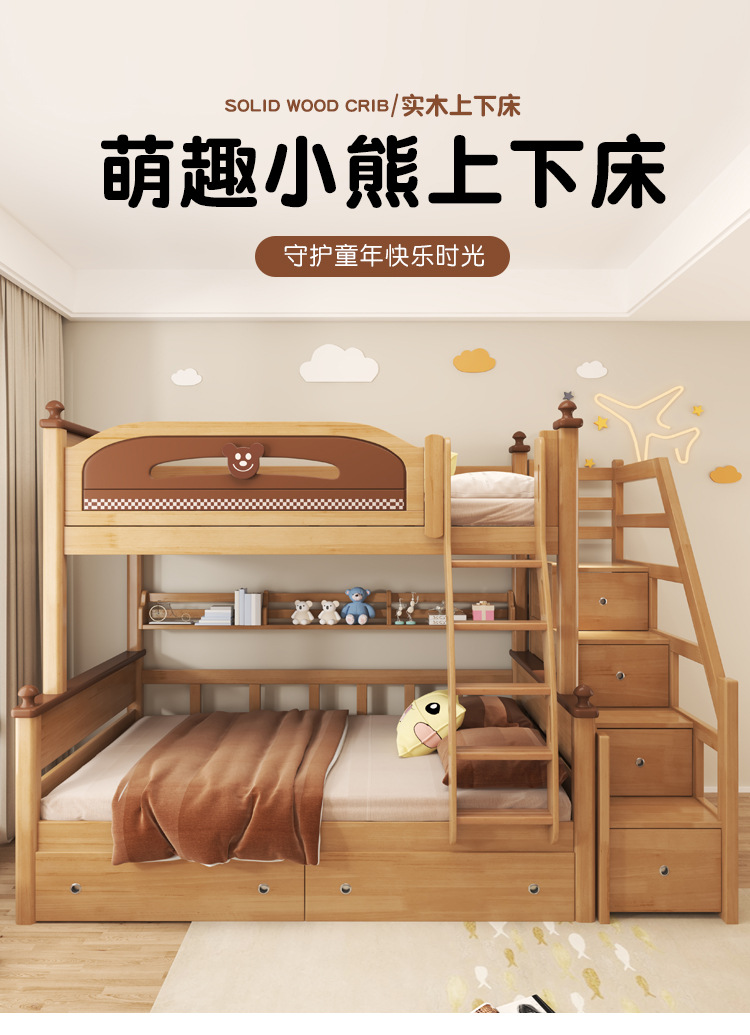 풀 솔리드 우드 벙크 침대 높고 낮은 침대 어린이 침대 로그 어린이 침대 더블 데크 십대 다기능 작은 아파트 오크