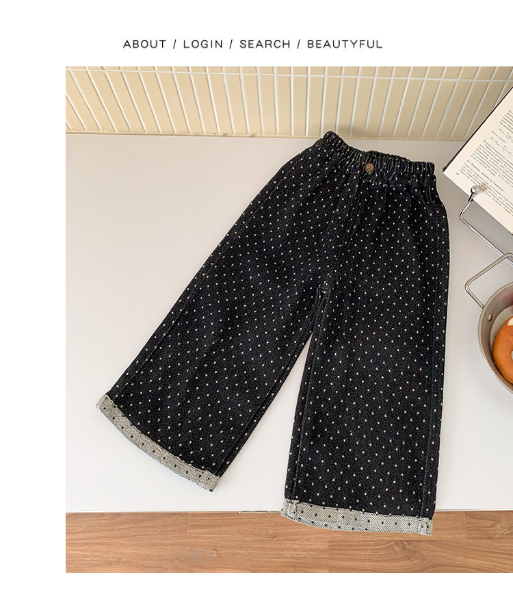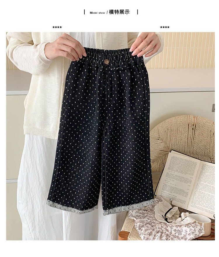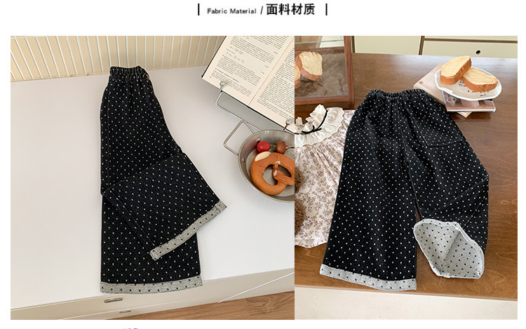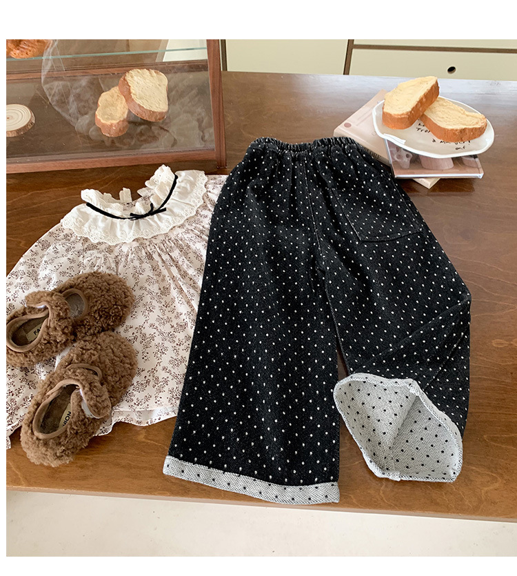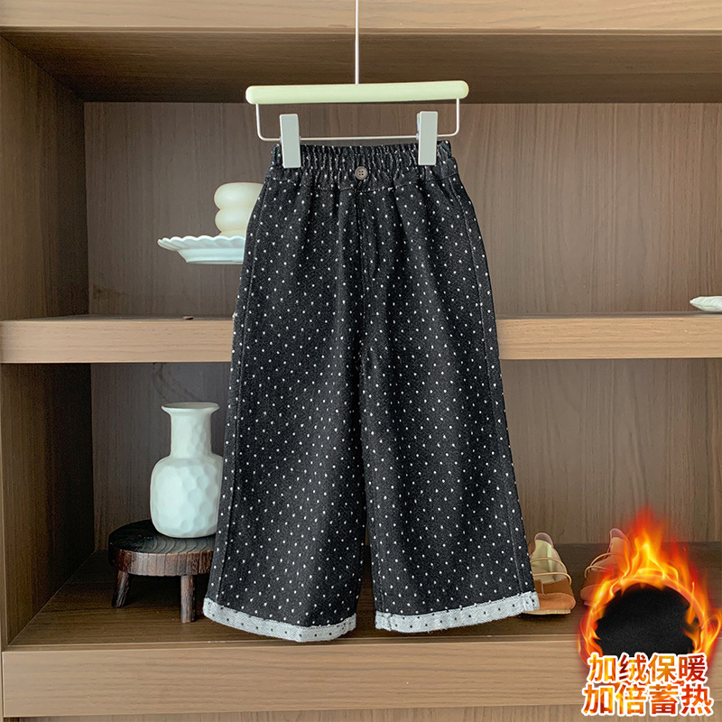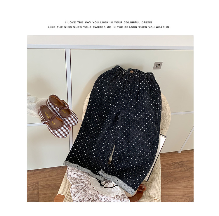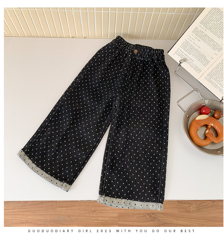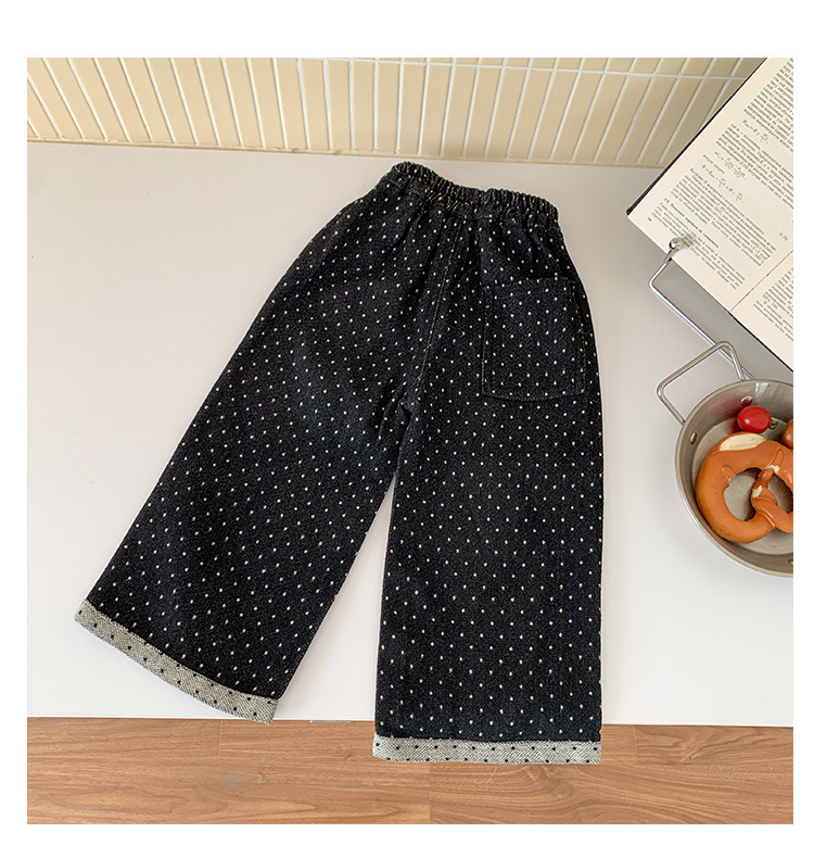 소녀 바지 가을과 겨울 유행 어린이 웨이브 포인트 스트레이트 다리 바지 아기 소녀 블랙 캐주얼 작업복 넓은 다리 바지