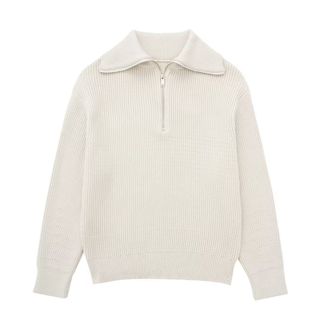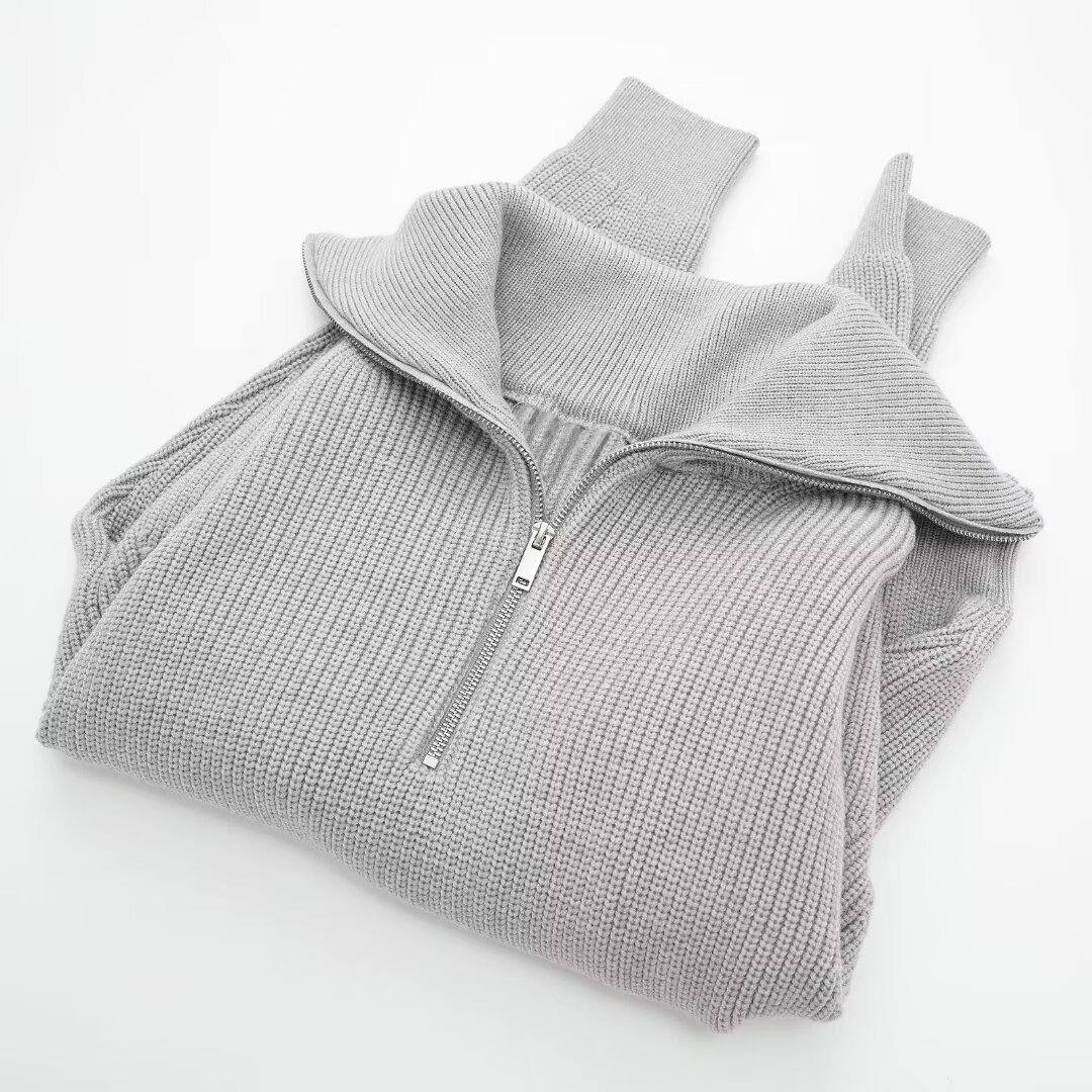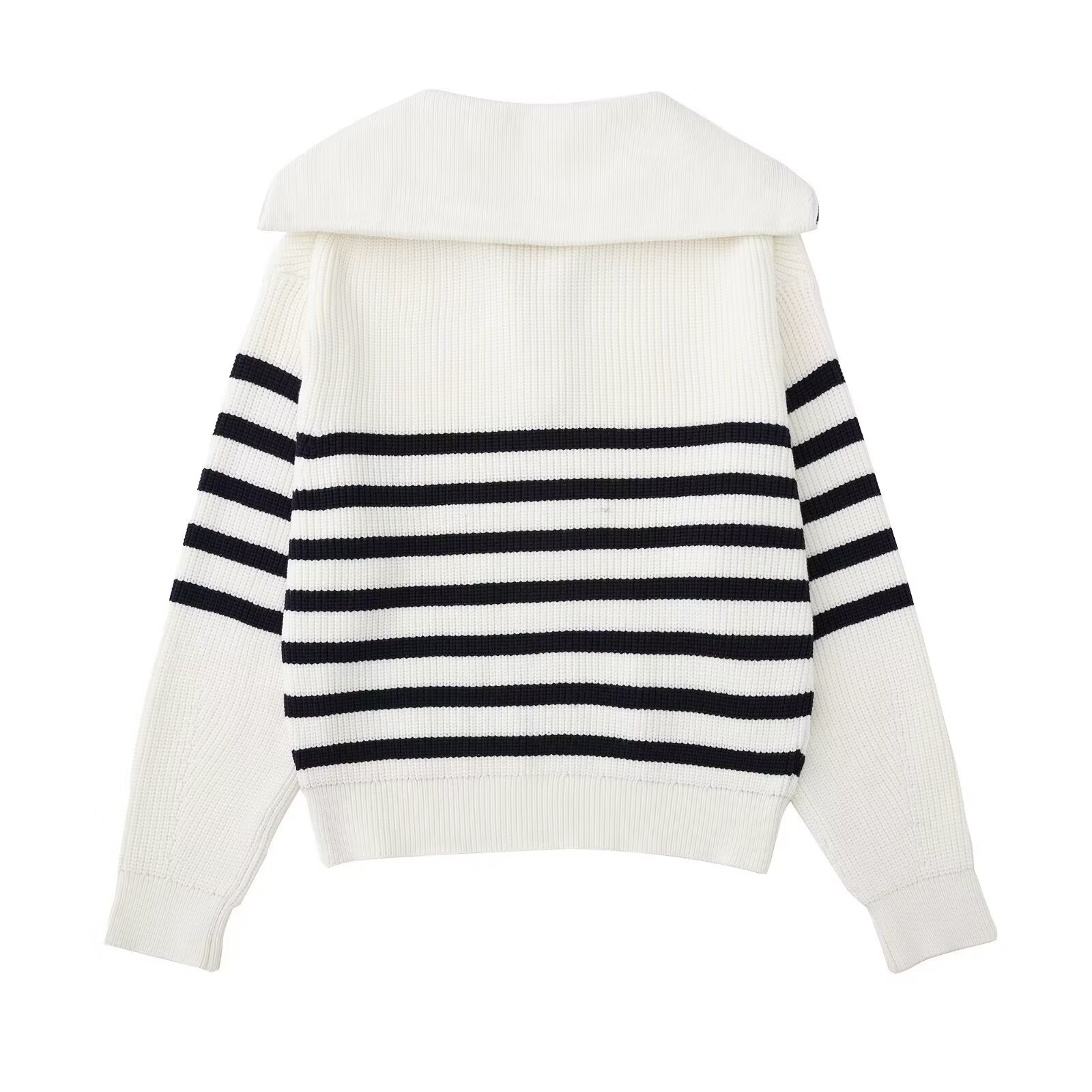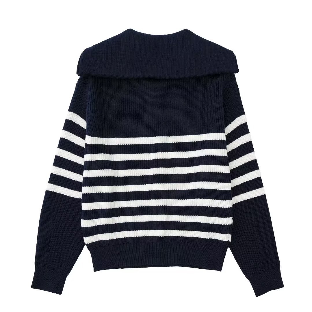 여성 도매 2024 가을과 겨울 새로운 패션 느슨한 반 지퍼 옷깃 느슨한 풀오버 스트라이프 스웨터 스웨터 스웨터스토어 가기
