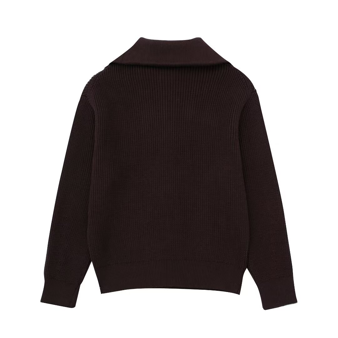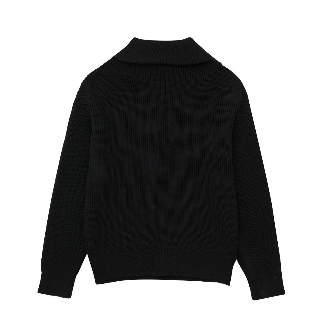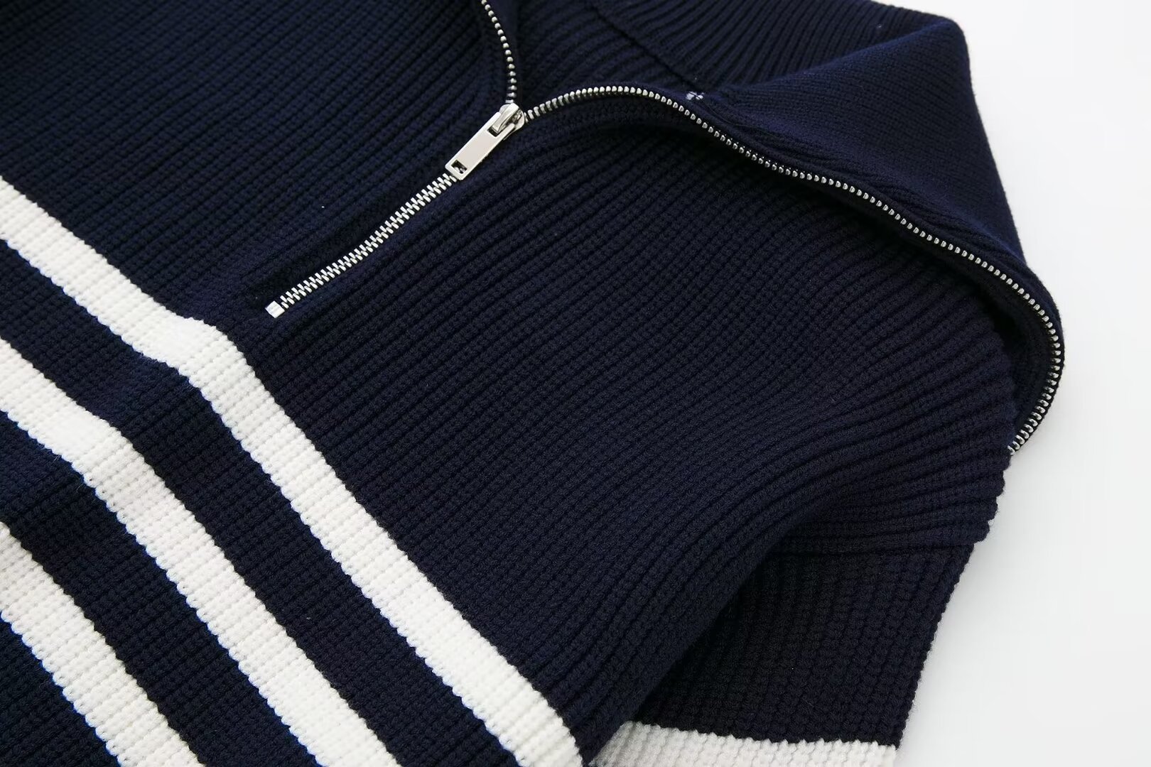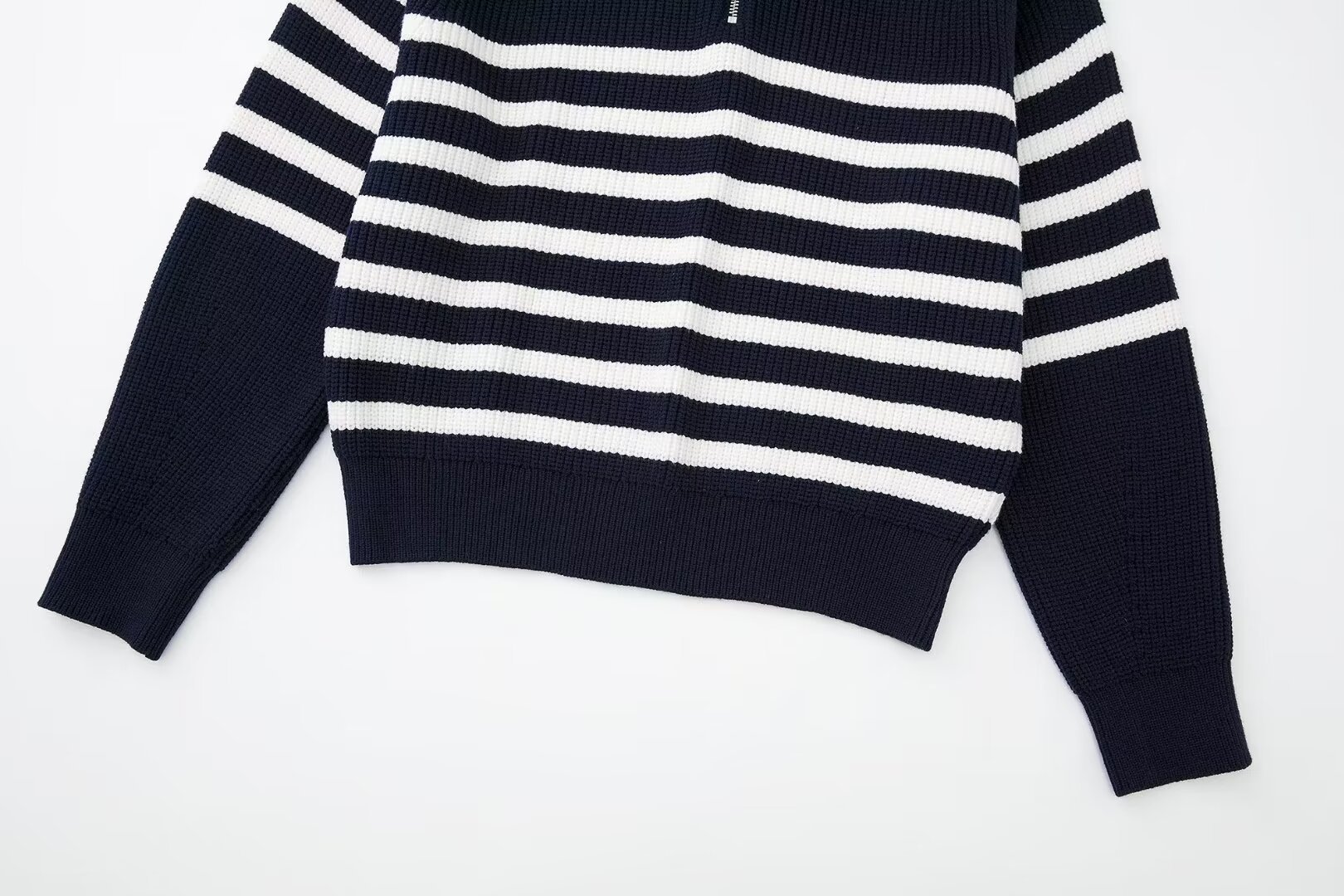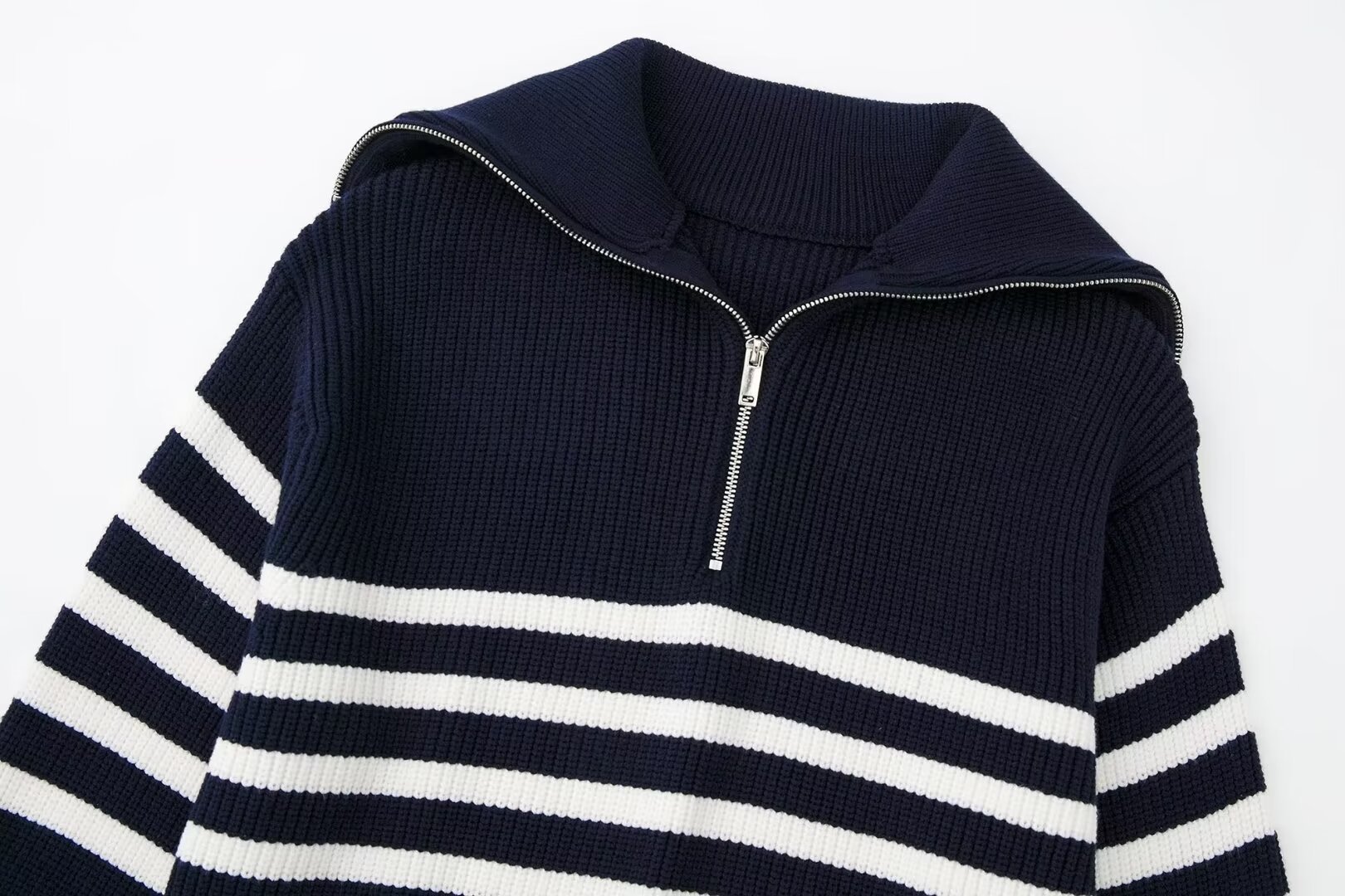 여성 도매 2024 가을과 겨울 새로운 패션 느슨한 반 지퍼 옷깃 느슨한 풀오버 스트라이프 스웨터 스웨터 스웨터스토어 가기