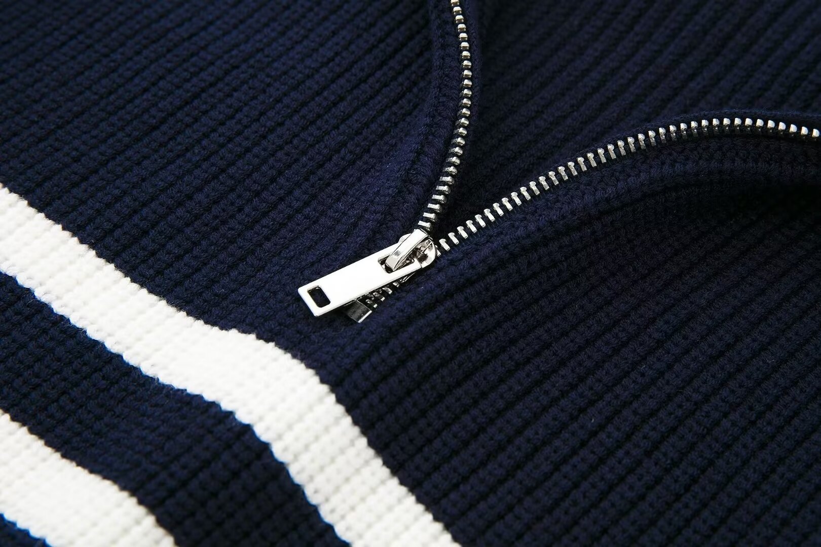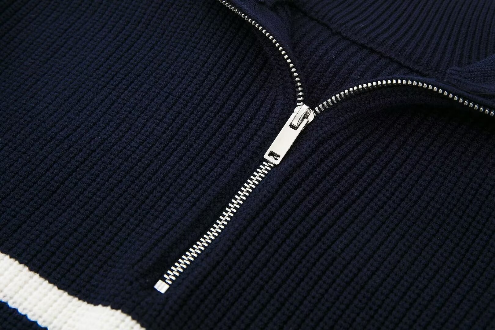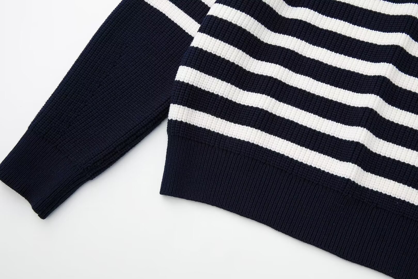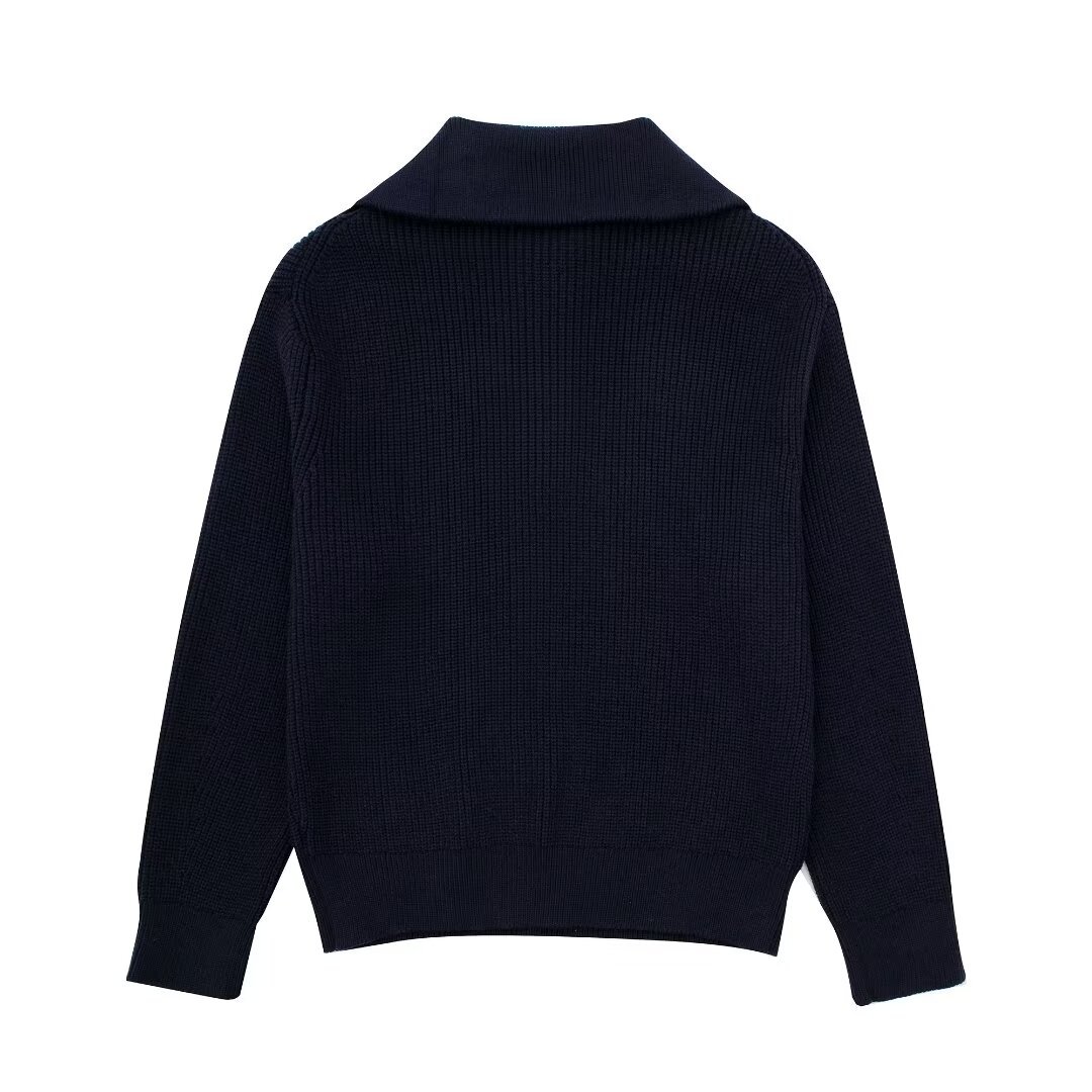 여성 도매 2024 가을과 겨울 새로운 패션 느슨한 반 지퍼 옷깃 느슨한 풀오버 스트라이프 스웨터 스웨터 스웨터스토어 가기