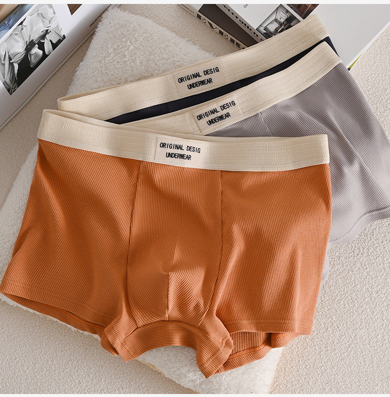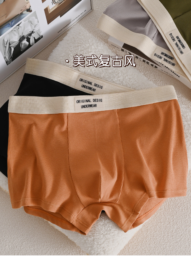 새로운 도착 올 매치 솔리드 컬러 한국 스타일 가을 및 겨울 스레드 면화 남성 속옷 복서 아메리칸 스타일 레트로 트렌디스토어 가기