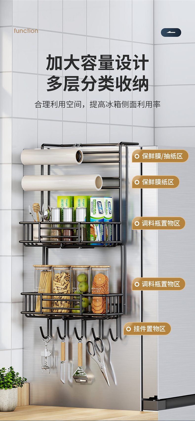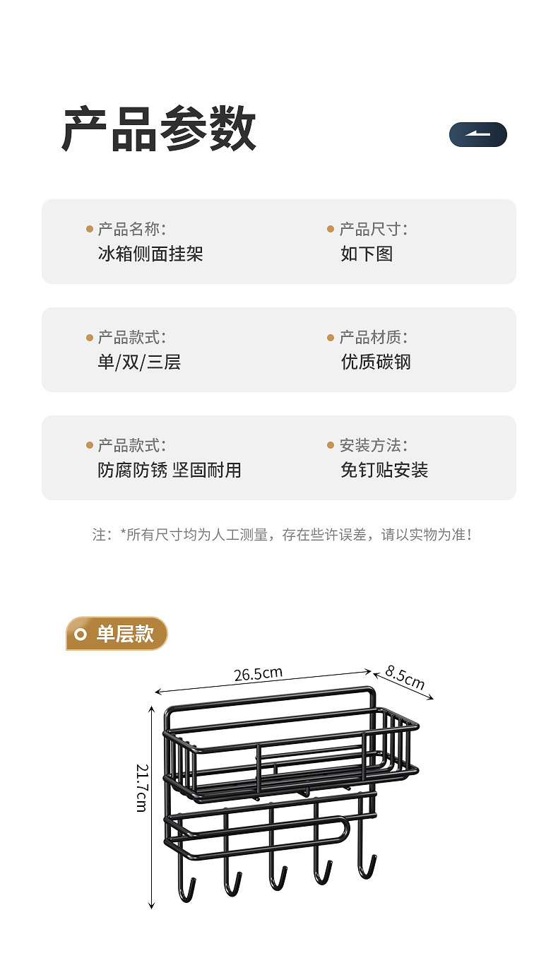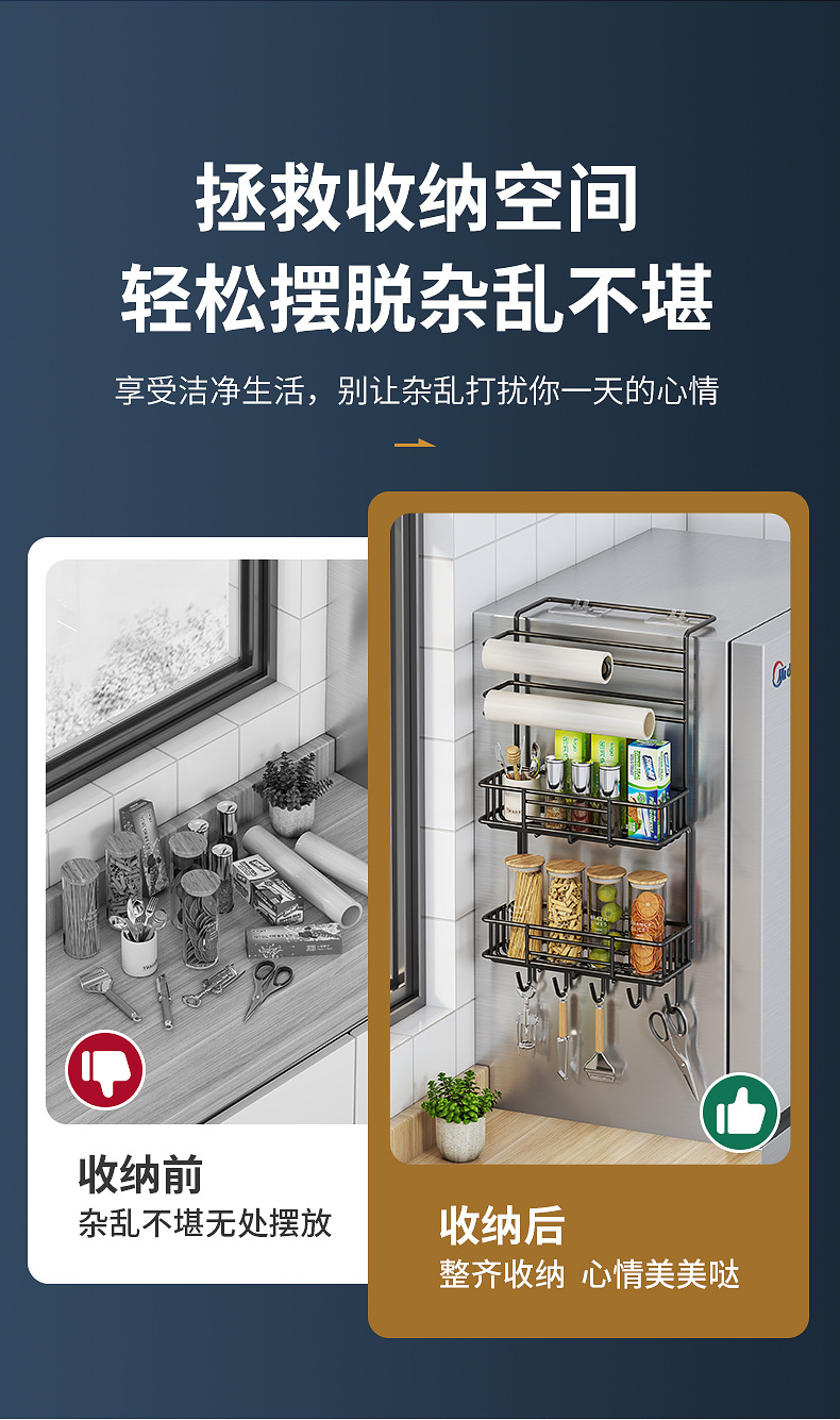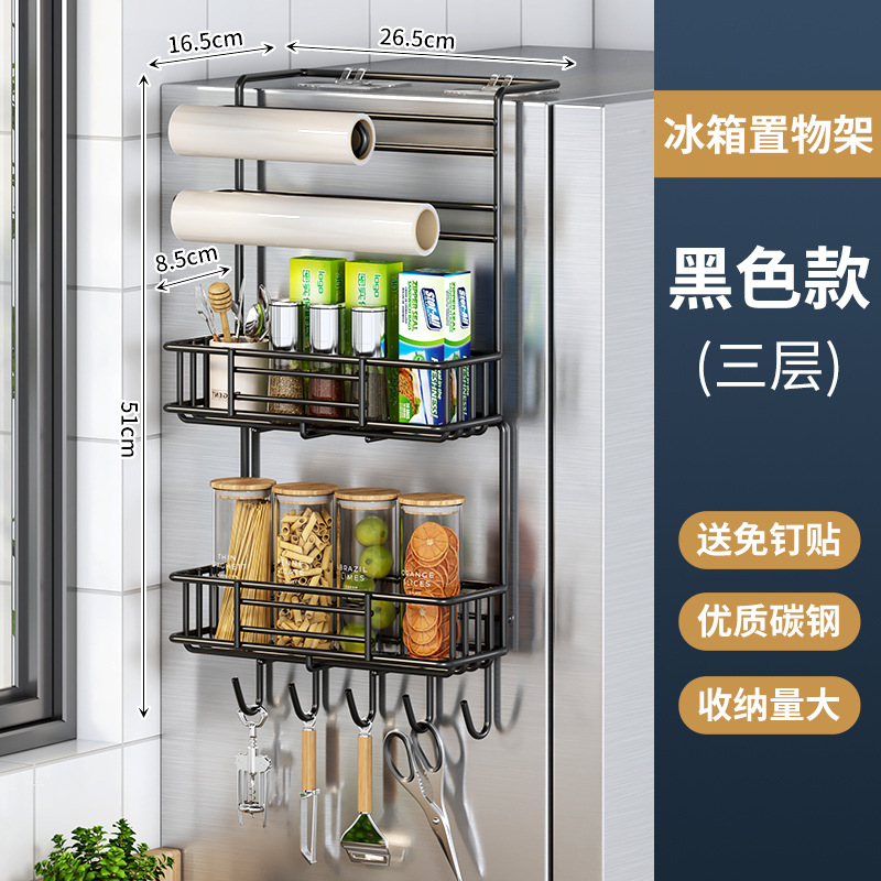 냉장고 저장 랙 사이드 다층 가정용 조미료 벽 장착형 보존 필름 다기능 저장 랙 벽 장착스토어 가기