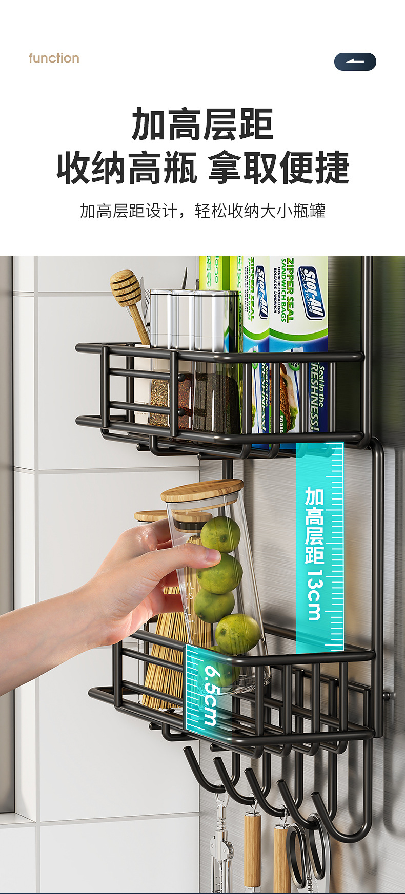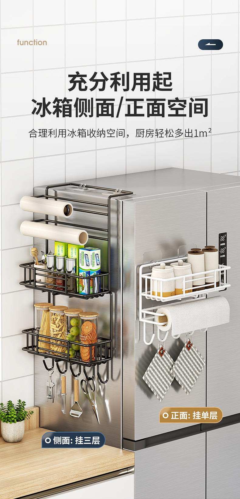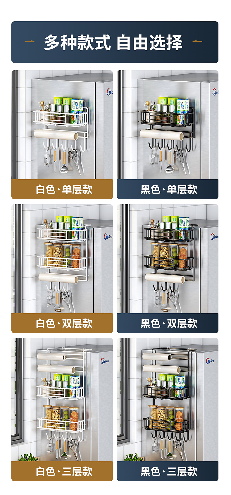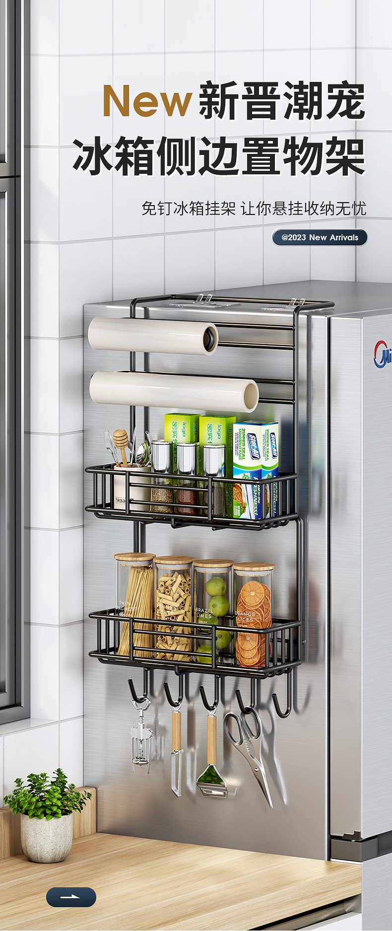 냉장고 저장 랙 사이드 다층 가정용 조미료 벽 장착형 보존 필름 다기능 저장 랙 벽 장착스토어 가기