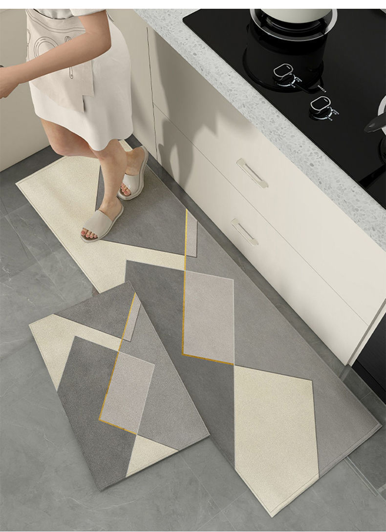국경 간단한 현대 주방 바닥 매트 물 흡수성 오일 흡수성 크리스탈 벨벳 카펫 먼지 방지 간편한 미끄럼 방지 발 매트 재고