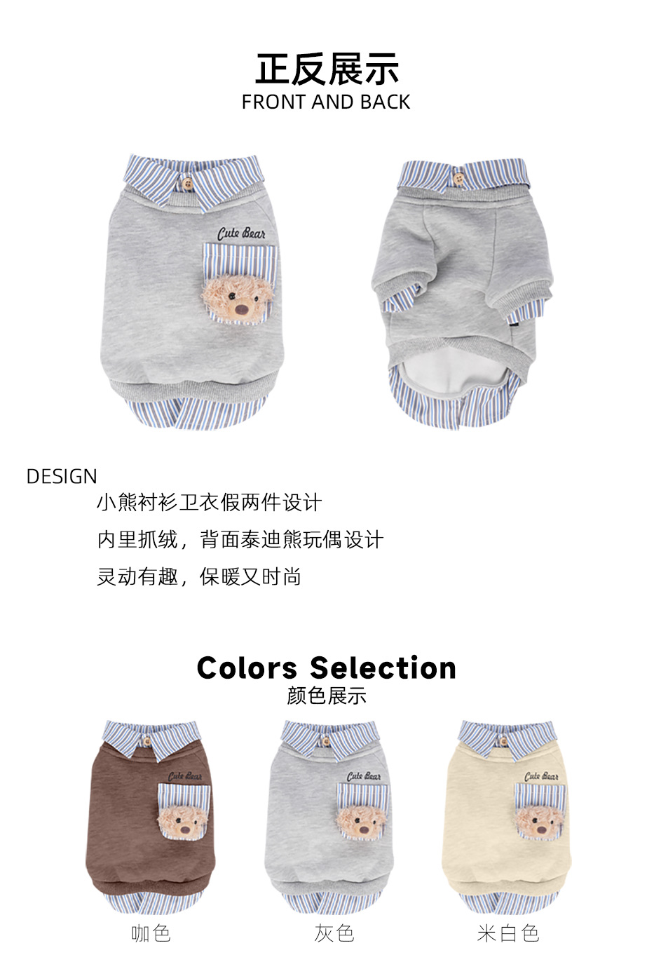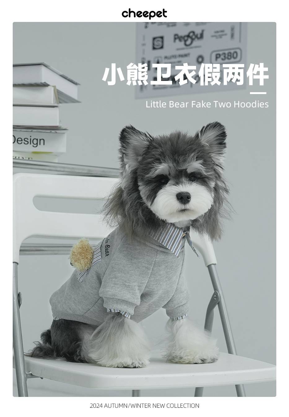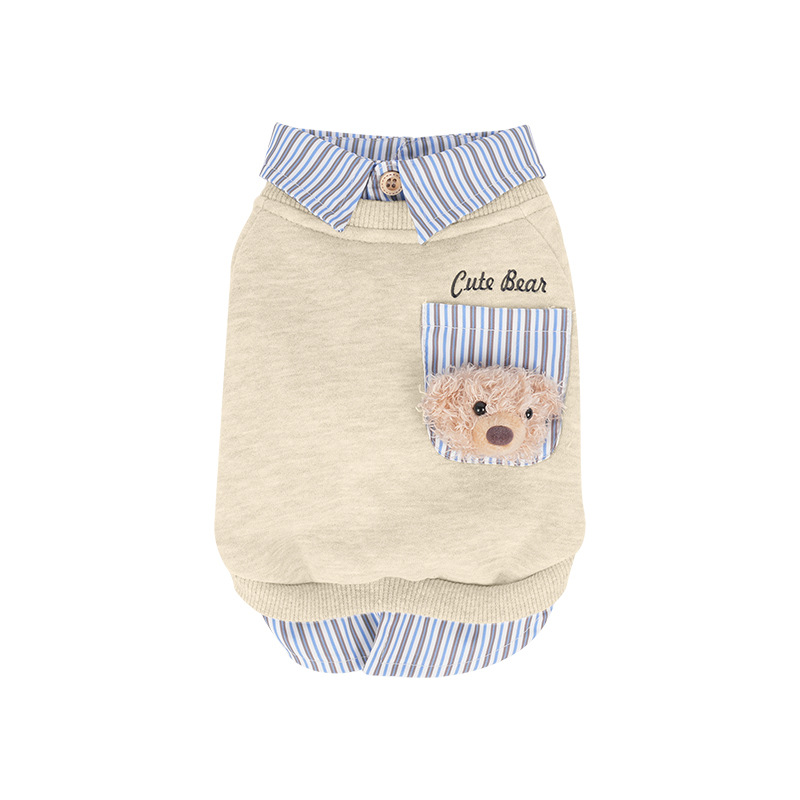 재미있는 치에셋 가을과 겨울 곰 머리 옷깃 따뜻한 가짜 투피스 스웨트 셔츠 패션 양산구 개 외부 착용스토어 가기