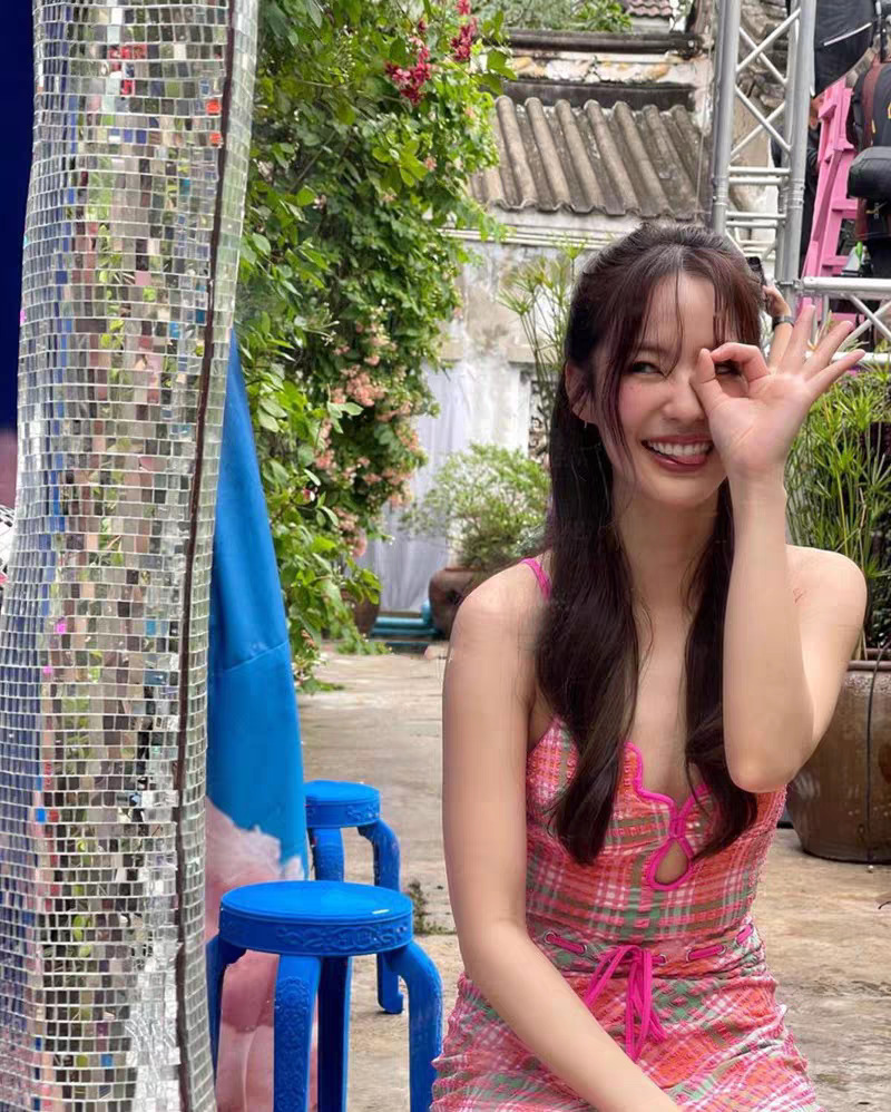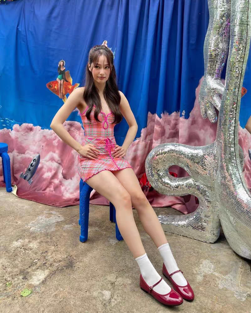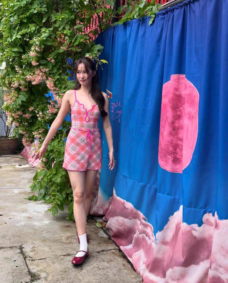 • 핑크 점프수트 + 스커트