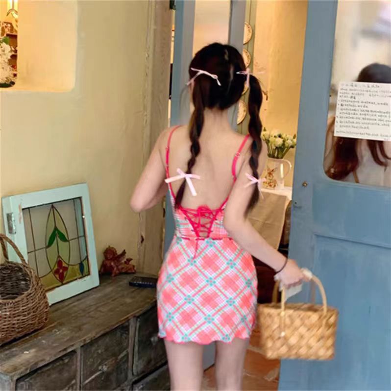 Hua Shaona/Zha 같은 격자 무늬 수영복 비키니 작은 신선한 격자 무늬 학생 수영복 삼각형 결합 휴일스토어 가기