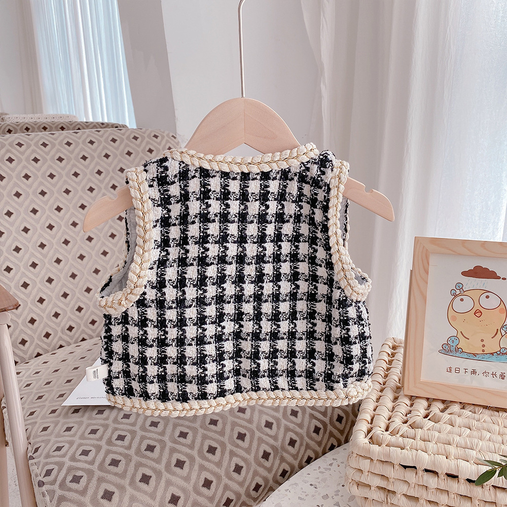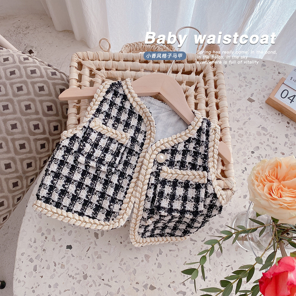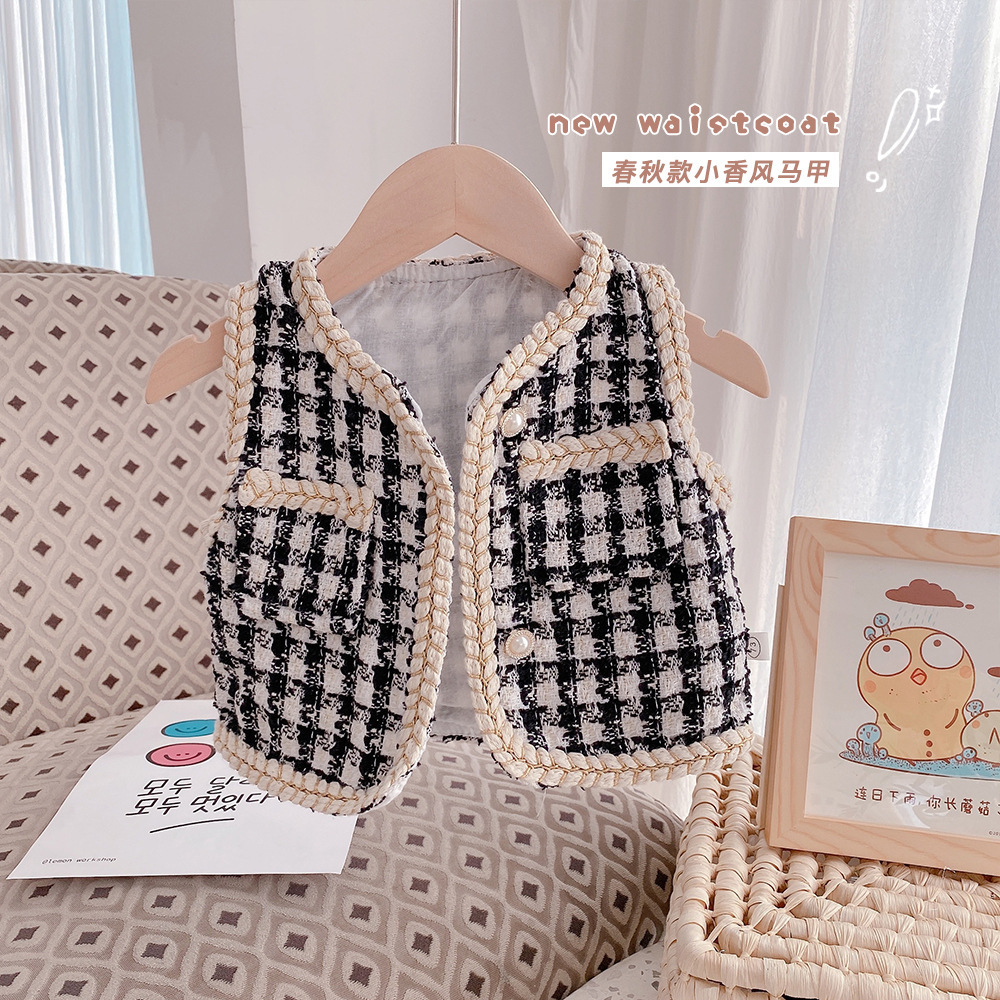2024 년 가을을위한 소녀 사교계 스타일 격자 무늬 서양식 조끼 어린이 서양식 조끼 77002스토어 가기
