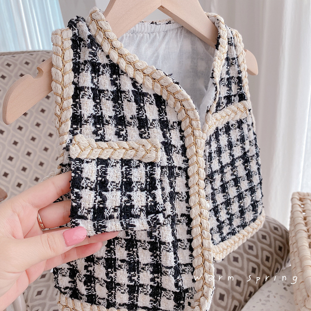 2024 년 가을을위한 소녀 사교계 스타일 격자 무늬 서양식 조끼 어린이 서양식 조끼 77002