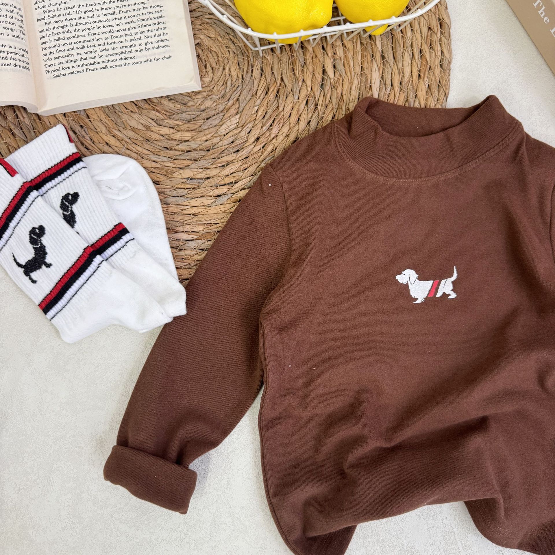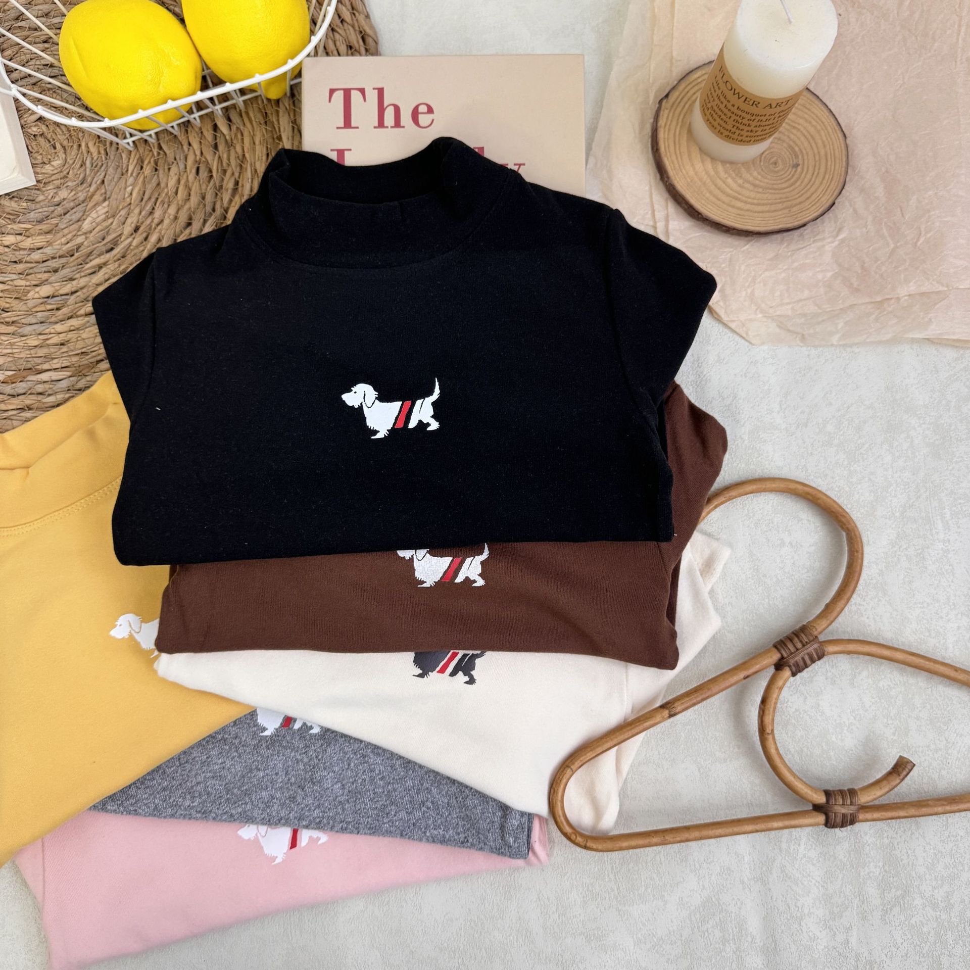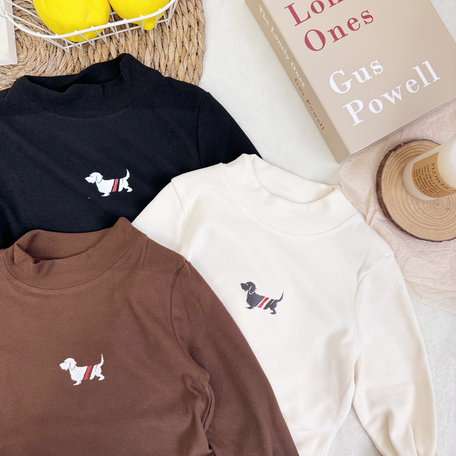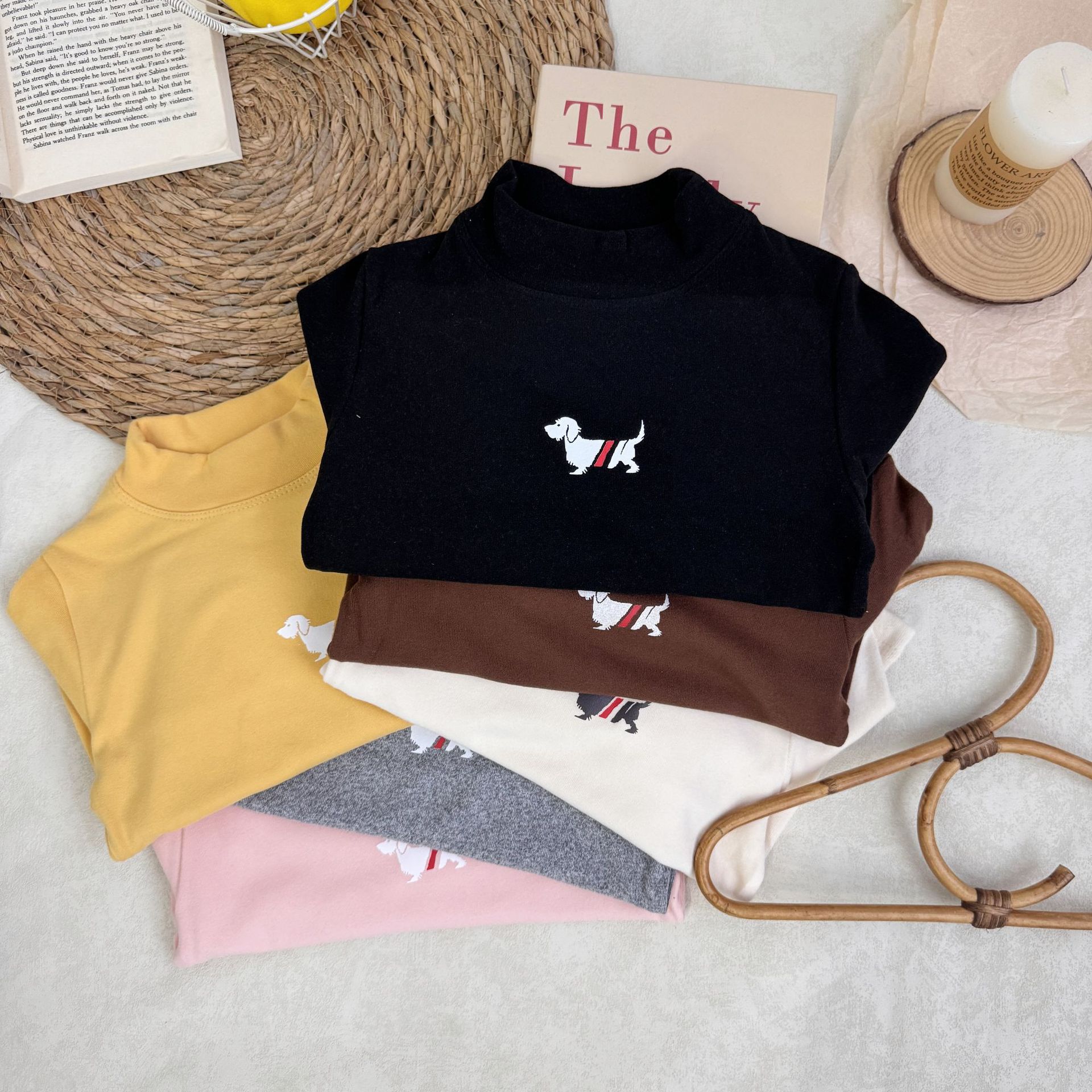 어린이 긴팔 티셔츠 가을과 겨울 남학생과 여학생 강아지 병 셔츠 기모 따뜻한 아기 탄성 탑 니트 셔츠