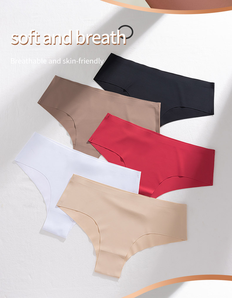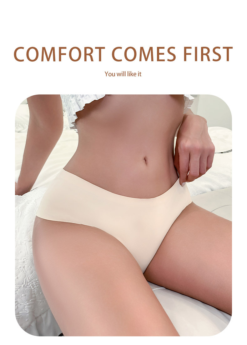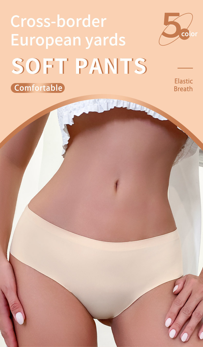 크로스보더 무역 여성용 팬티, 대형 사이즈, 심플한 단색, 통기성 좋은 순면 가랑이 삼각팬티, 아이스 실크 무봉제 중간 허리 팬티스토어 가기