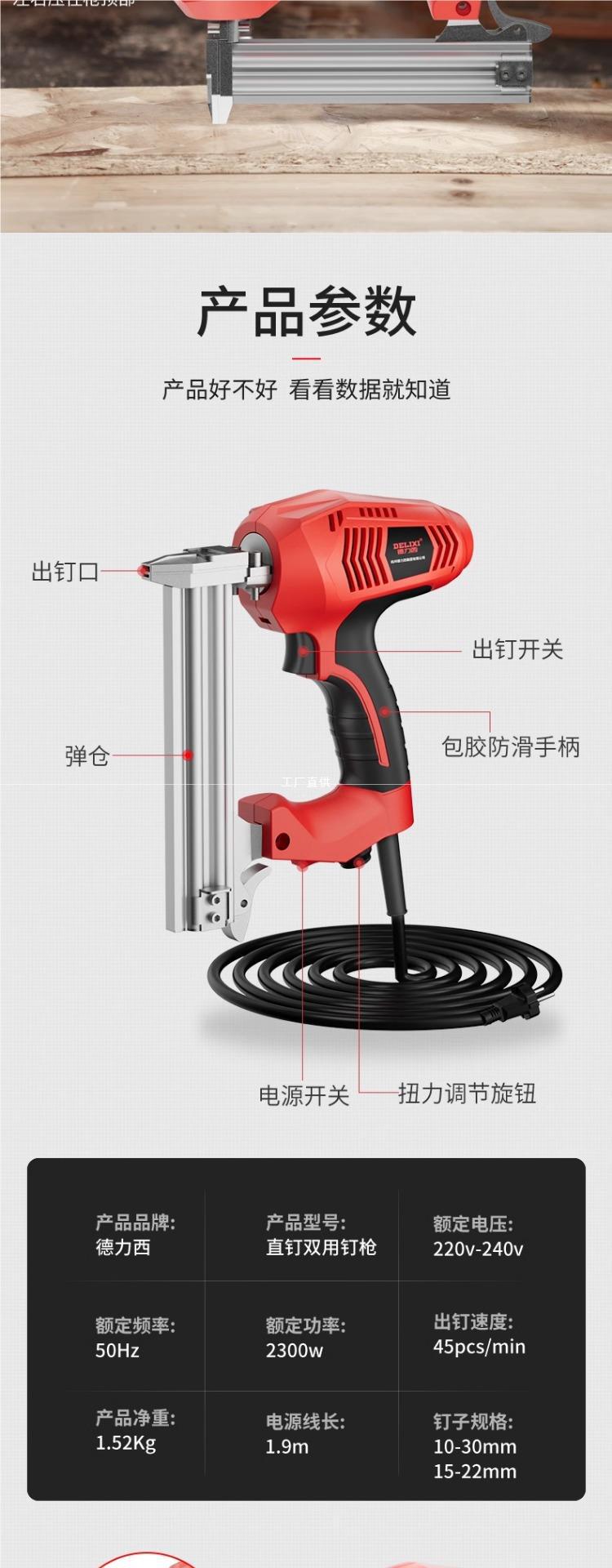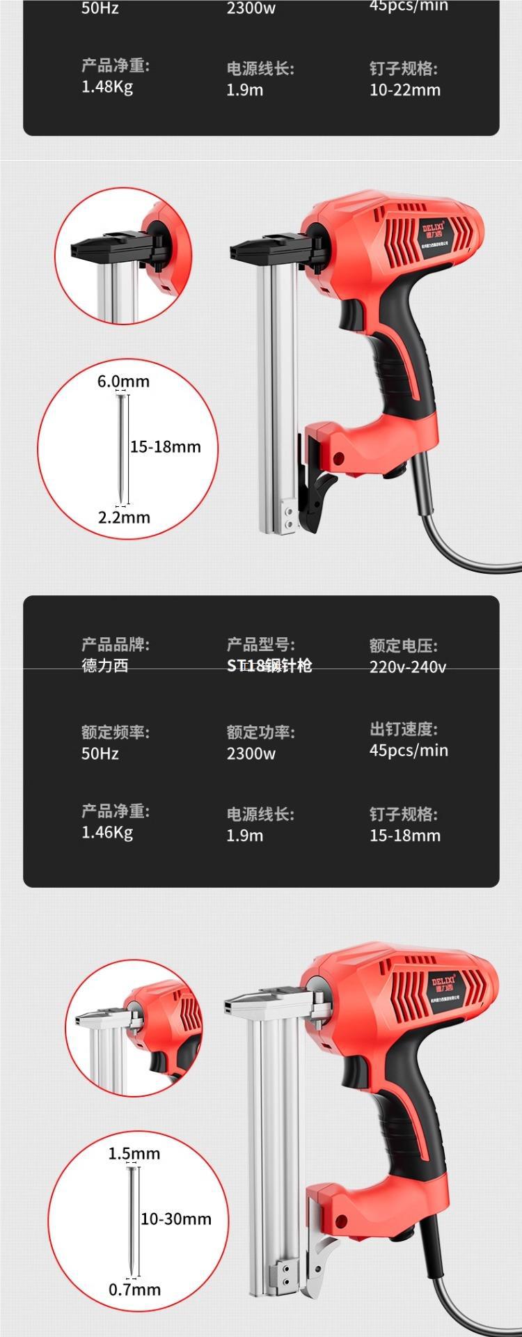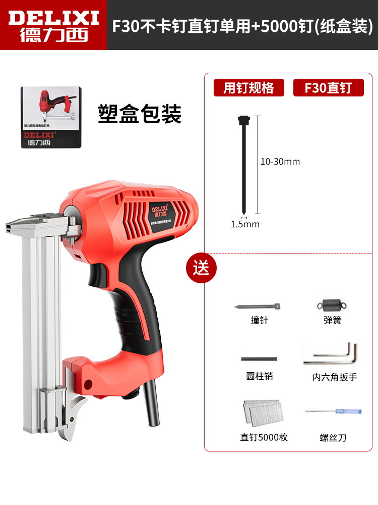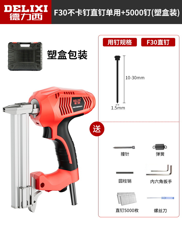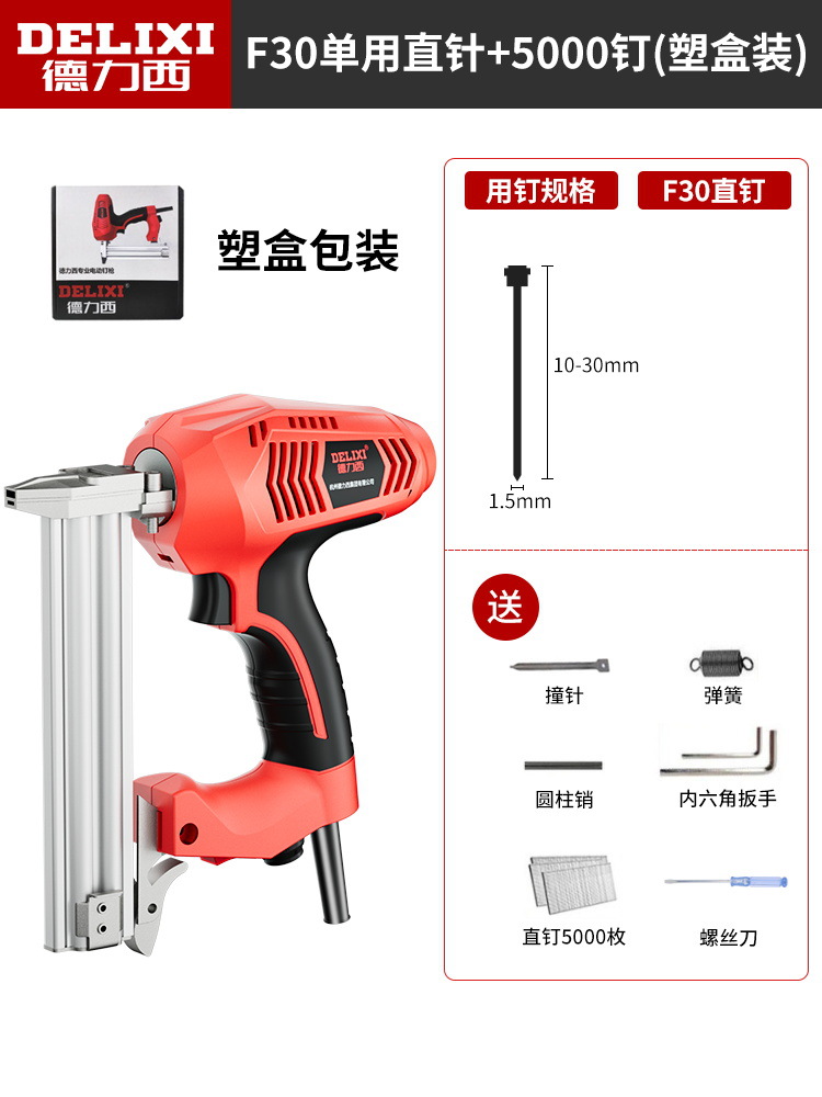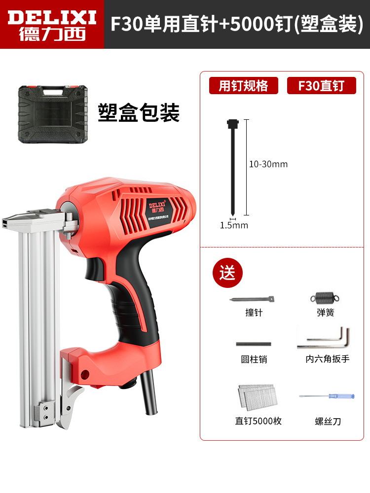 Delixi Electric Nail Gun Carpenter F30 Air Nail Gun 이중 목적 스트레이트 코드 네일 랩 네일 건 Muyatongsi