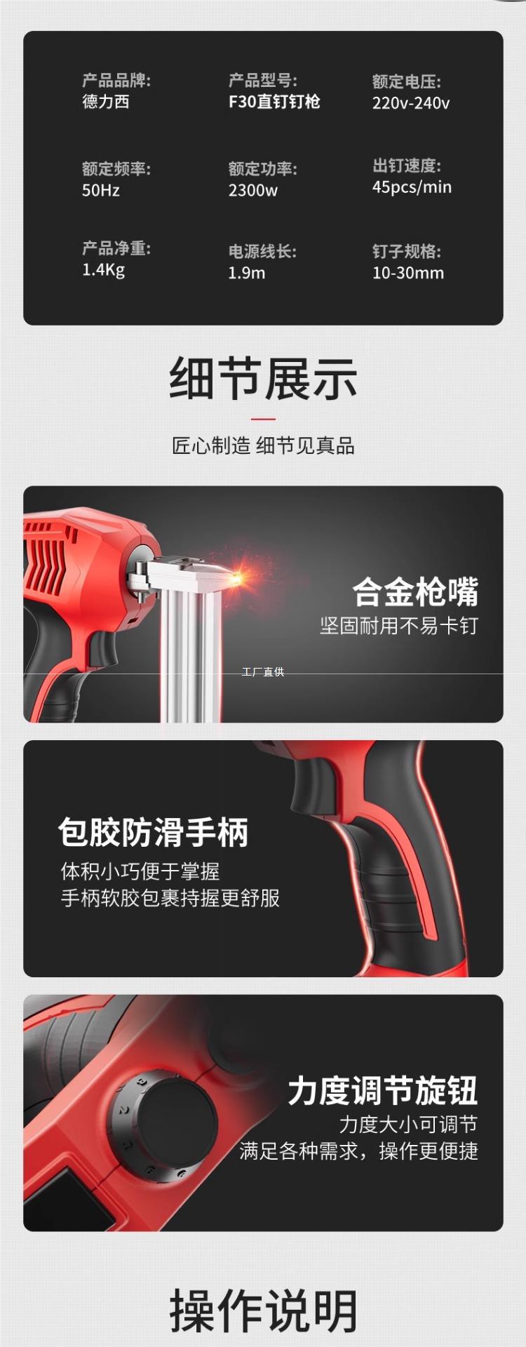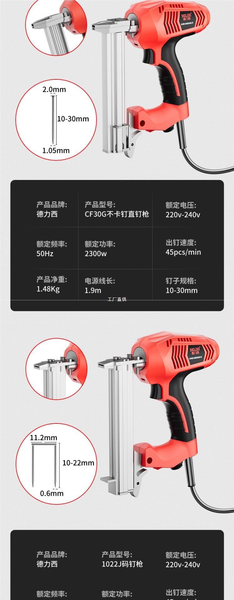 Delixi Electric Nail Gun Carpenter F30 Air Nail Gun 이중 목적 스트레이트 코드 네일 랩 네일 건 Muyatongsi스토어 가기