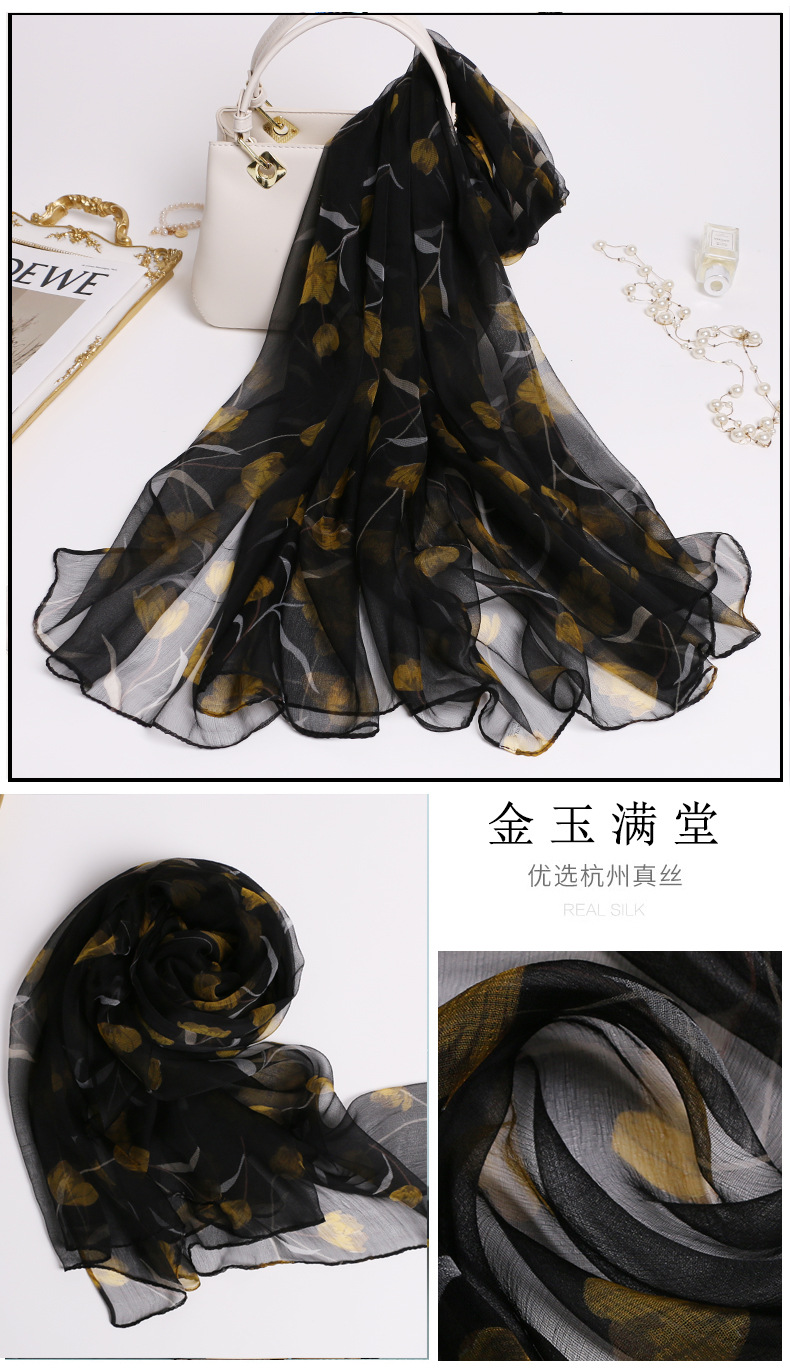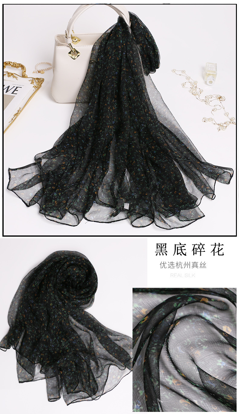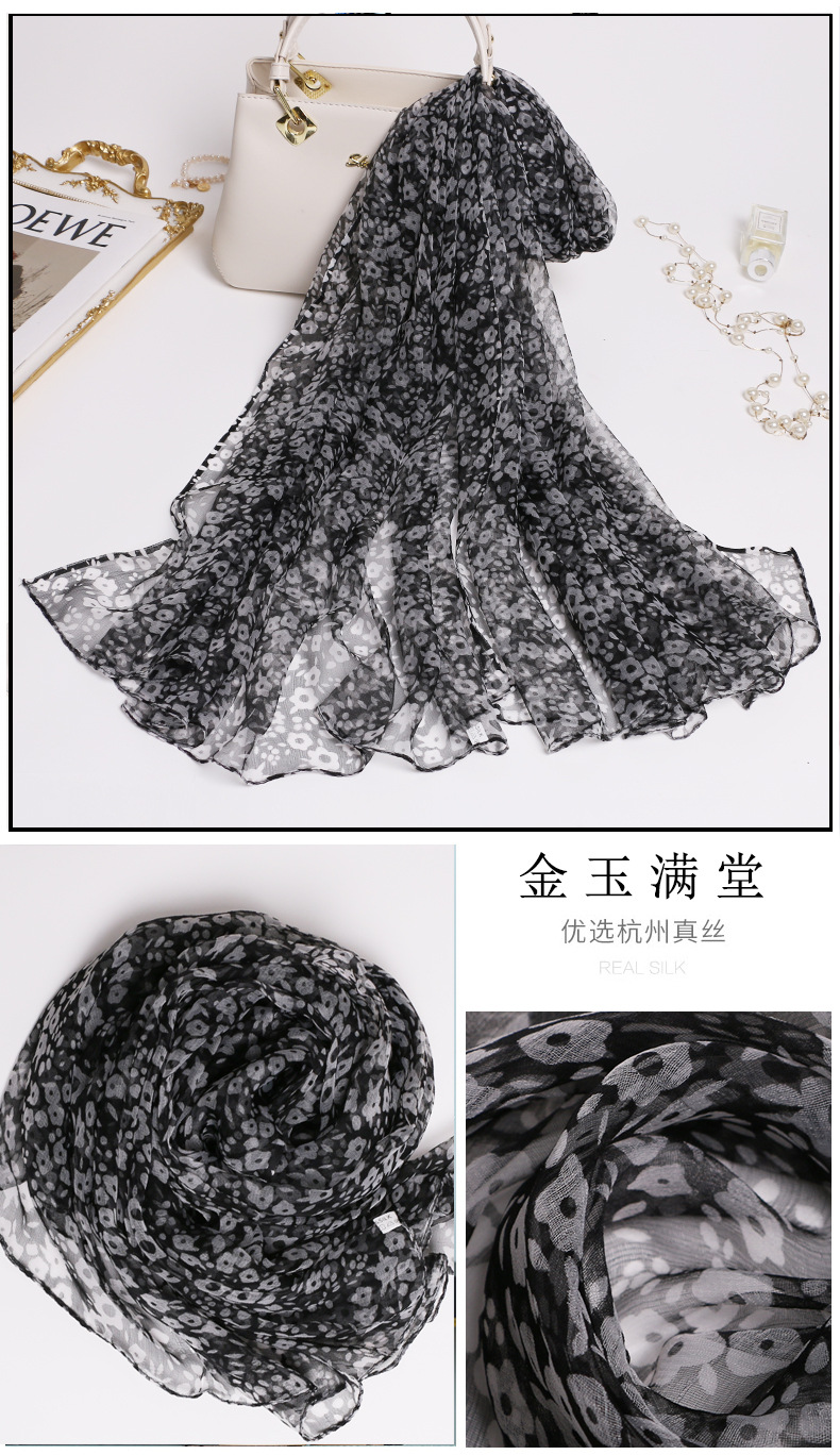 Tulle 스카프 여자 2024 항주 실크 새로운 실크 뽕나무 실크 긴 꽃 전체 스카프 공장 도매스토어 가기