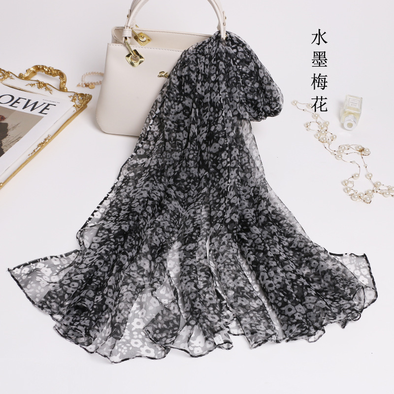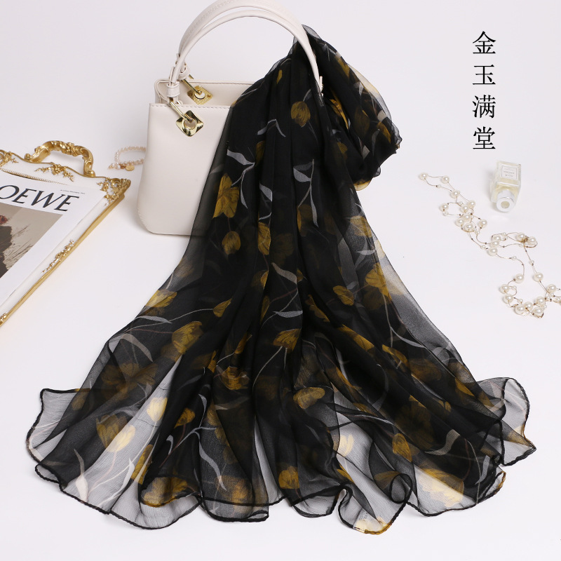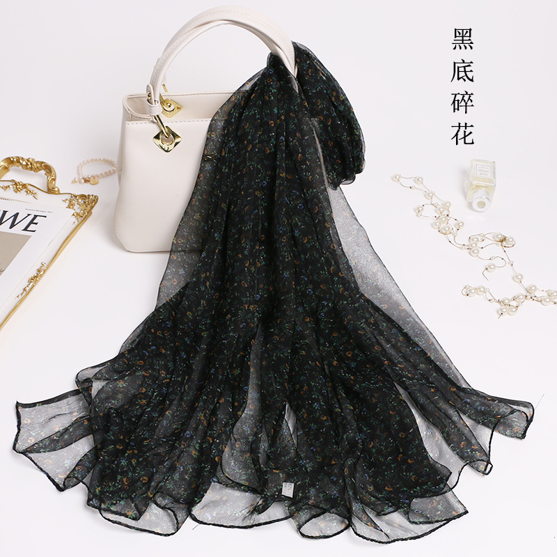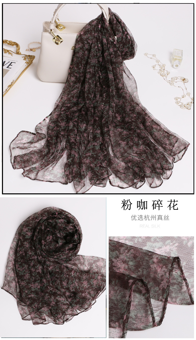 Tulle 스카프 여자 2024 항주 실크 새로운 실크 뽕나무 실크 긴 꽃 전체 스카프 공장 도매스토어 가기