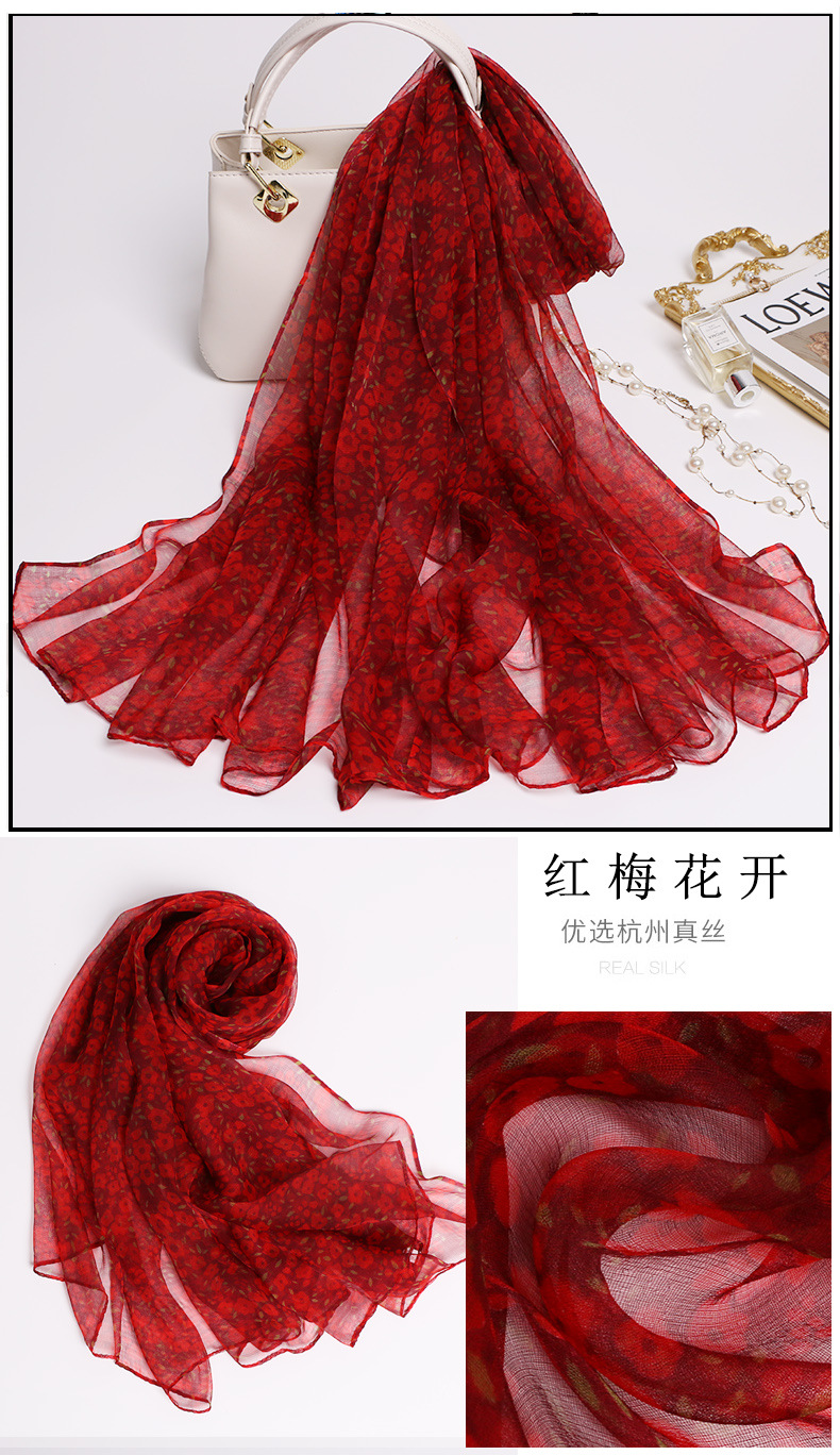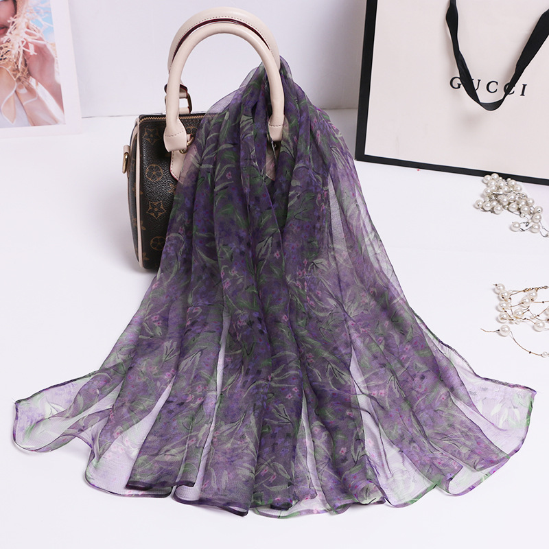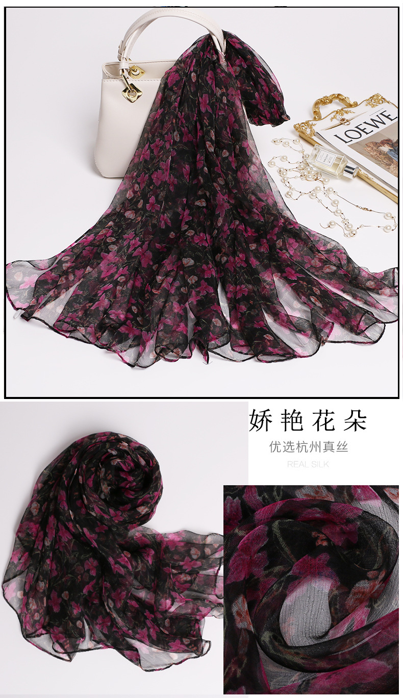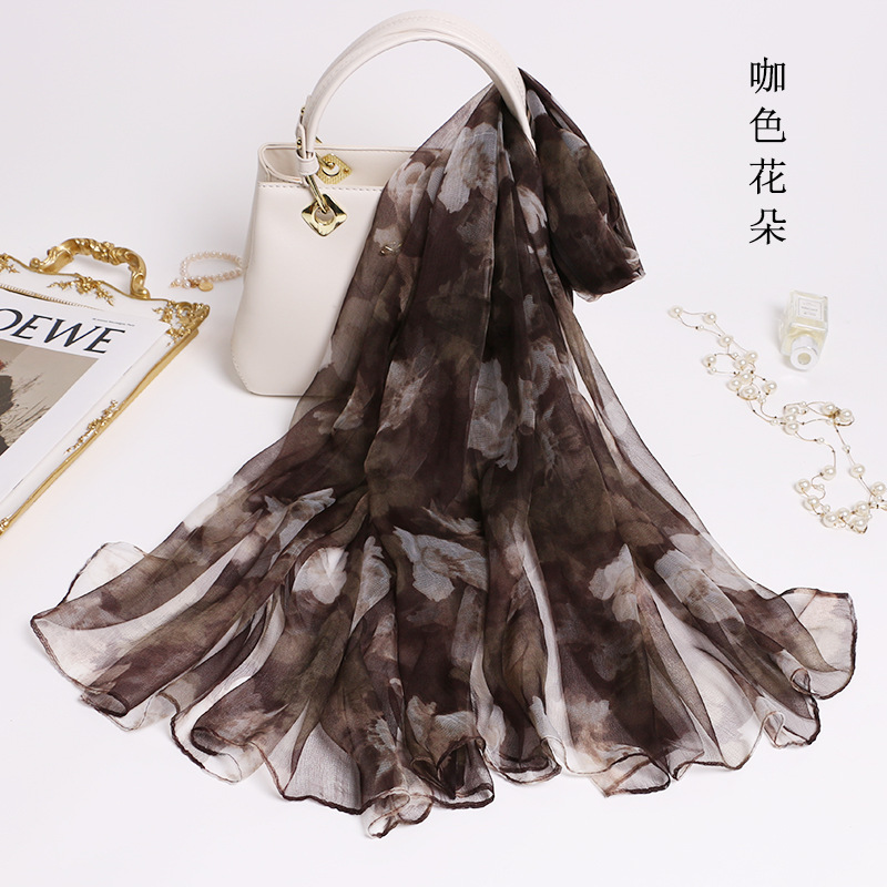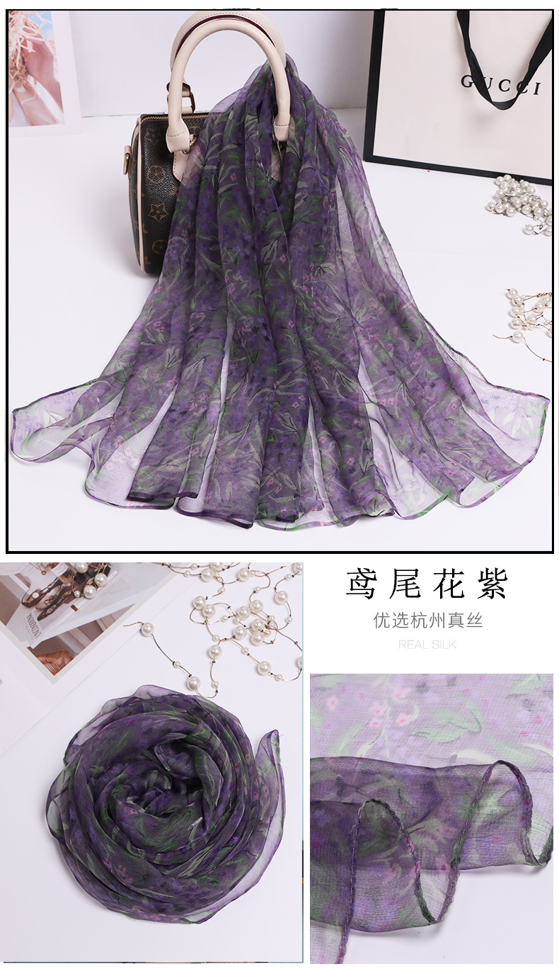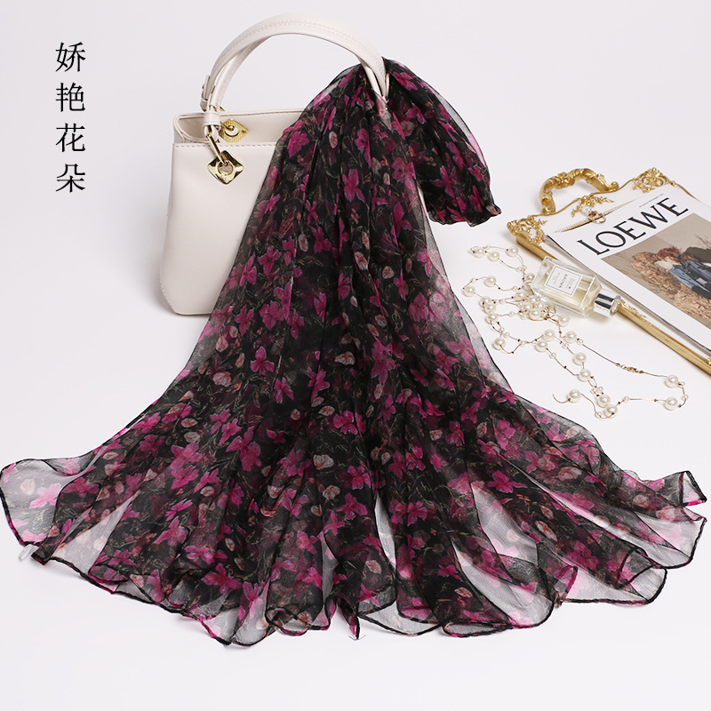 Tulle 스카프 여자 2024 항주 실크 새로운 실크 뽕나무 실크 긴 꽃 전체 스카프 공장 도매